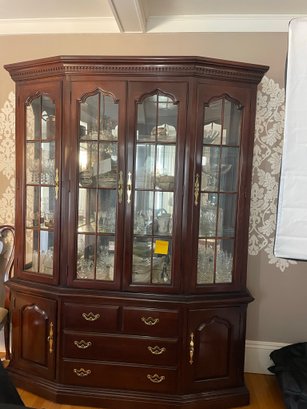 Large Thomasville china hutch-4 shelves (3 glass) with three drawers and 2 side csbintes. 81x65x13