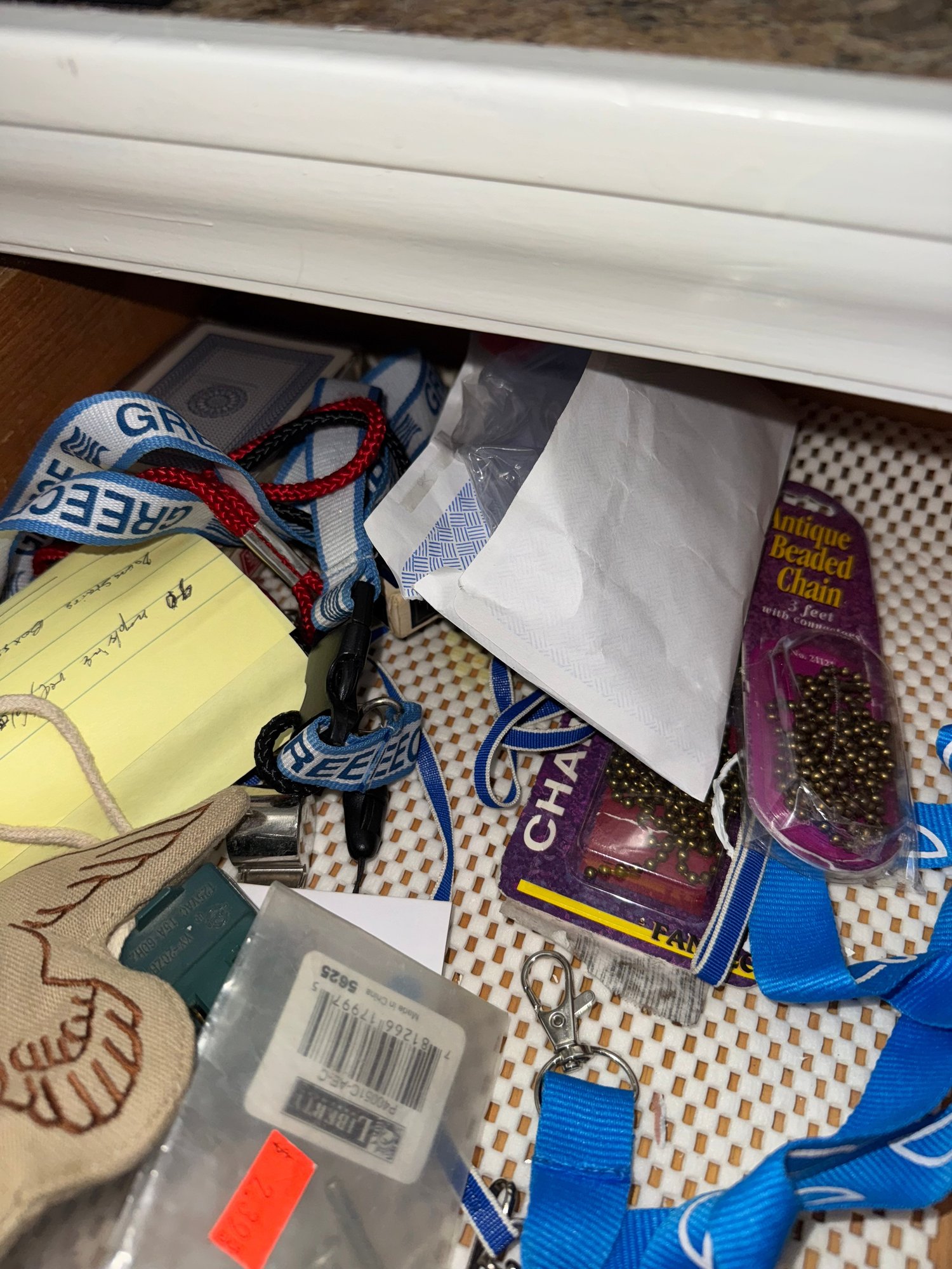 includes the contents of three drawers
