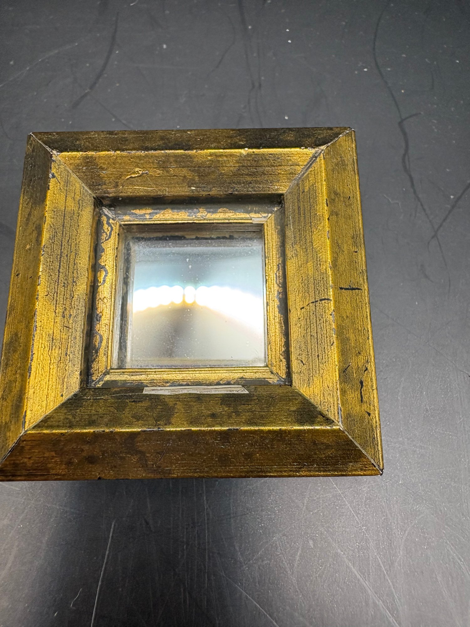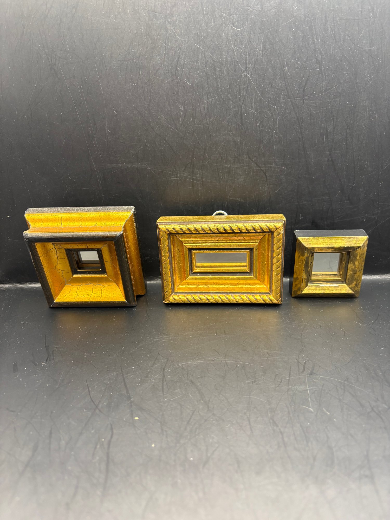 Tom thumb gilded mirrors miniature for dollhouse. They range from like 3 1/2 inches and down the smallest one has a small chip on the inner frame. See pictures.