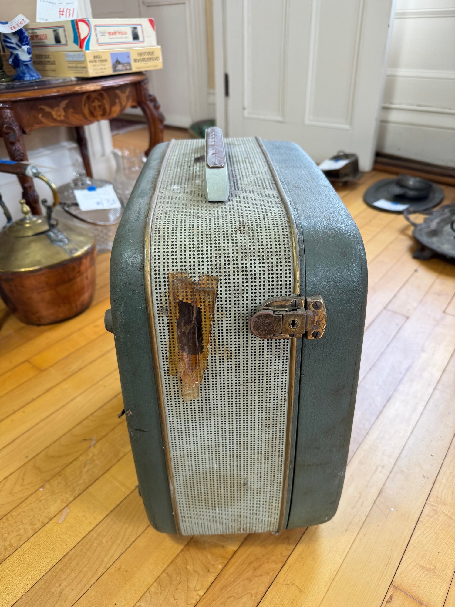 lid is broken off back hinges but will still latch on shut