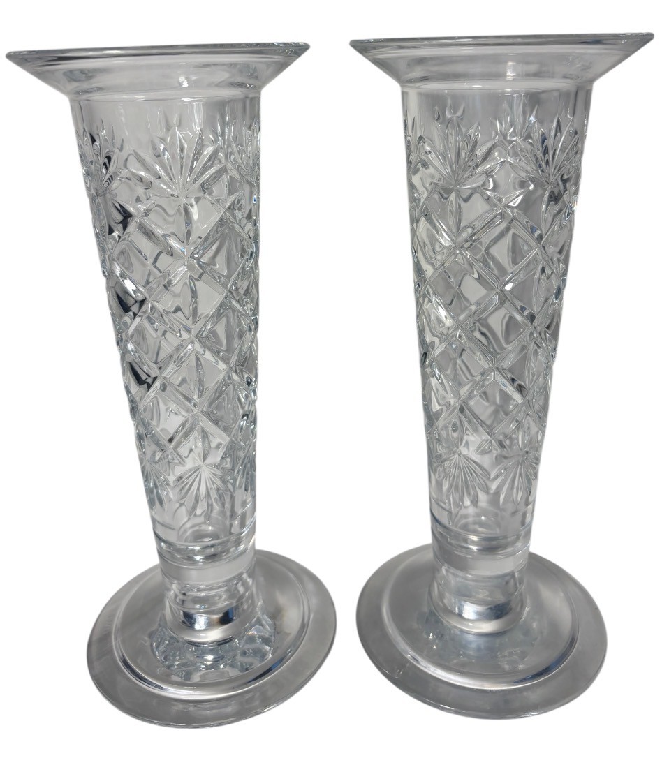 Towle Crystal Glass Vase & Turnover Candle Holder Pair (DR)