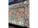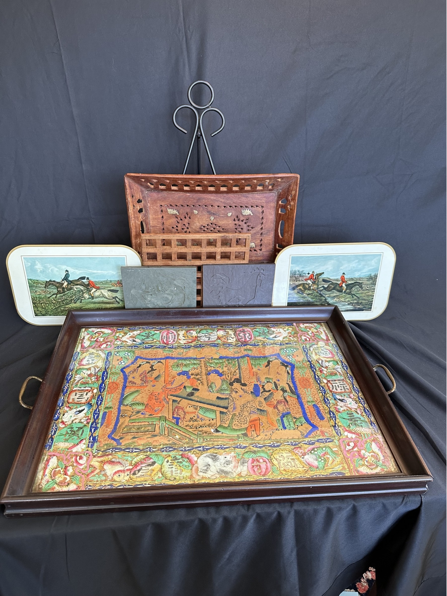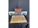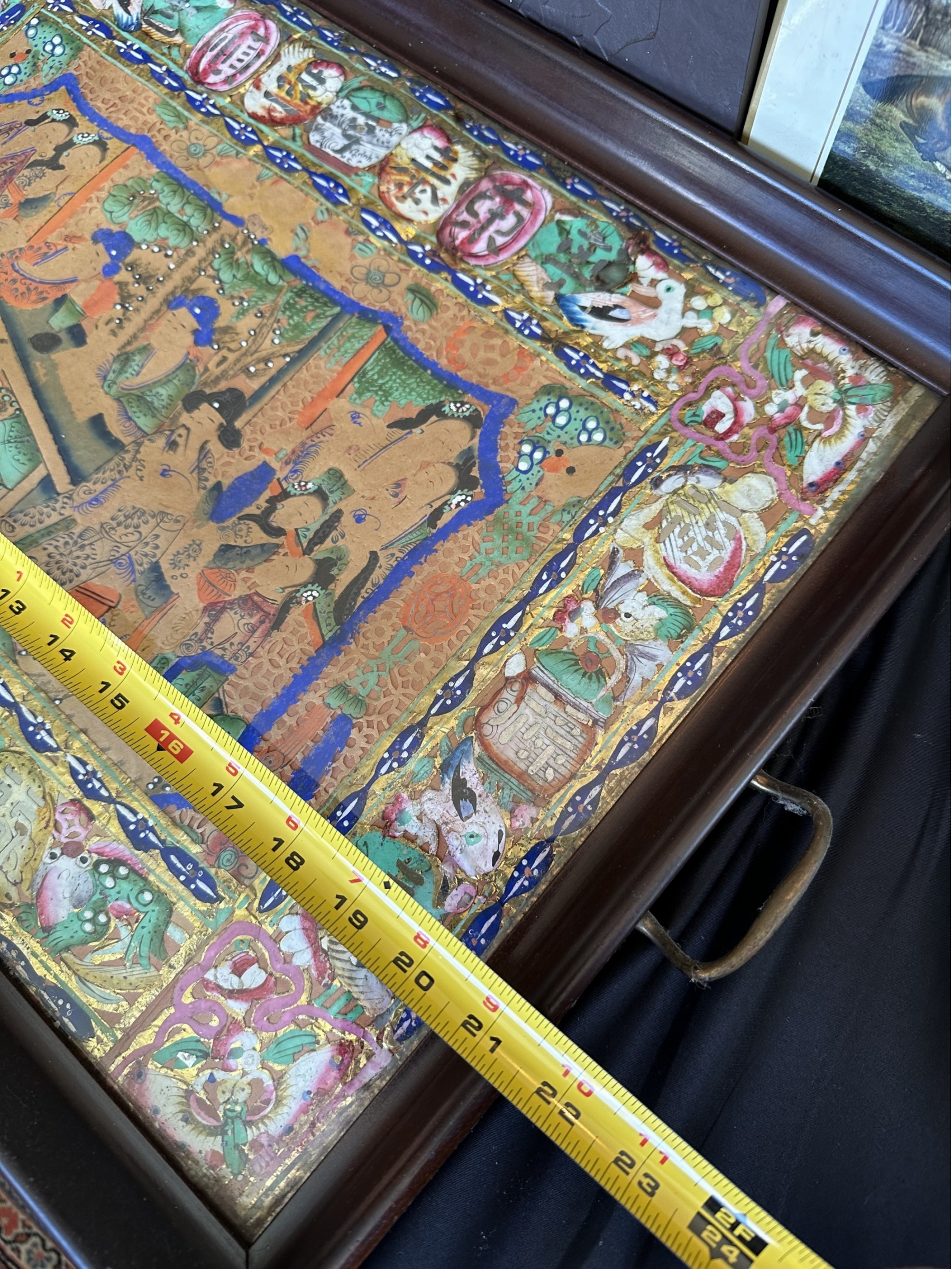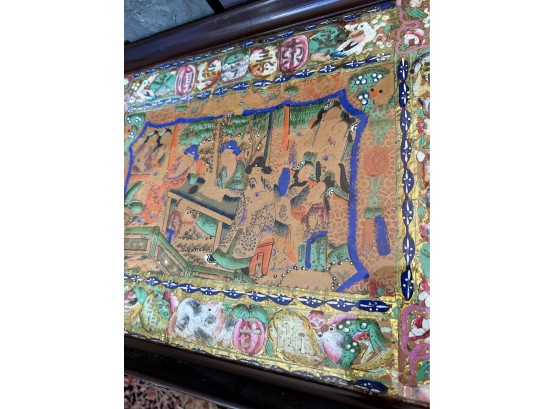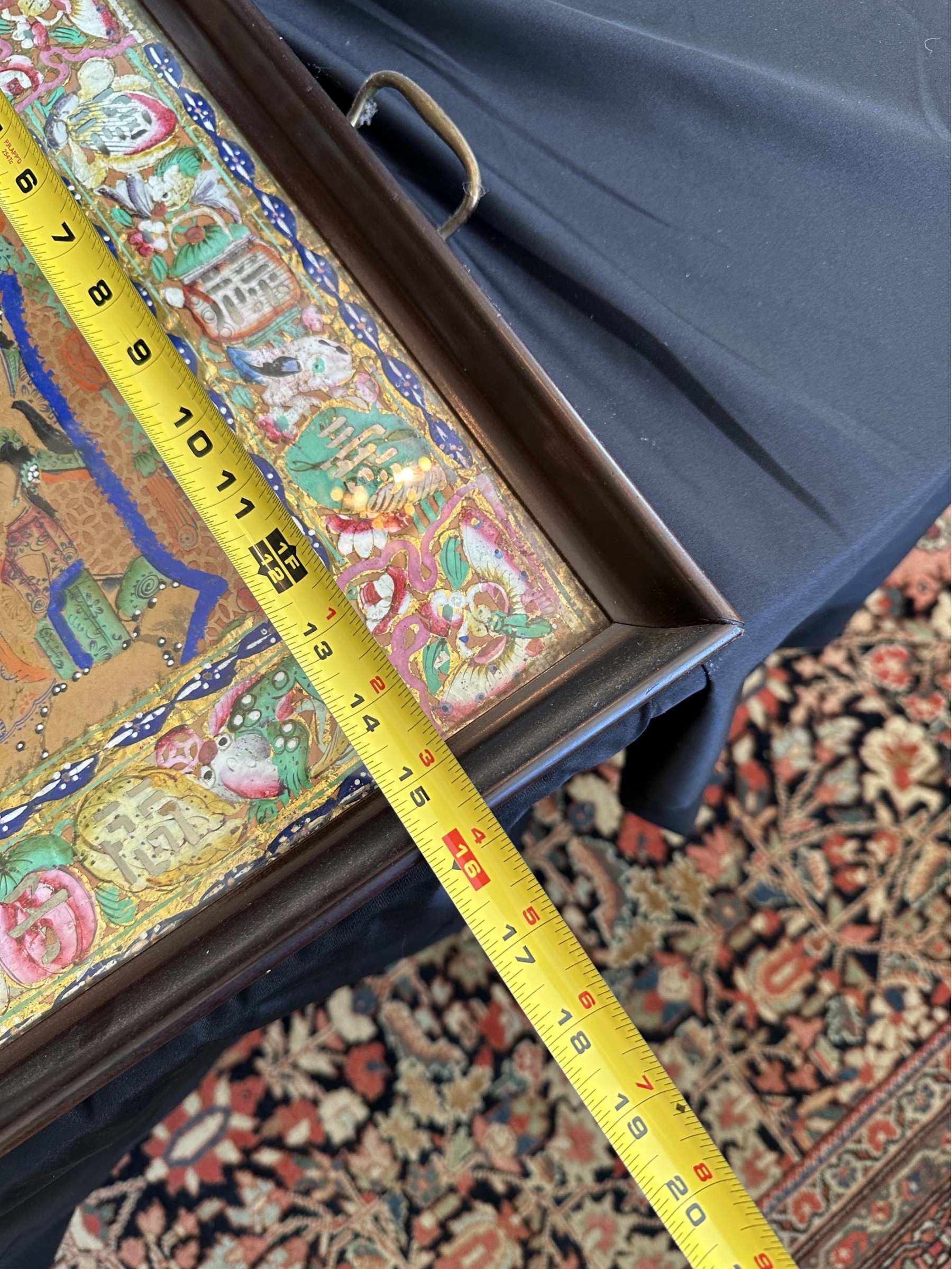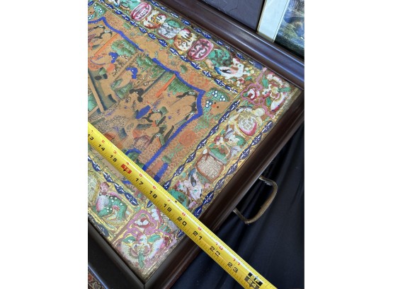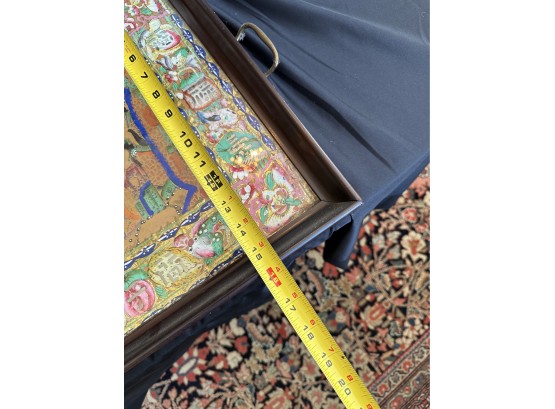 Two handled serving tray with glass top over a Chinese painting on paper 16x21"