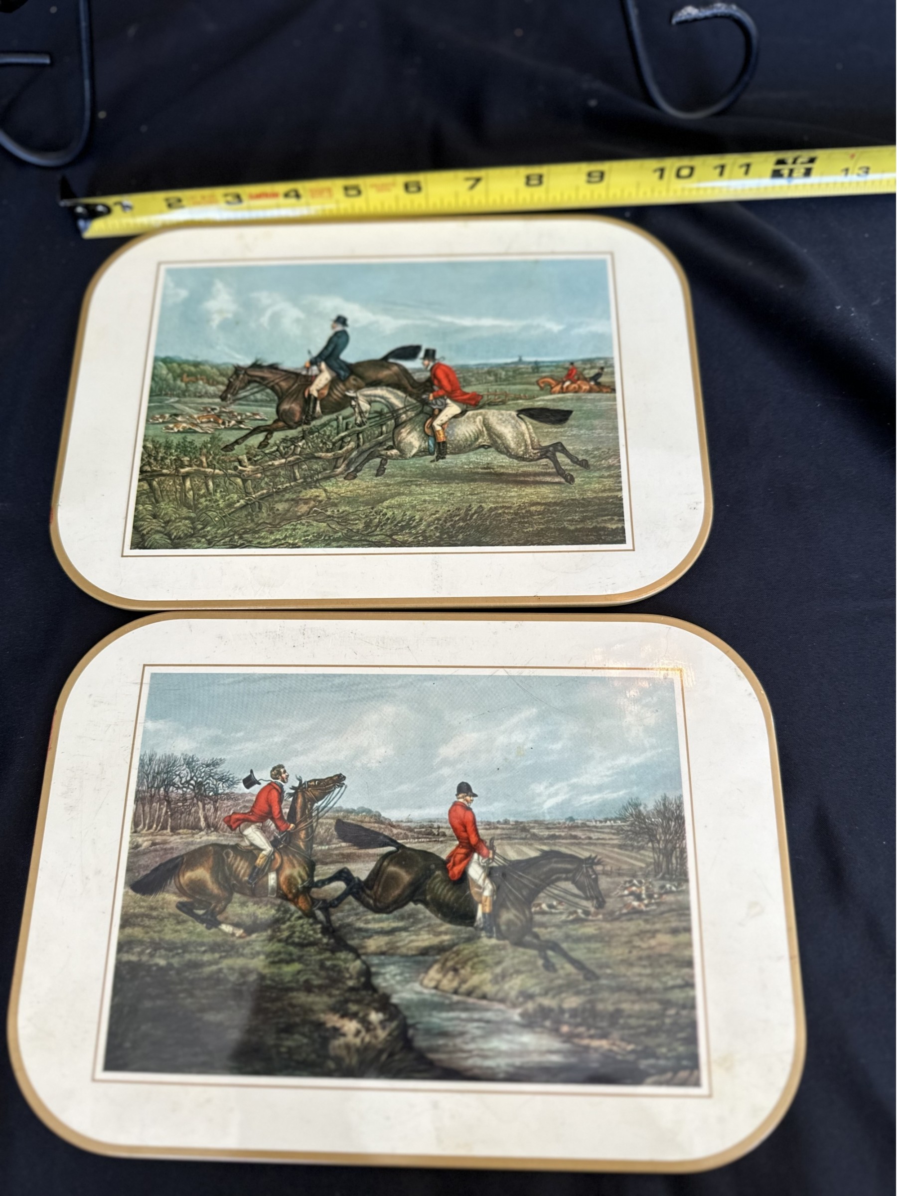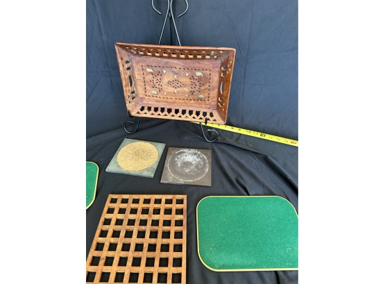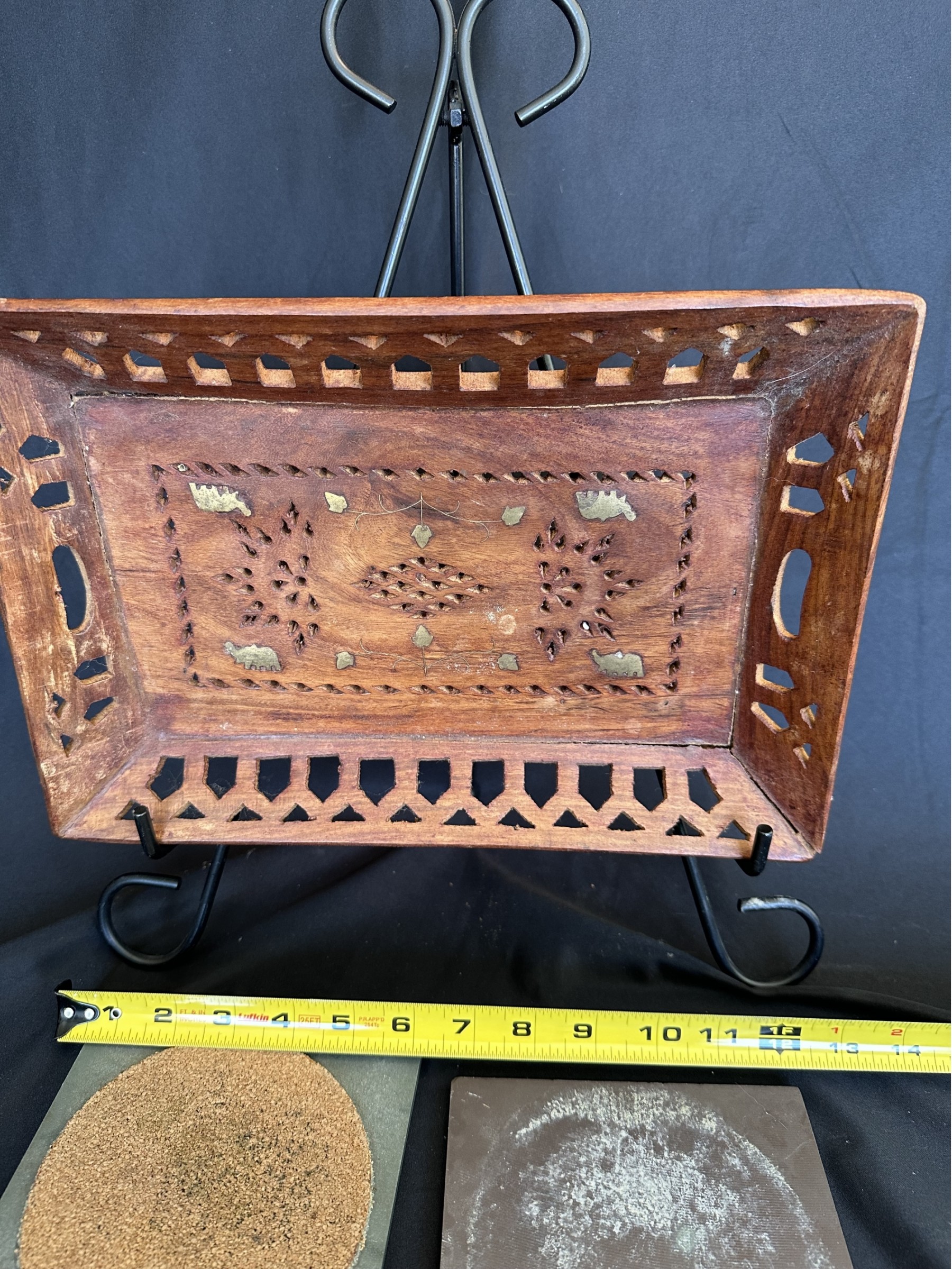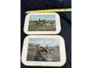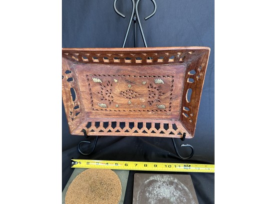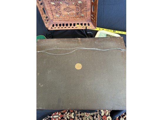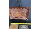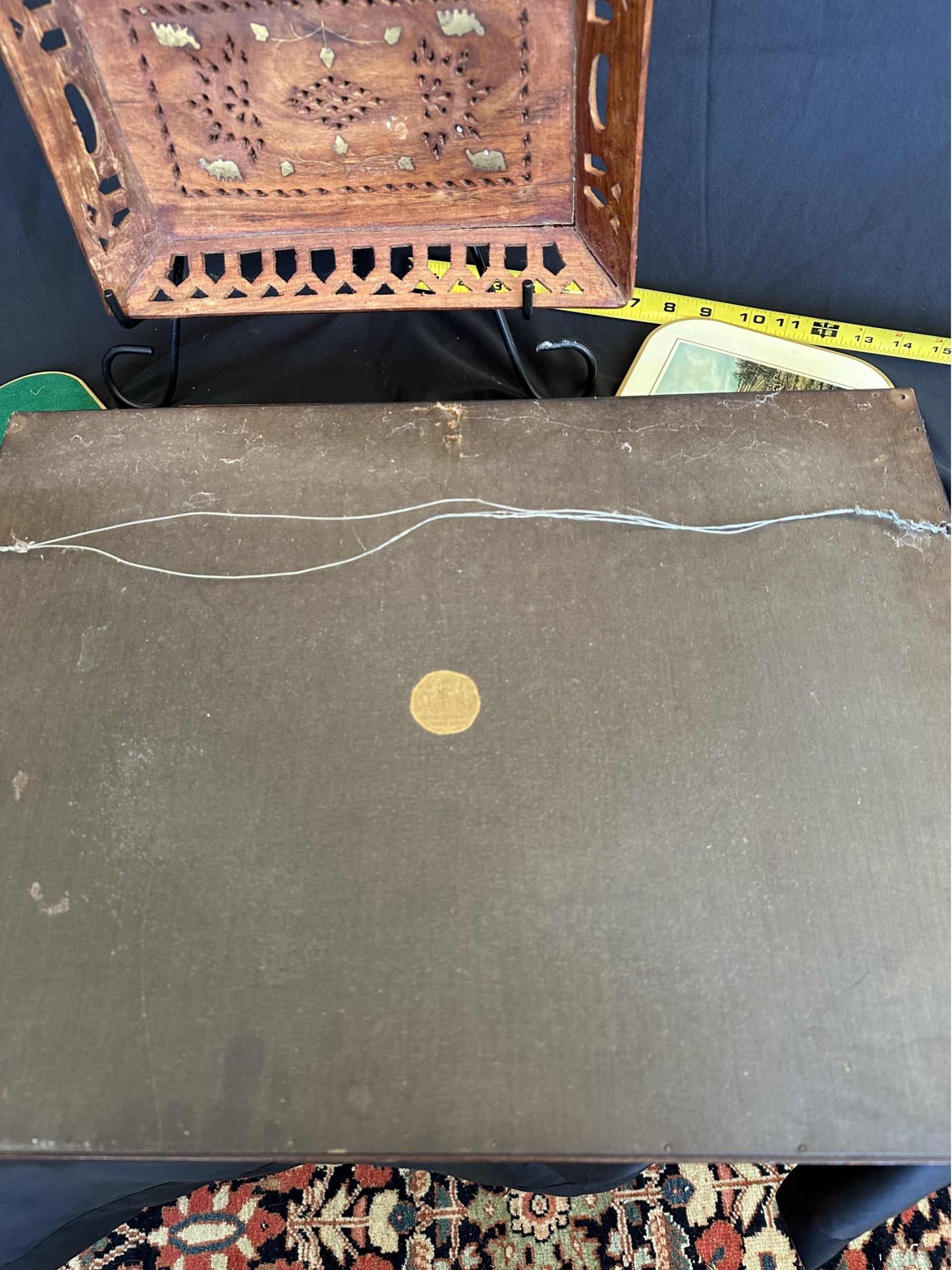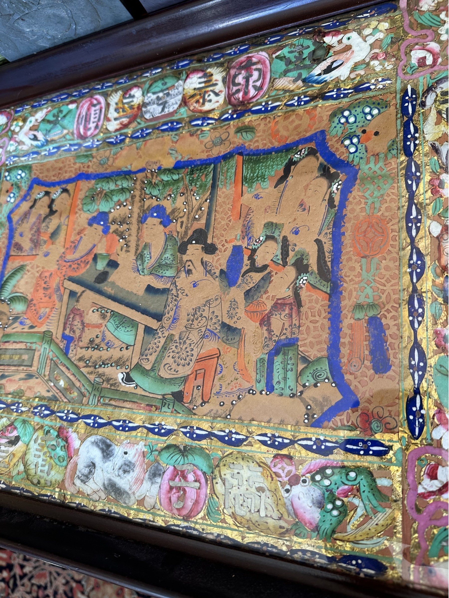 Two handled serving tray with glass top over a Chinese painting on paper 16x21"