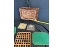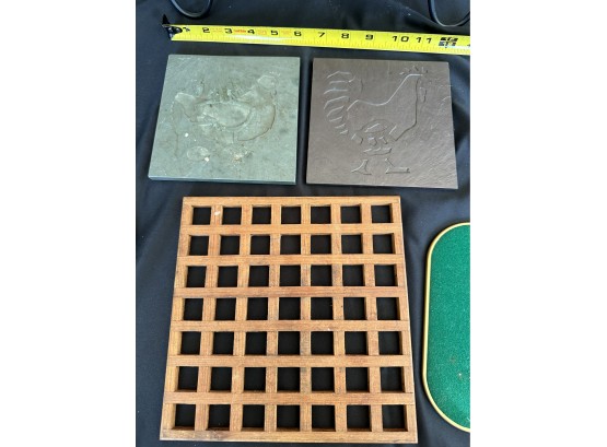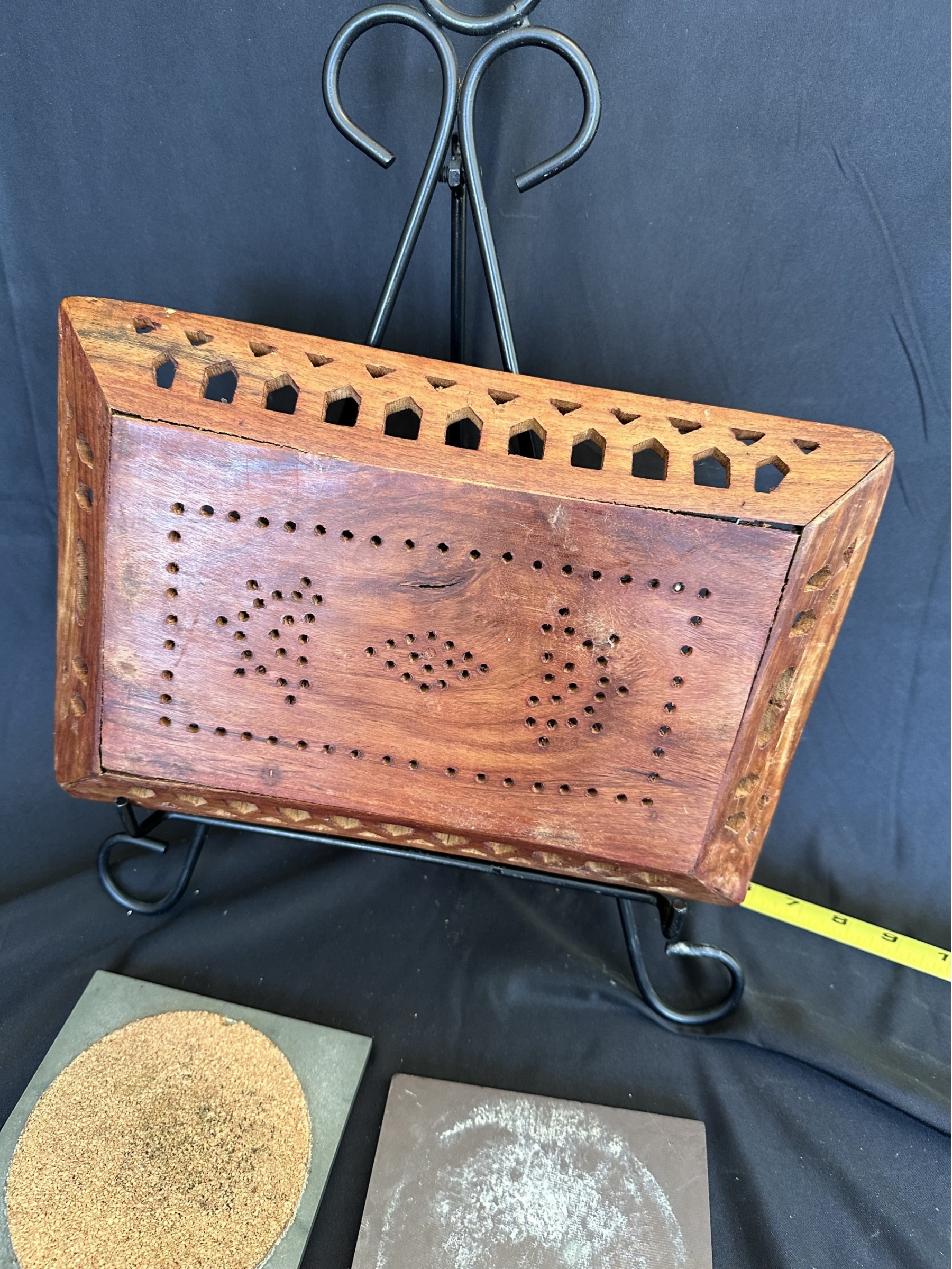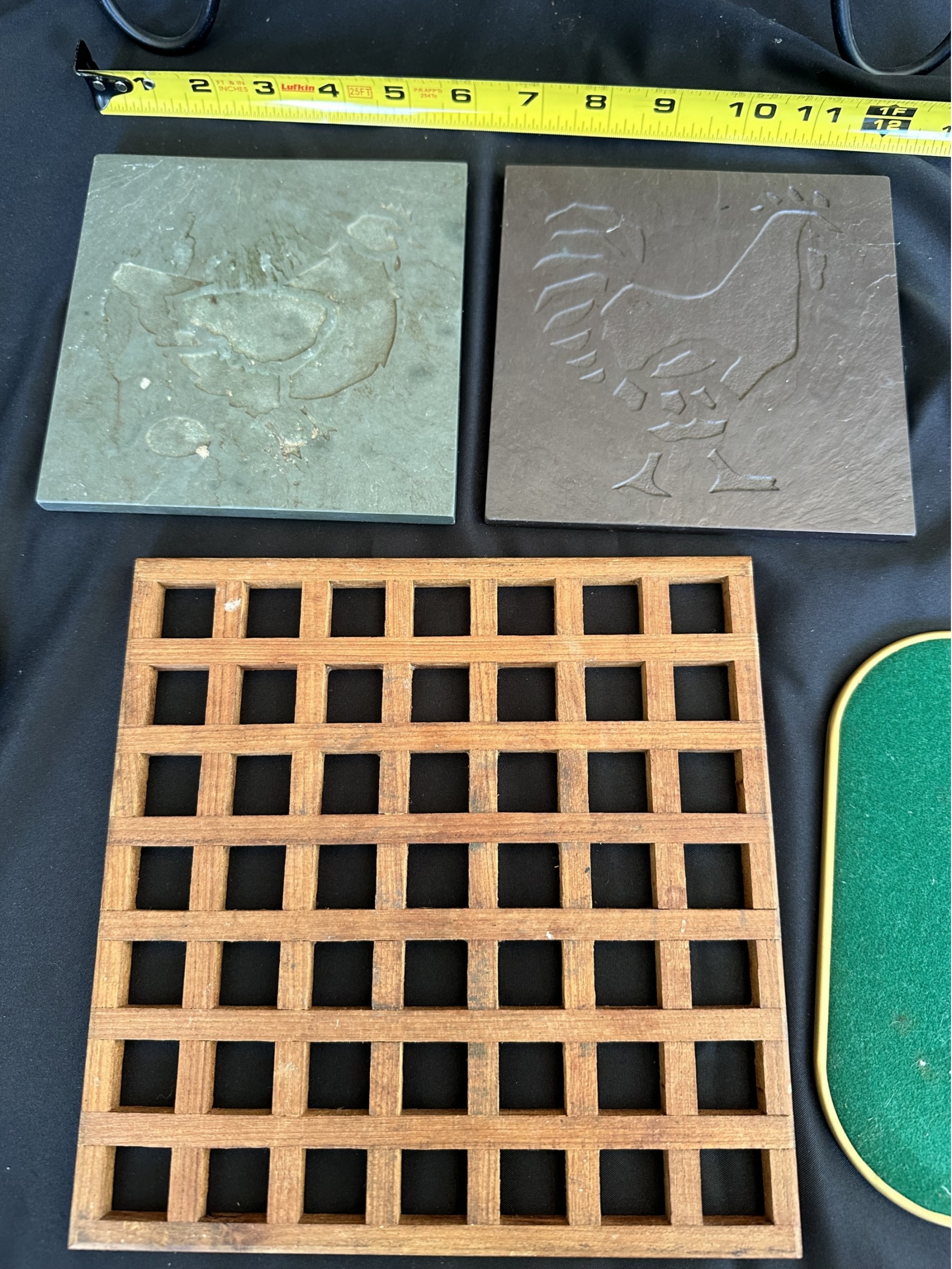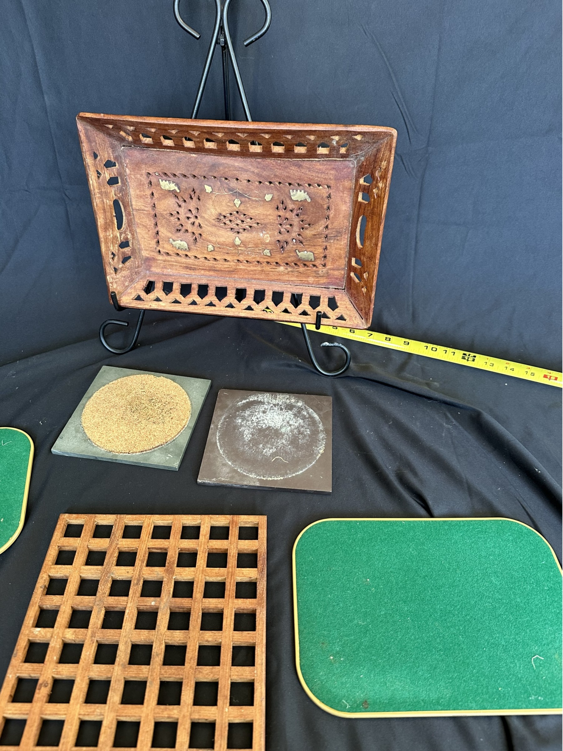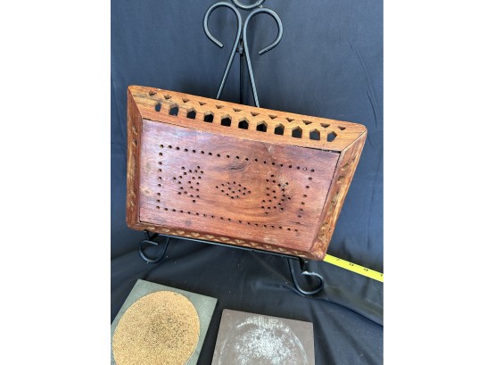 Two handled serving tray with glass top over a Chinese painting on paper 16x21"