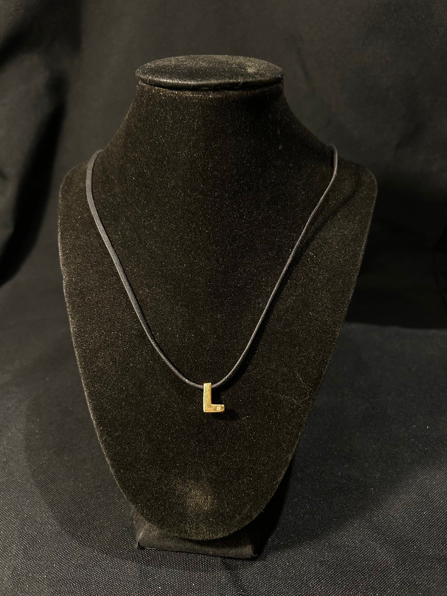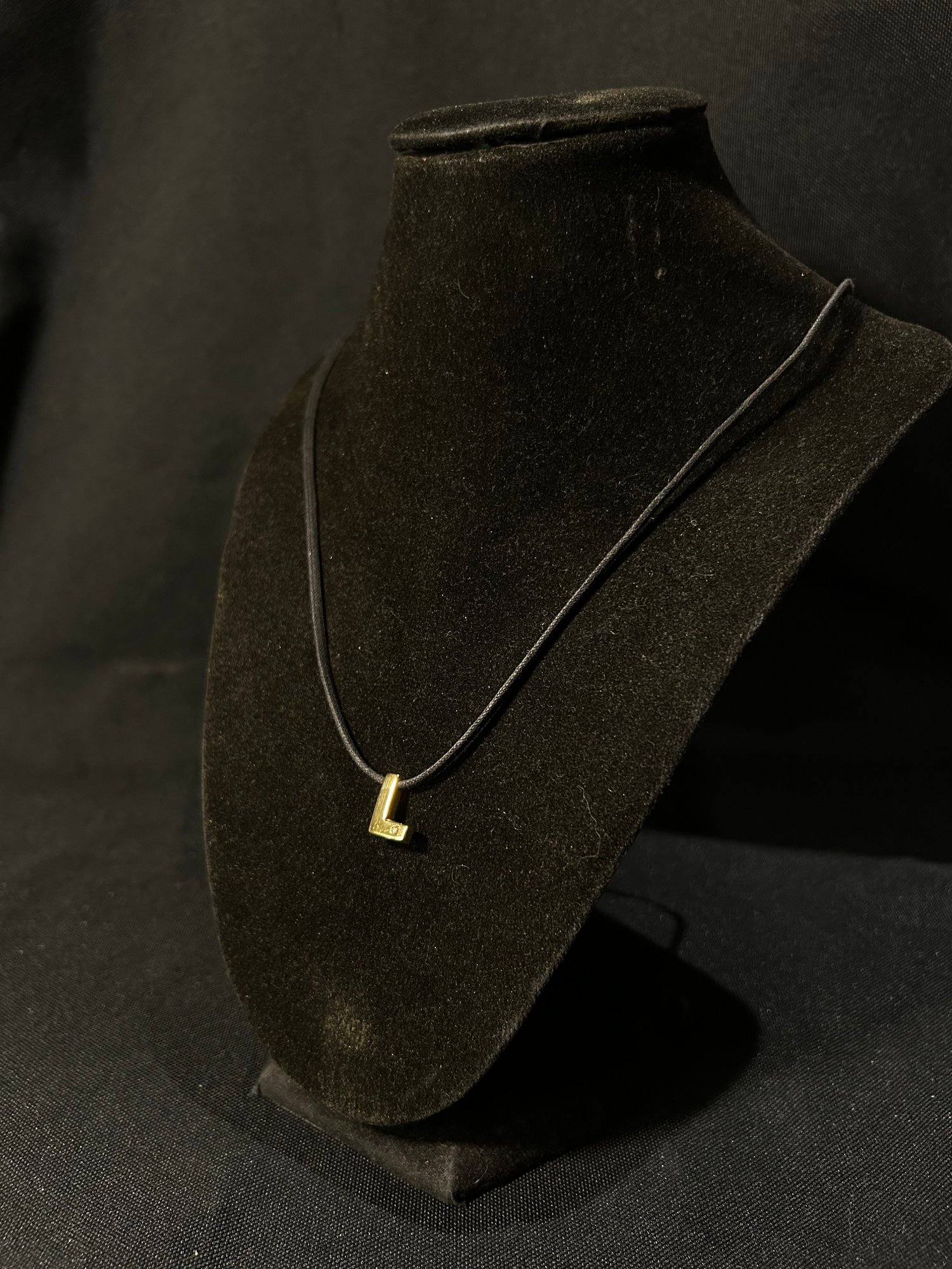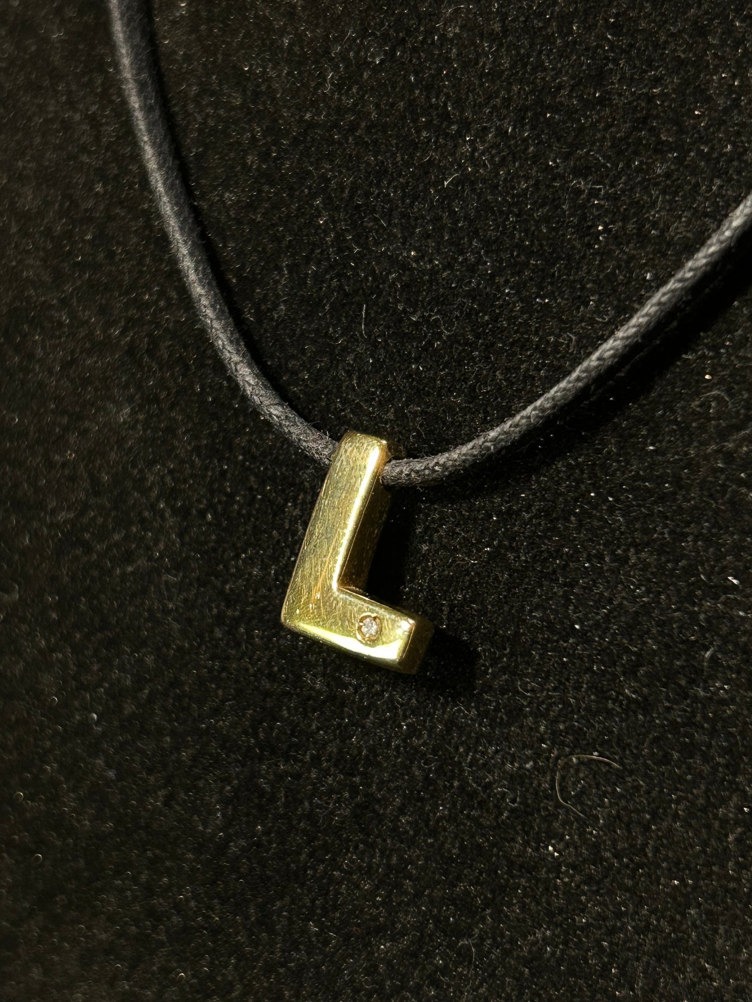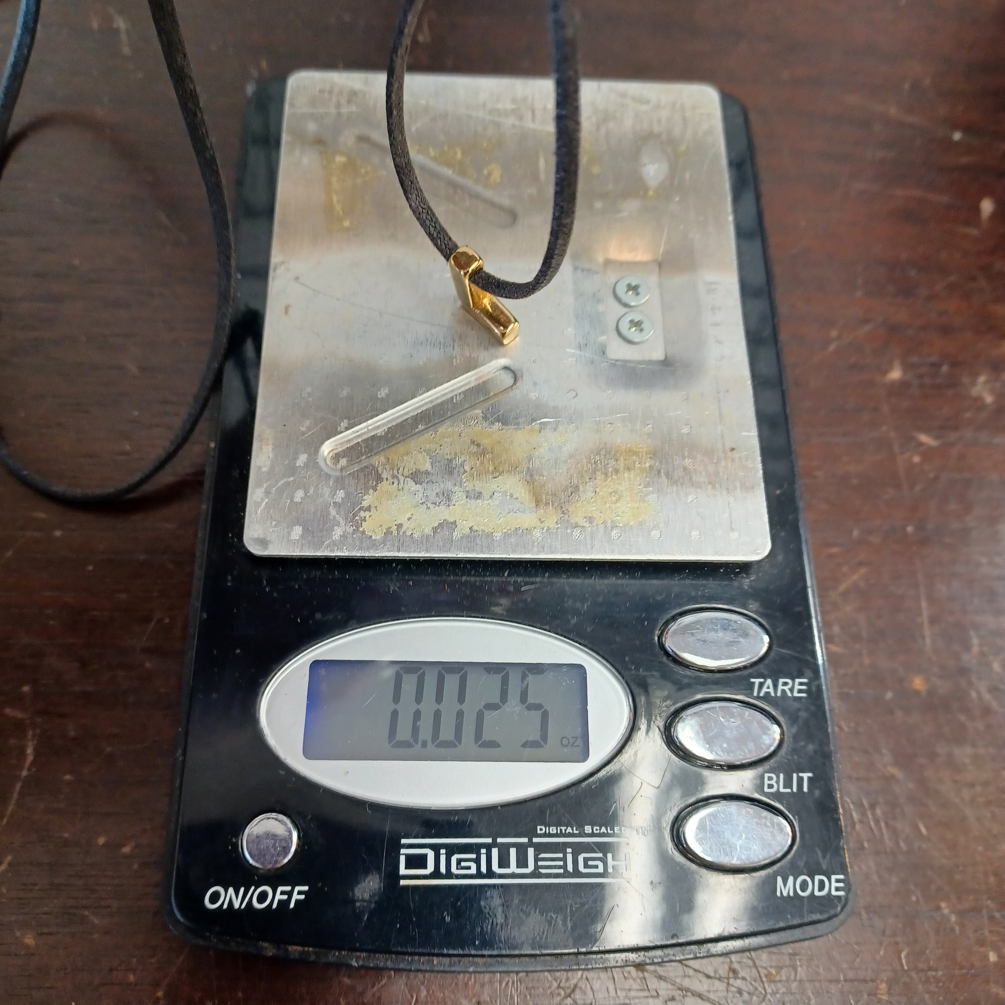 small gold pendant 18k with genuine diamond chip, 12 in leather rope