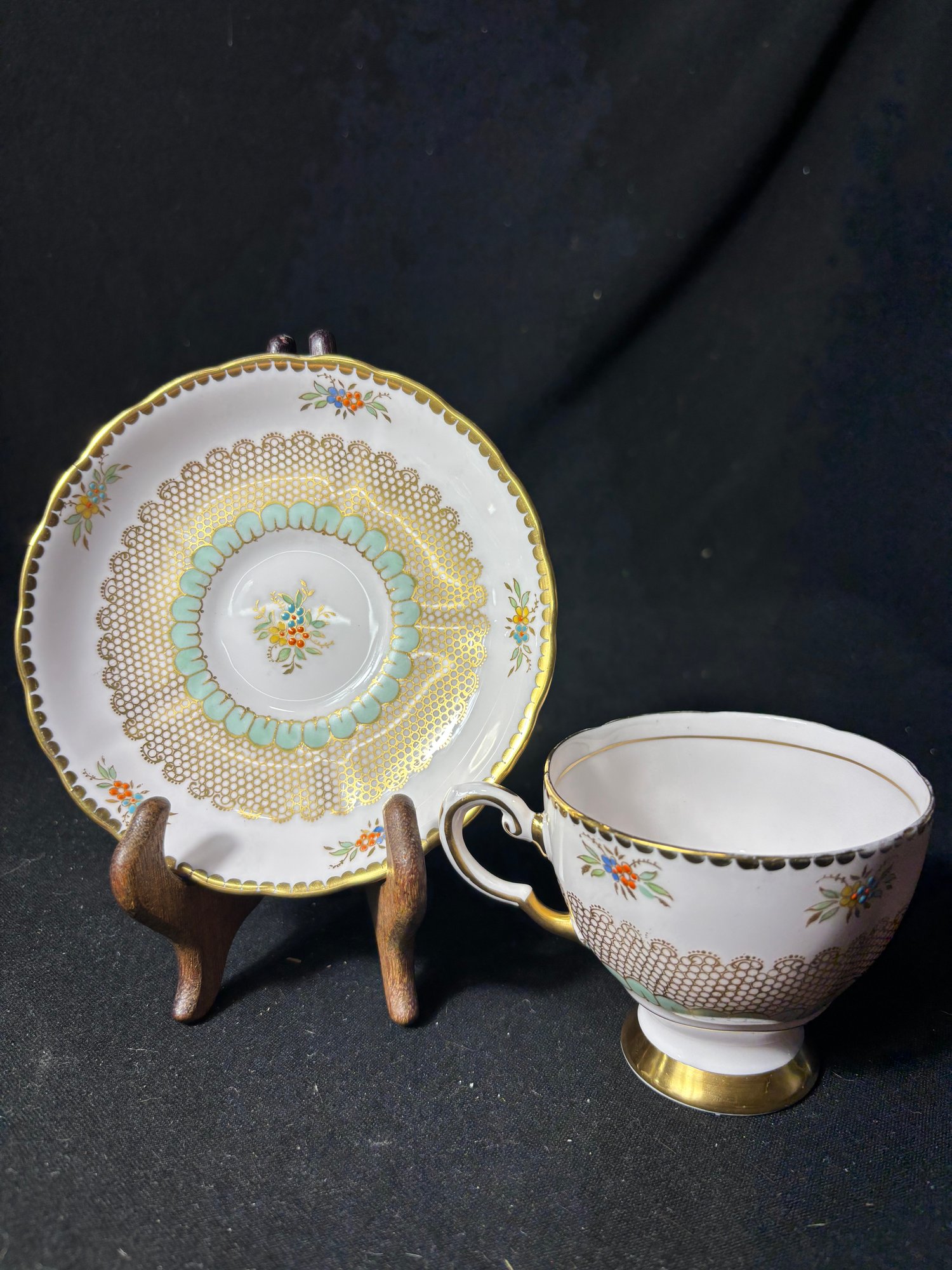 Tuscan English Pink Honeycomb Tea Cup And Saucer