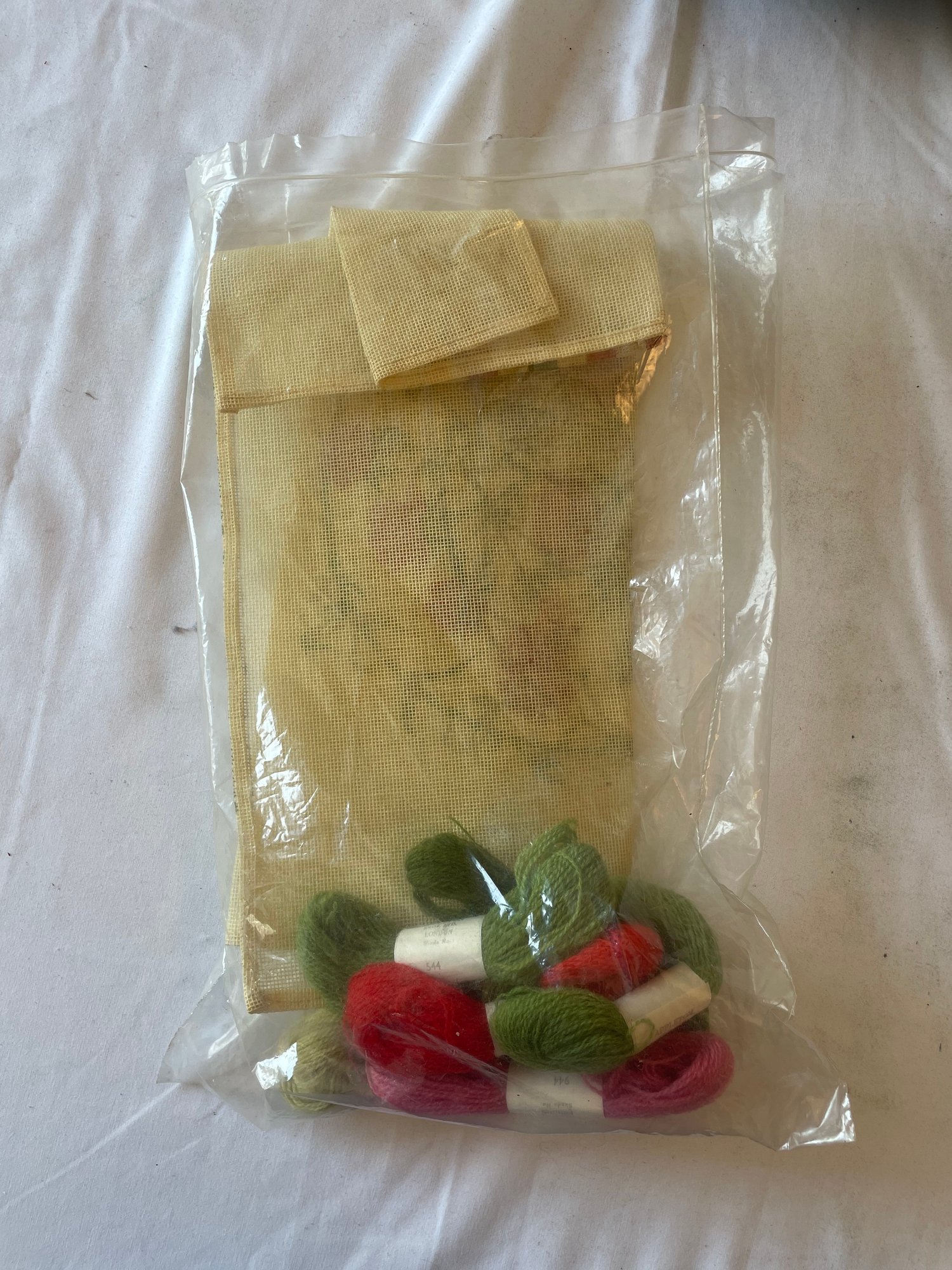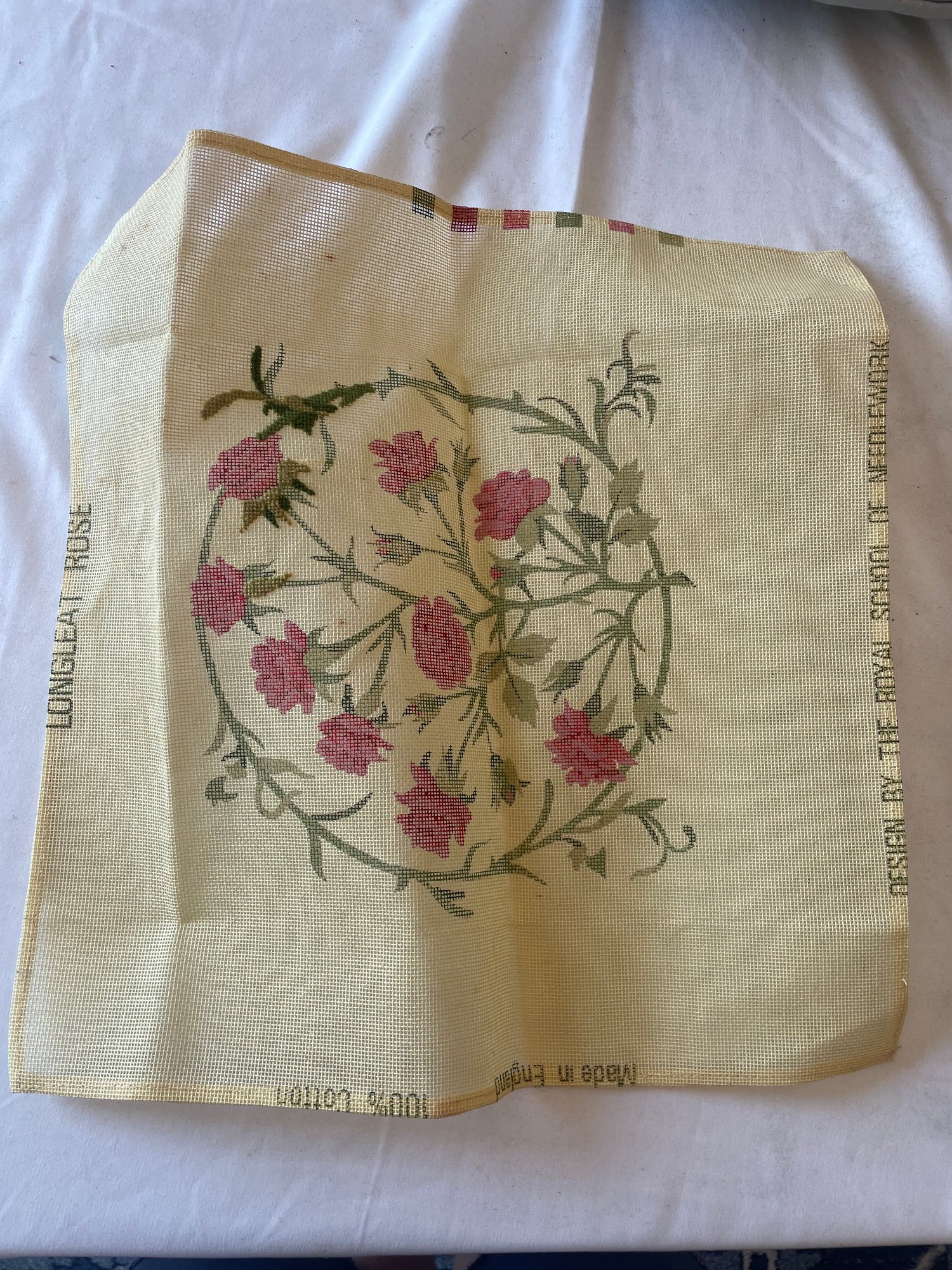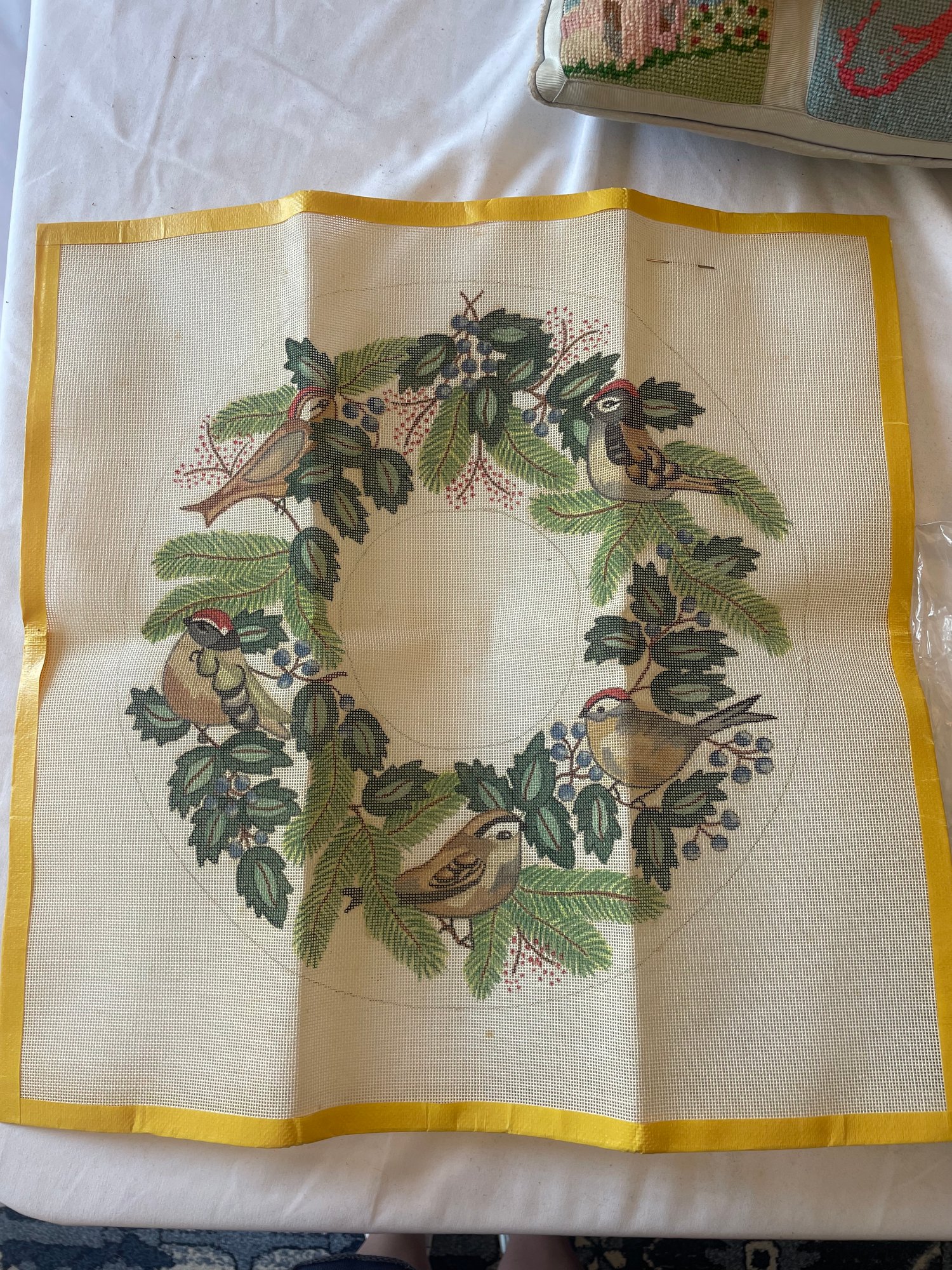 • Handmade Needlepoint stitched pillow (preloved, slight wear)