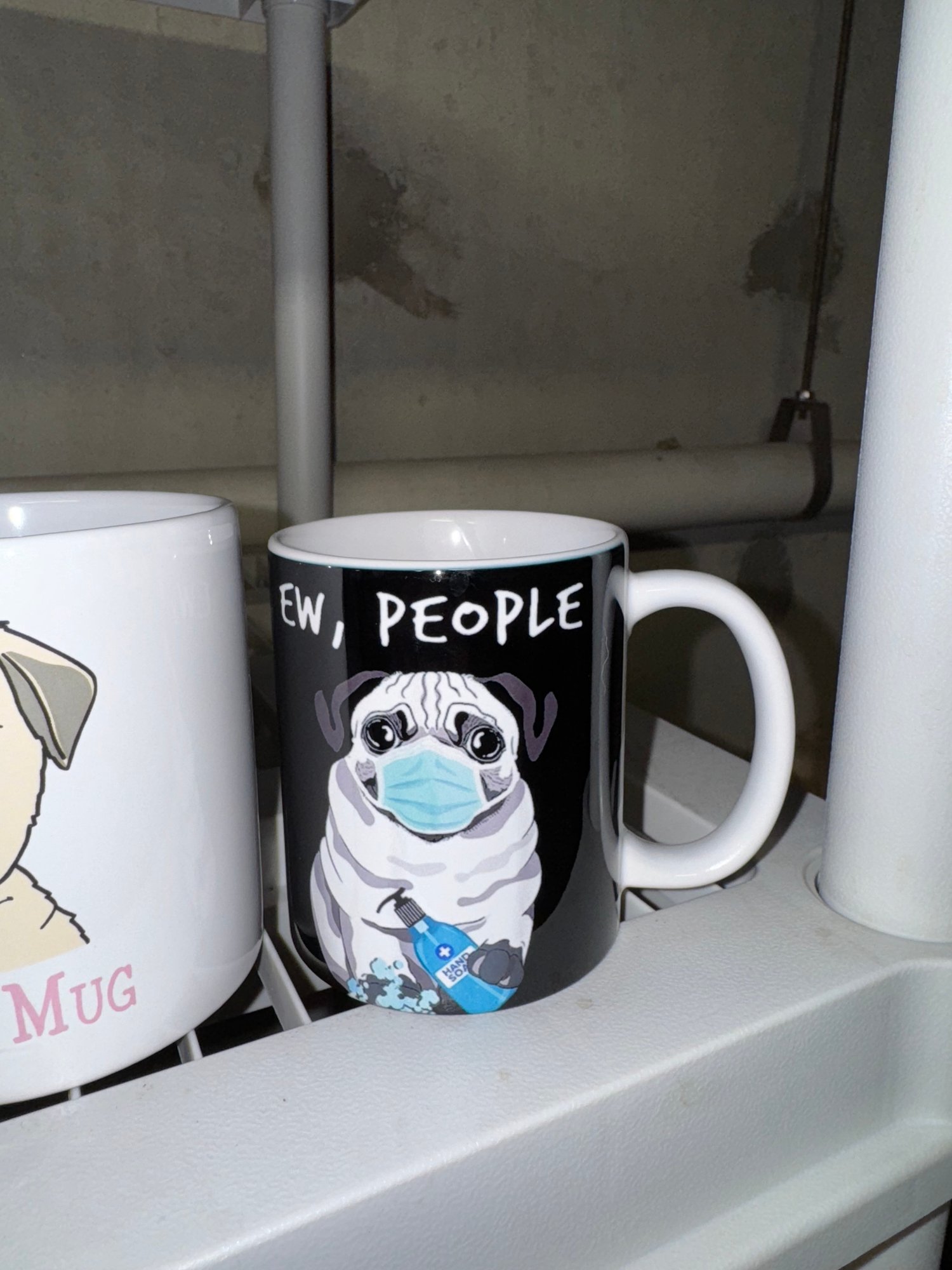 includes a pair of pug coffee mugs