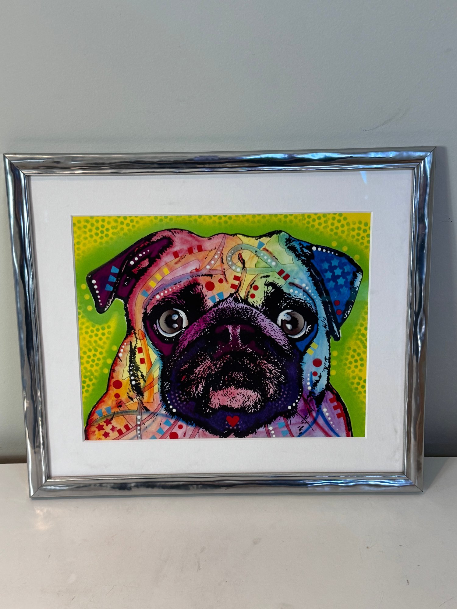 Pug framed photo: 14” x 12” (wire on back for hanging)