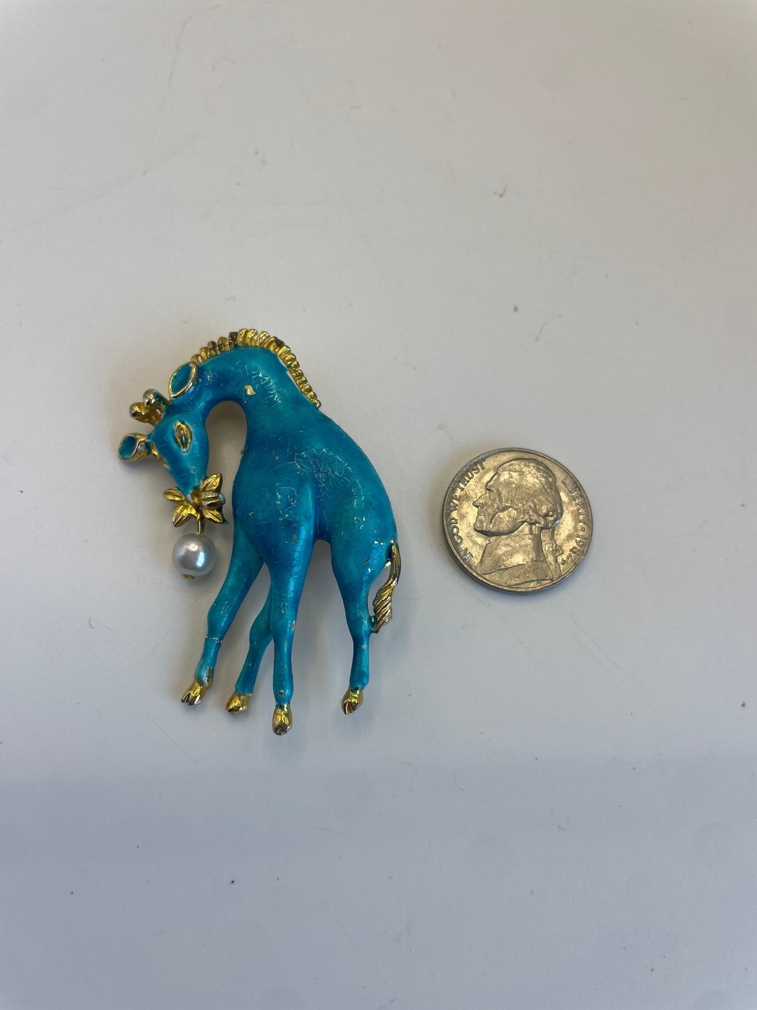 Paint/enamel on blue giraffe cracked slightly