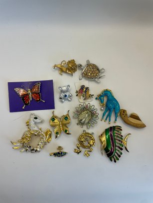 Unique vintage brooches - all different animals and insects