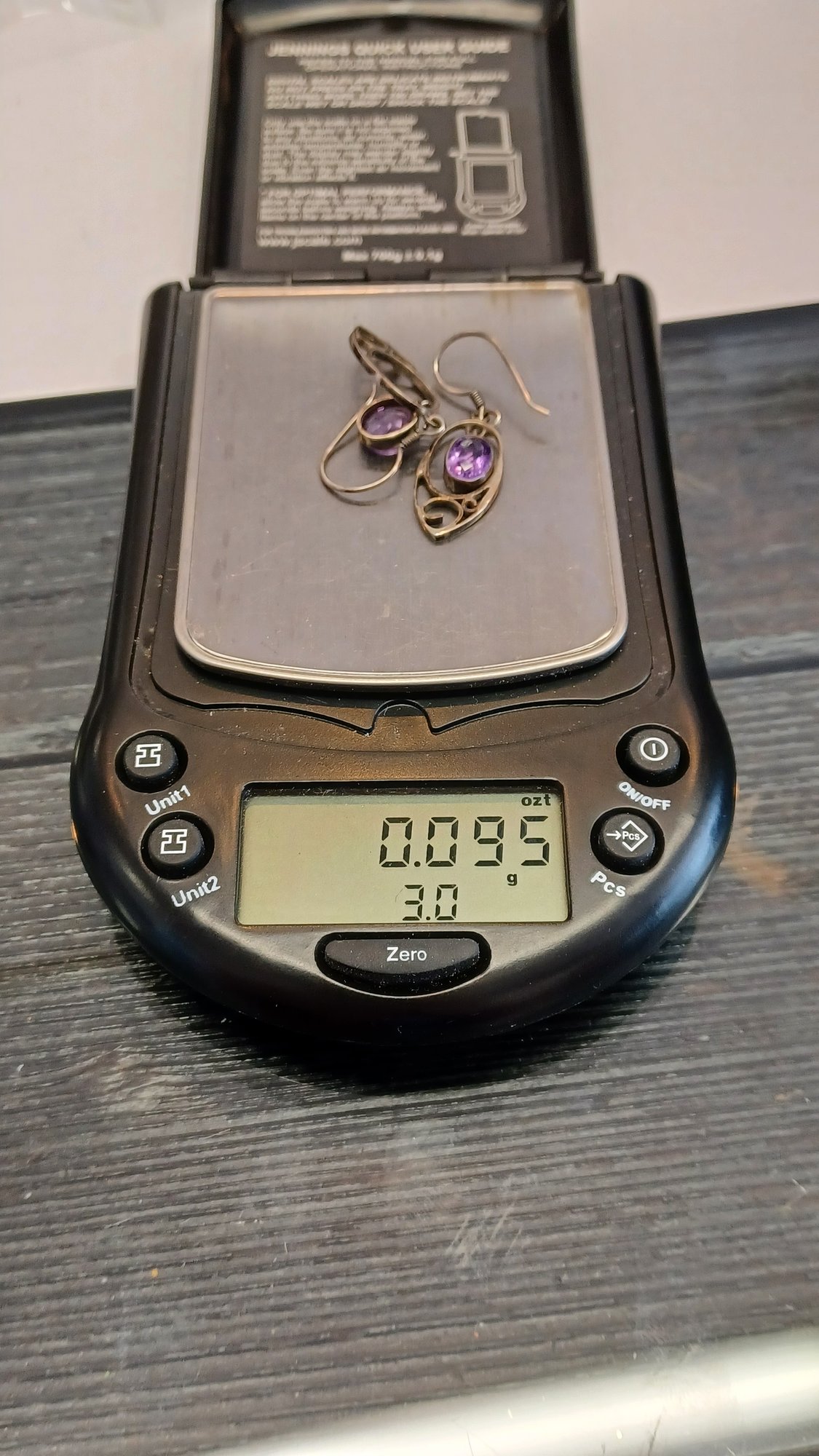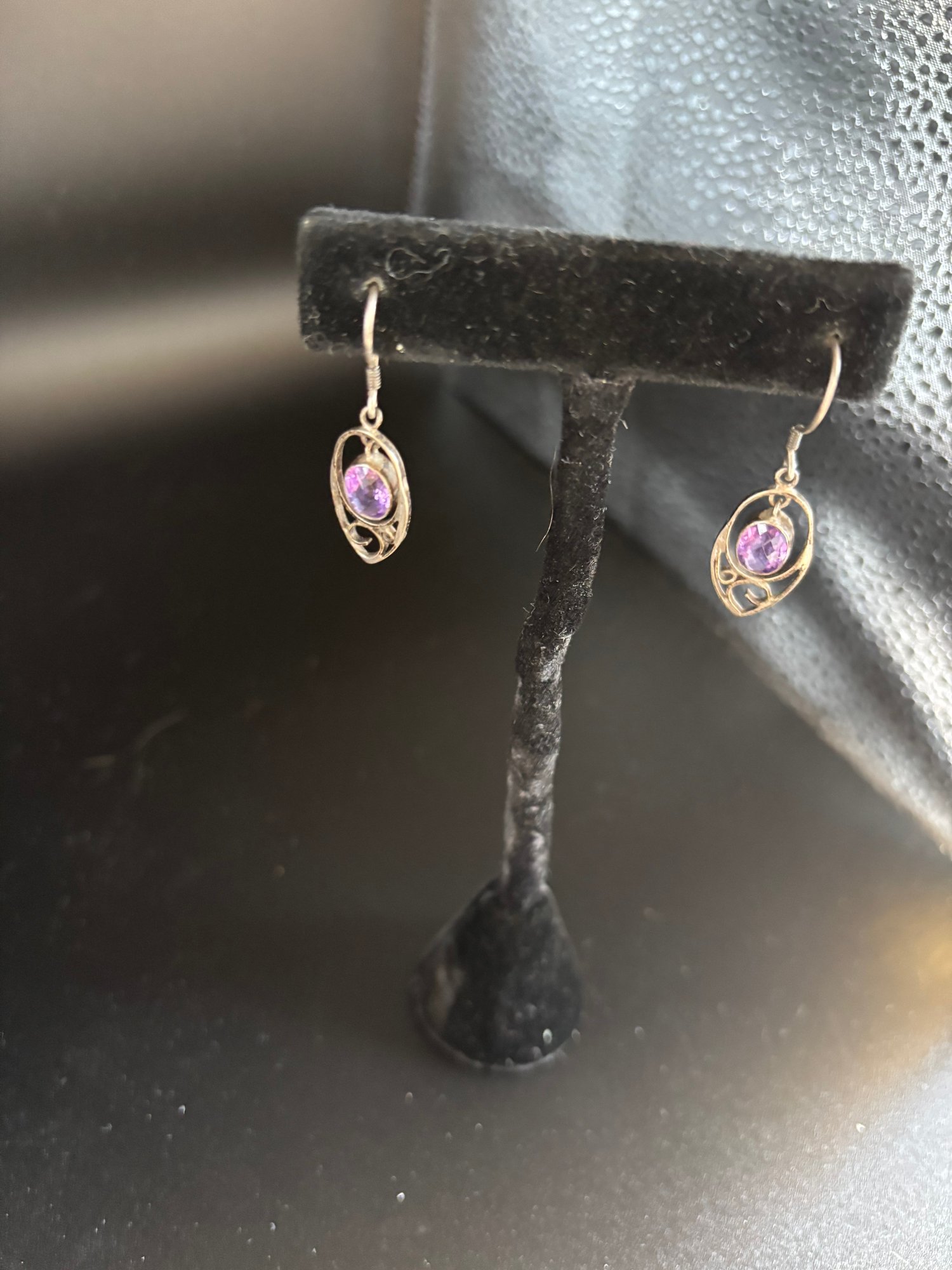 Earrings were scratch tested and are sterling silver, *see pic; weight = 0.095 ozt; stones could be amethyst