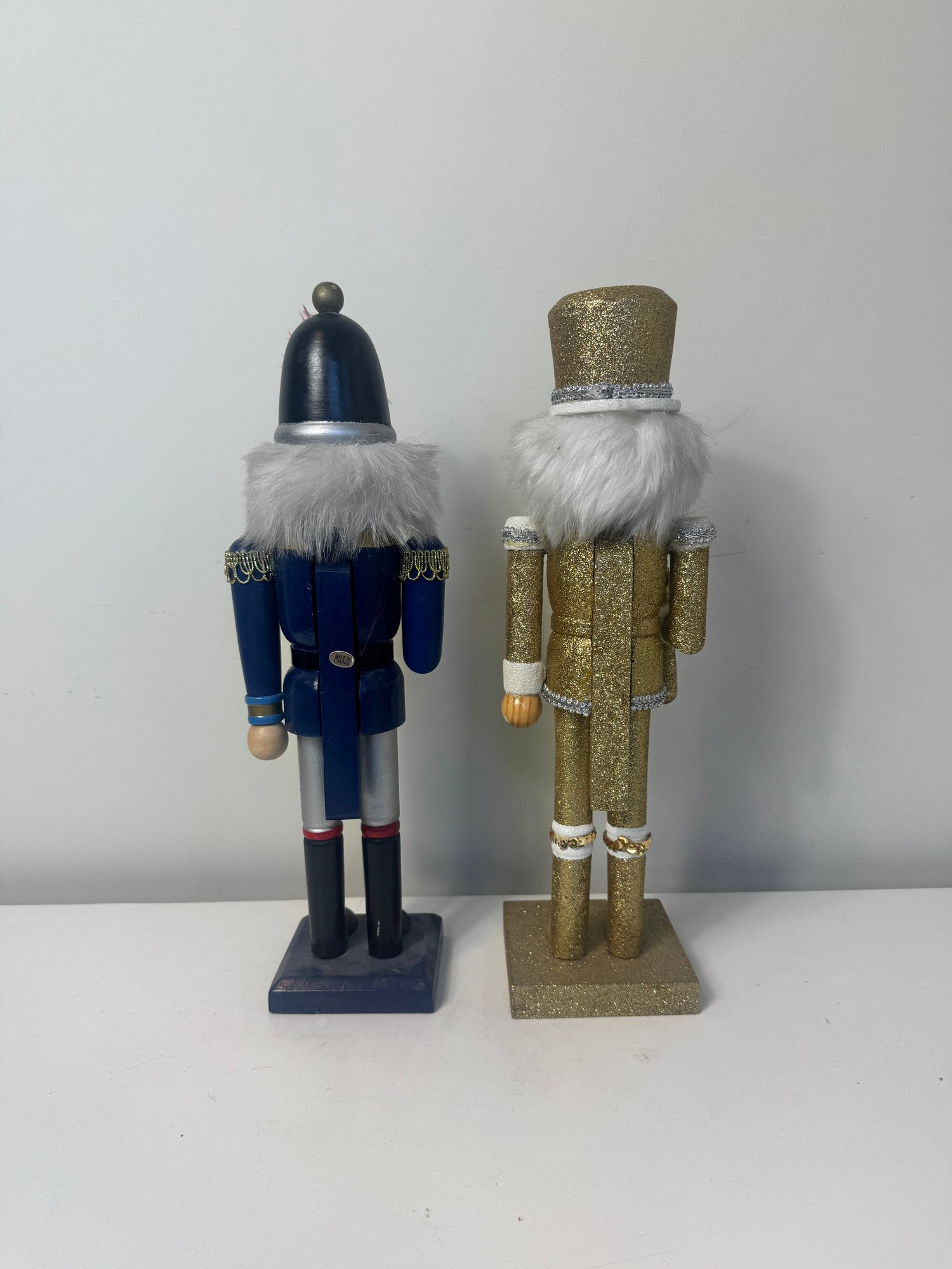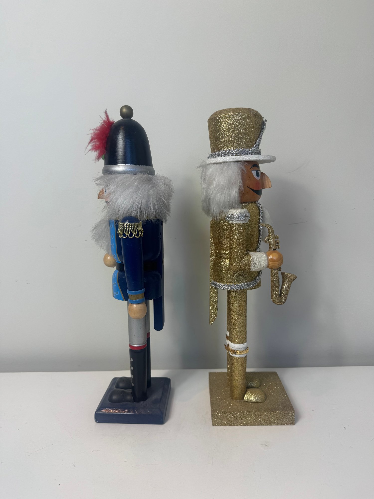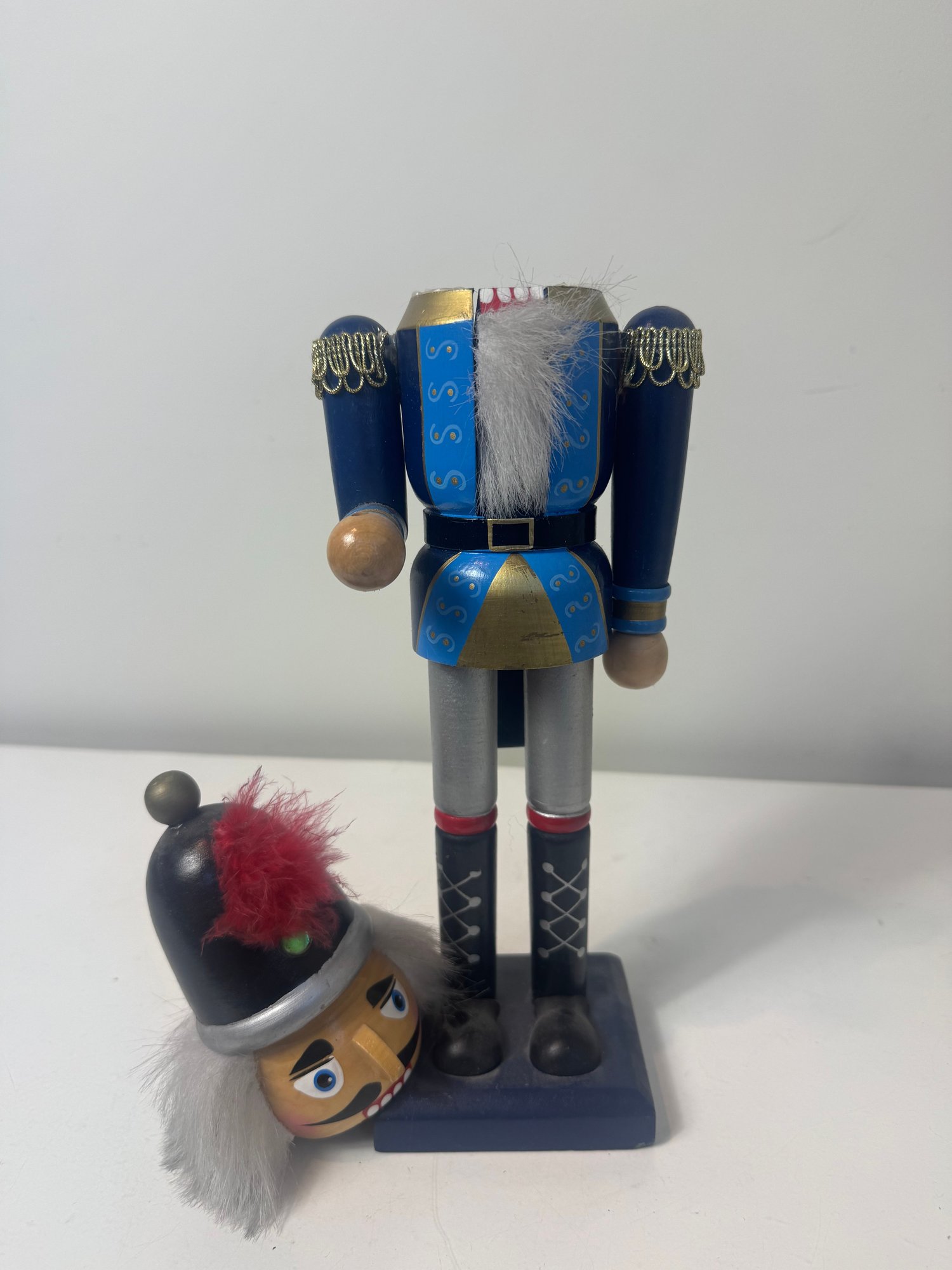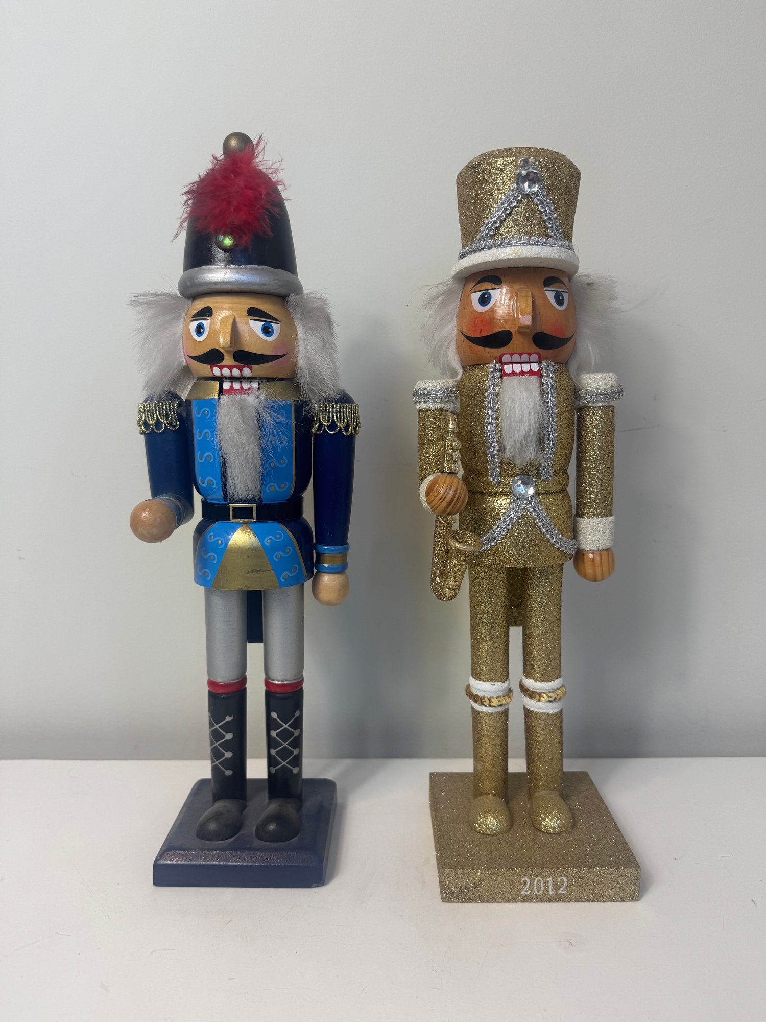 2. Blue and red nut cracker **head is broken off and needs to be re-glued or screwed on** 14.75”