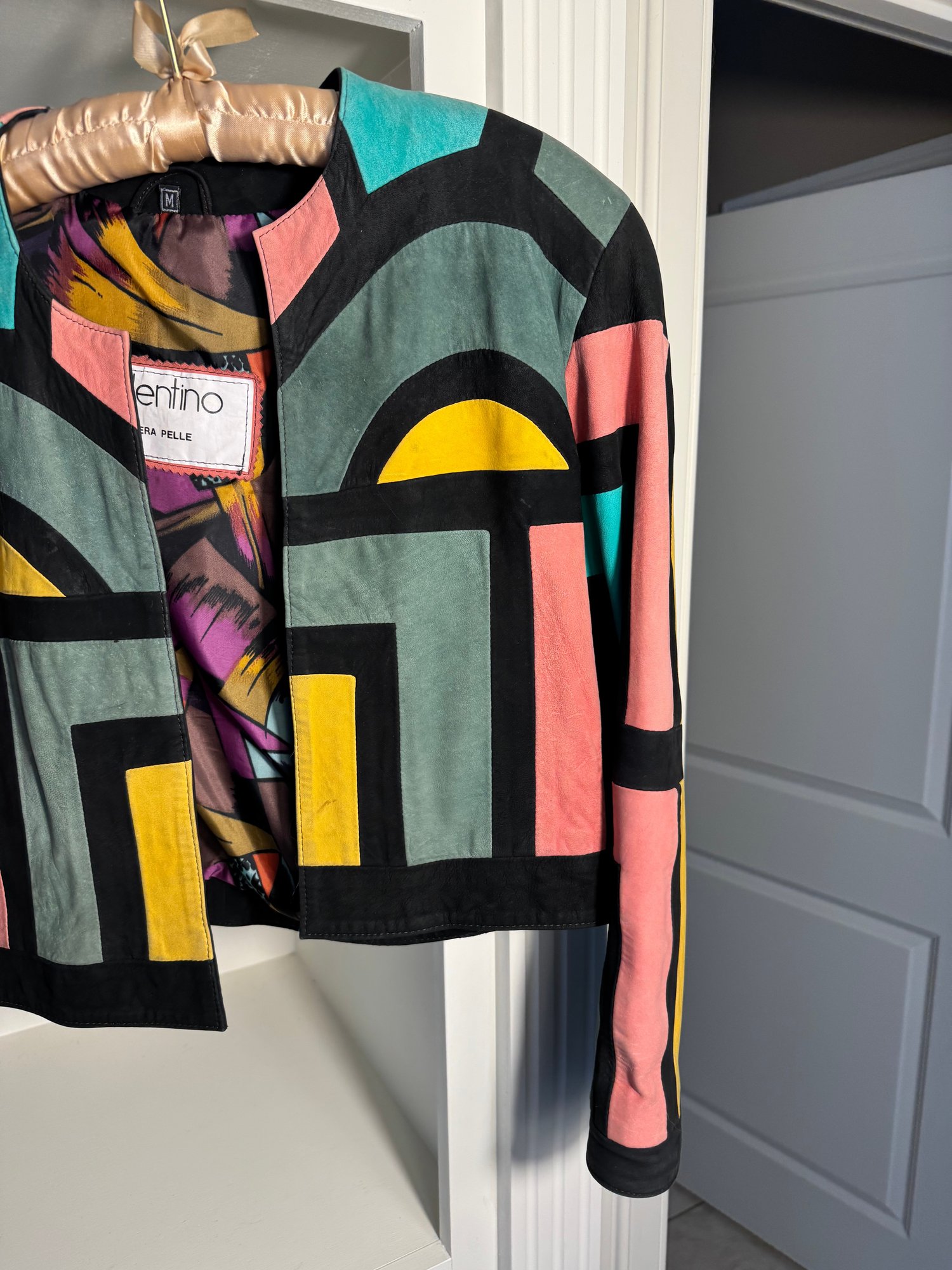 Valentino Vera Pelle Geometric Block Leather Jacket (BR1)