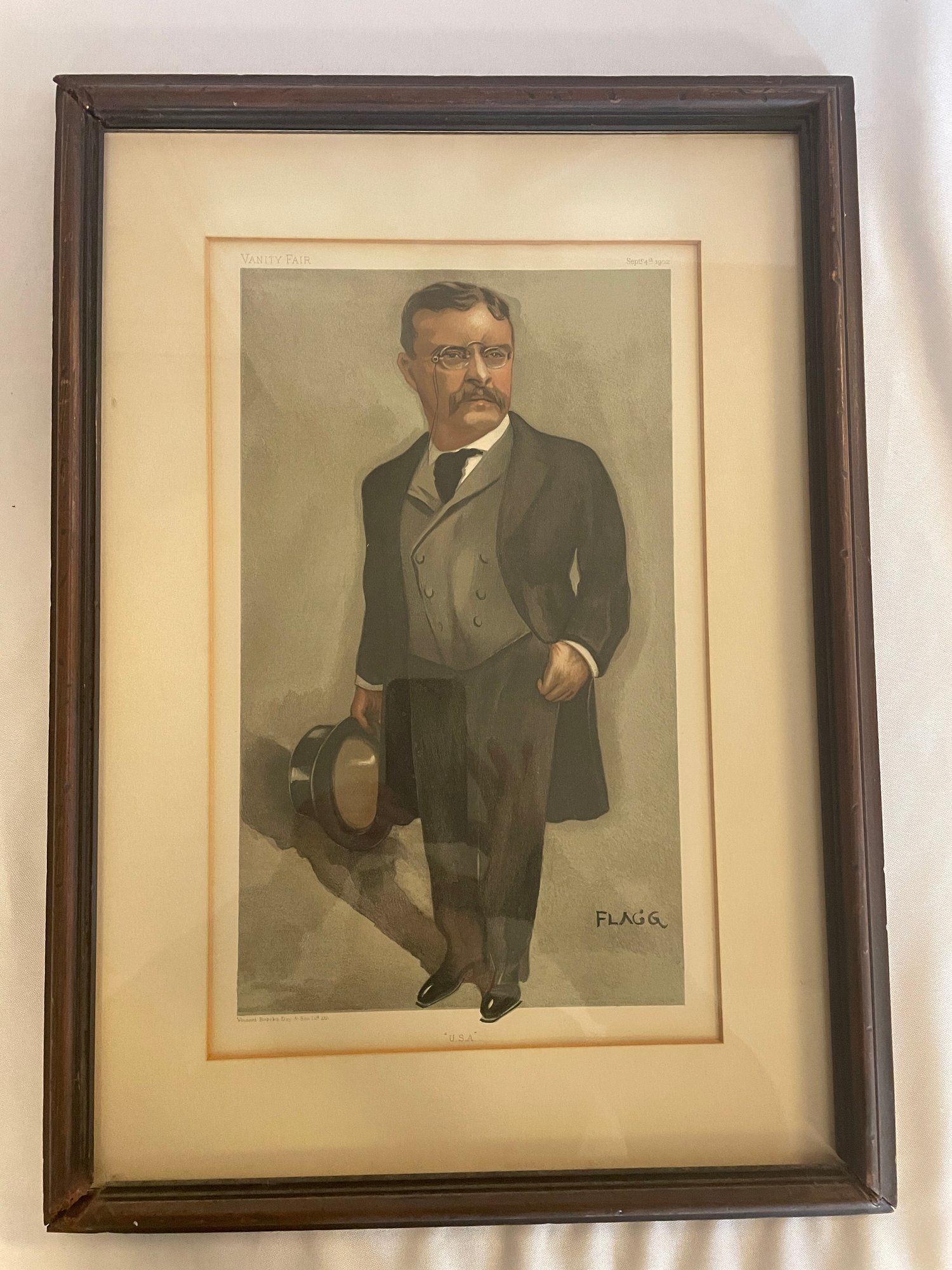 Framed, Theodore Roosevelt numbered Vanity Fair Lithograph published by Vanity Fair Cartoon Co.1902 lithograph # 903, . Registration #22987