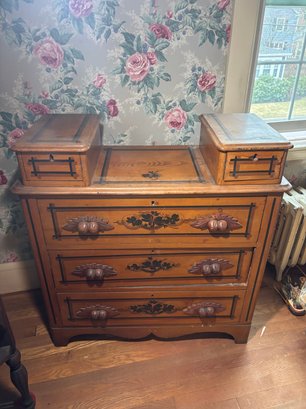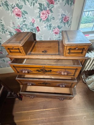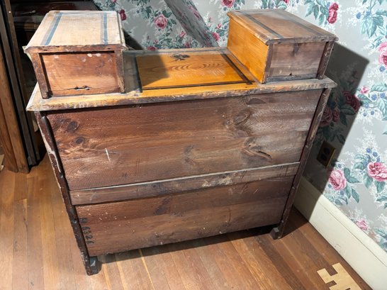 Notes: Has damage(see photos), drawers have trouble opening and closing do not have key but are unlocked. Top drawers don’t have handles and only one was able to be opened.