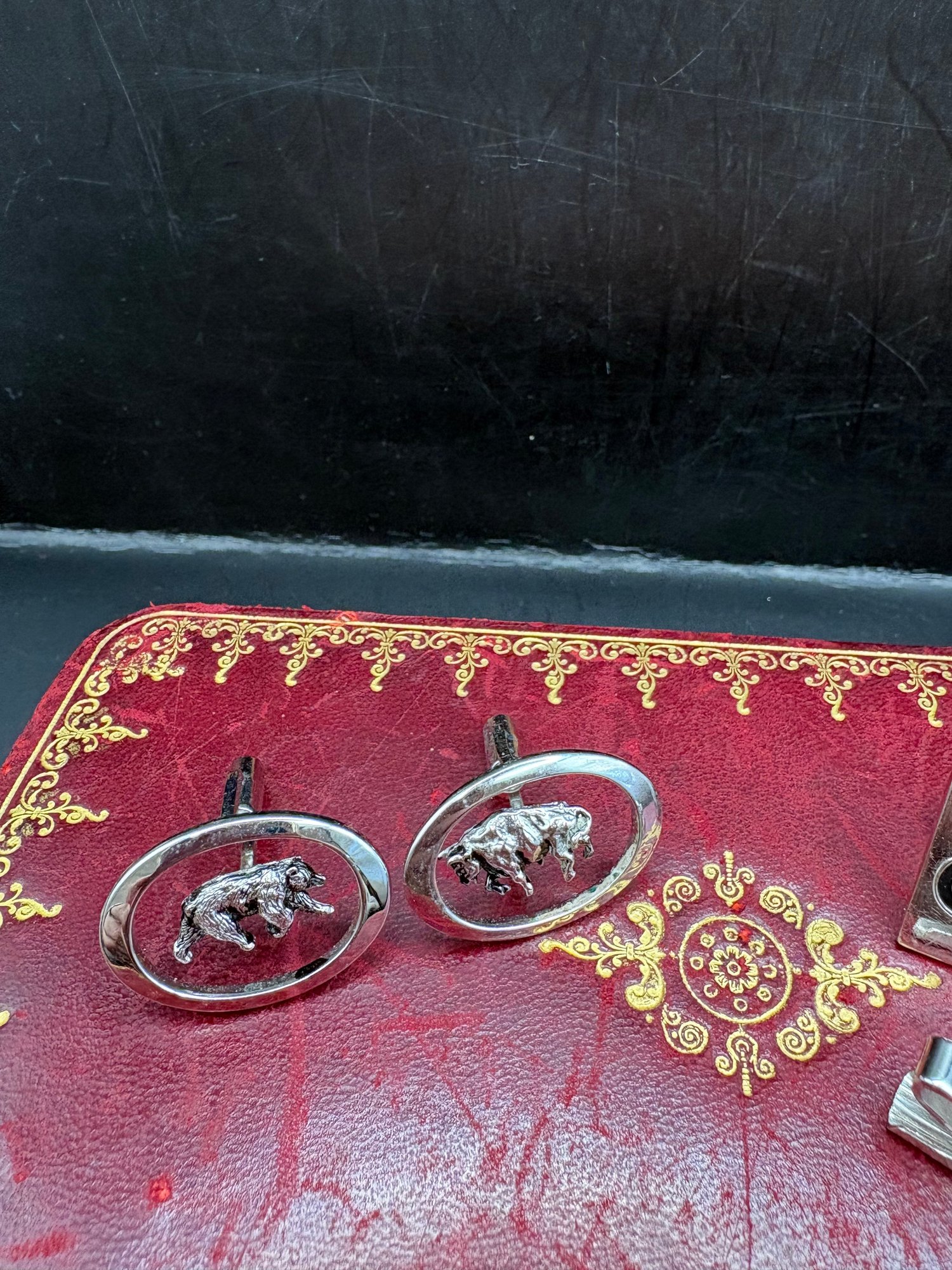 Silvertone pair of cufflinks; 1 with bear, 1 withbull