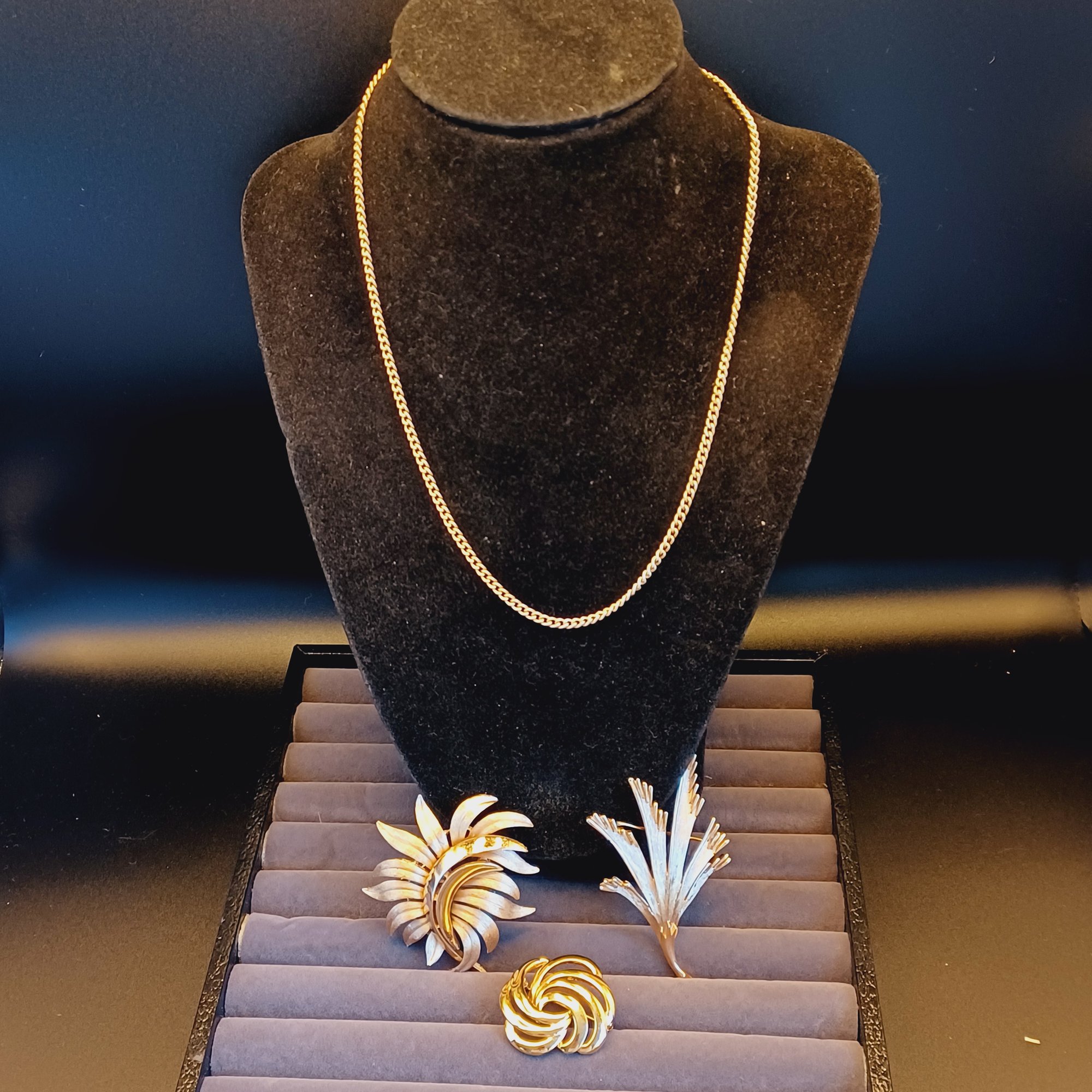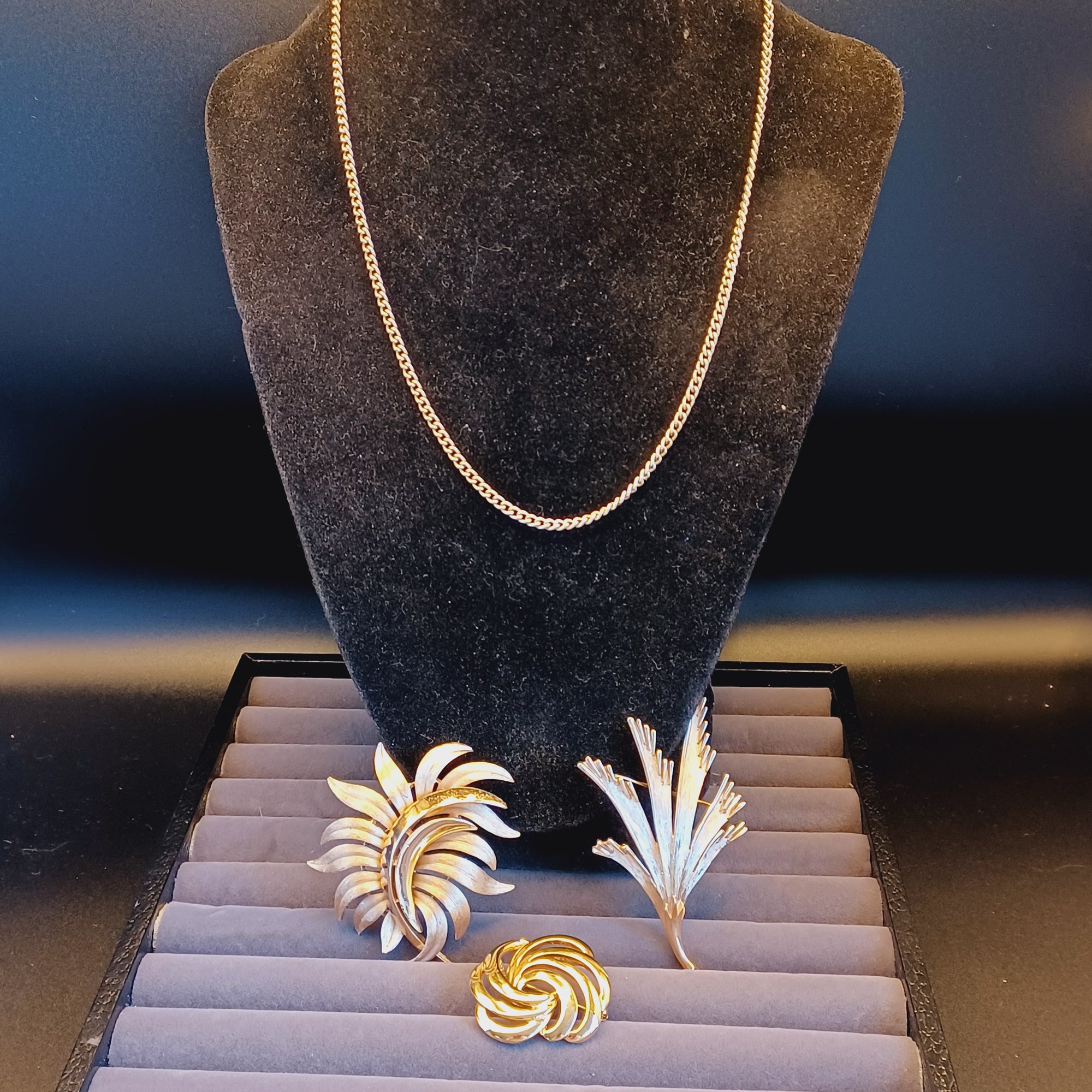 * tone, coloration of Trifari pins doesn't come through accurately in photos; they have a brushed appearance
