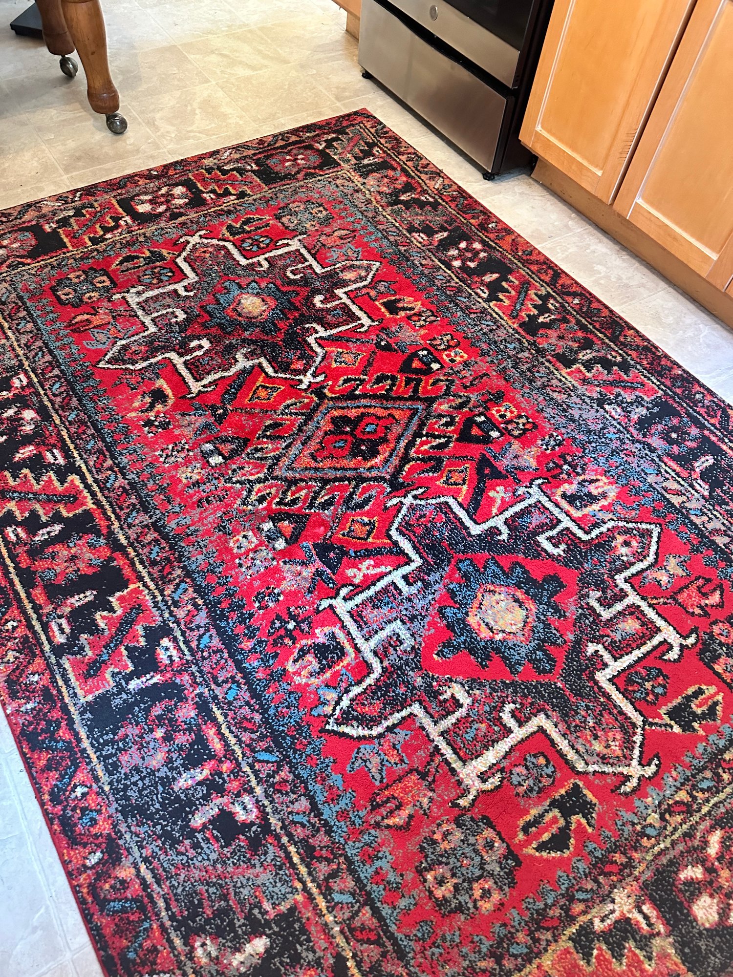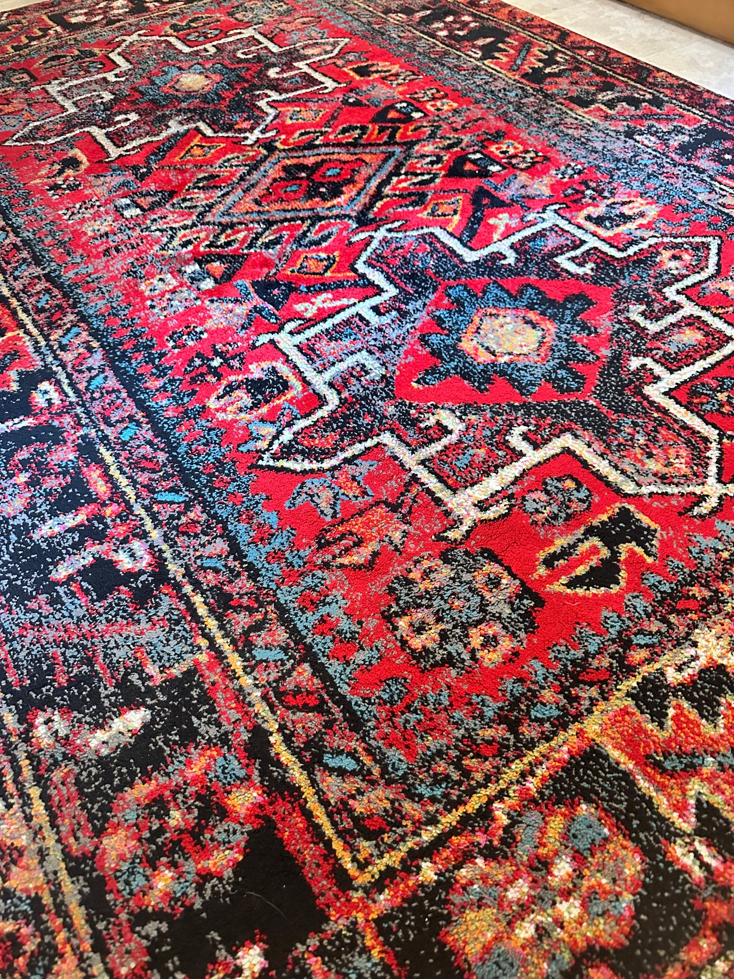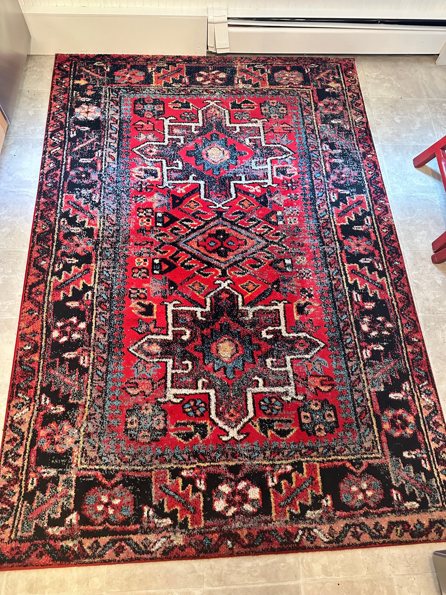 Vintage hamaden large red rug machine made by Safavieh; dusty may require some cleaning