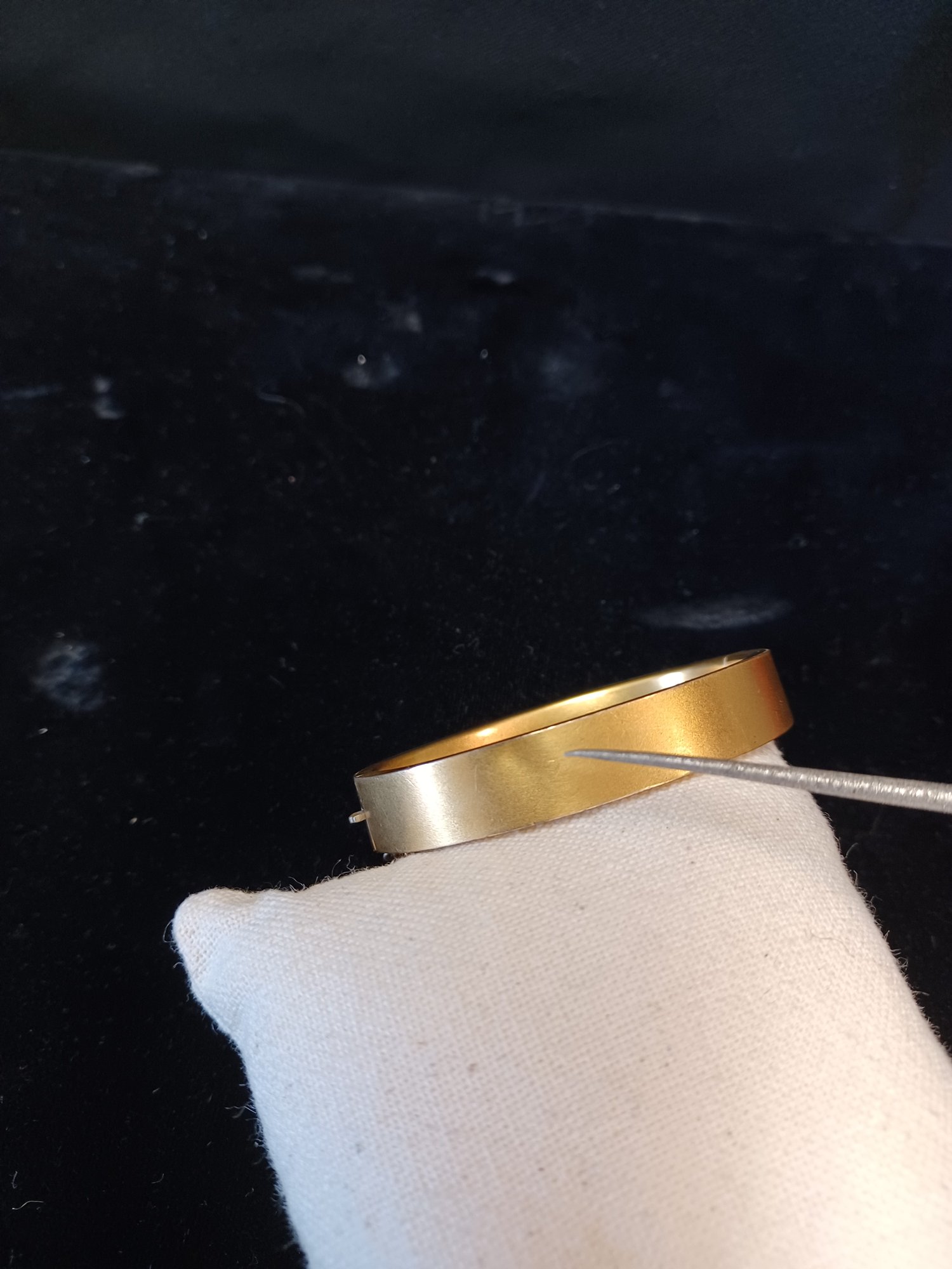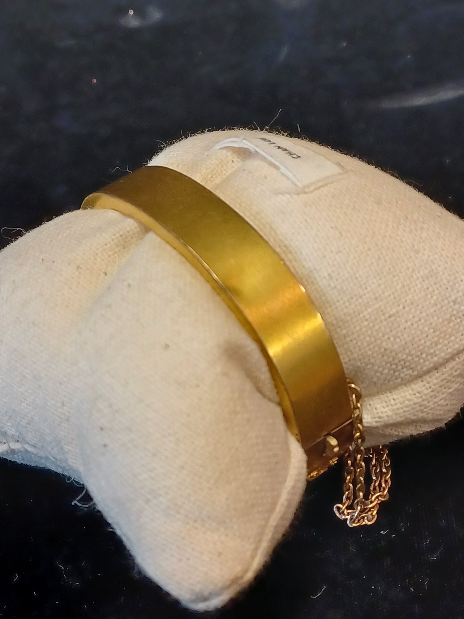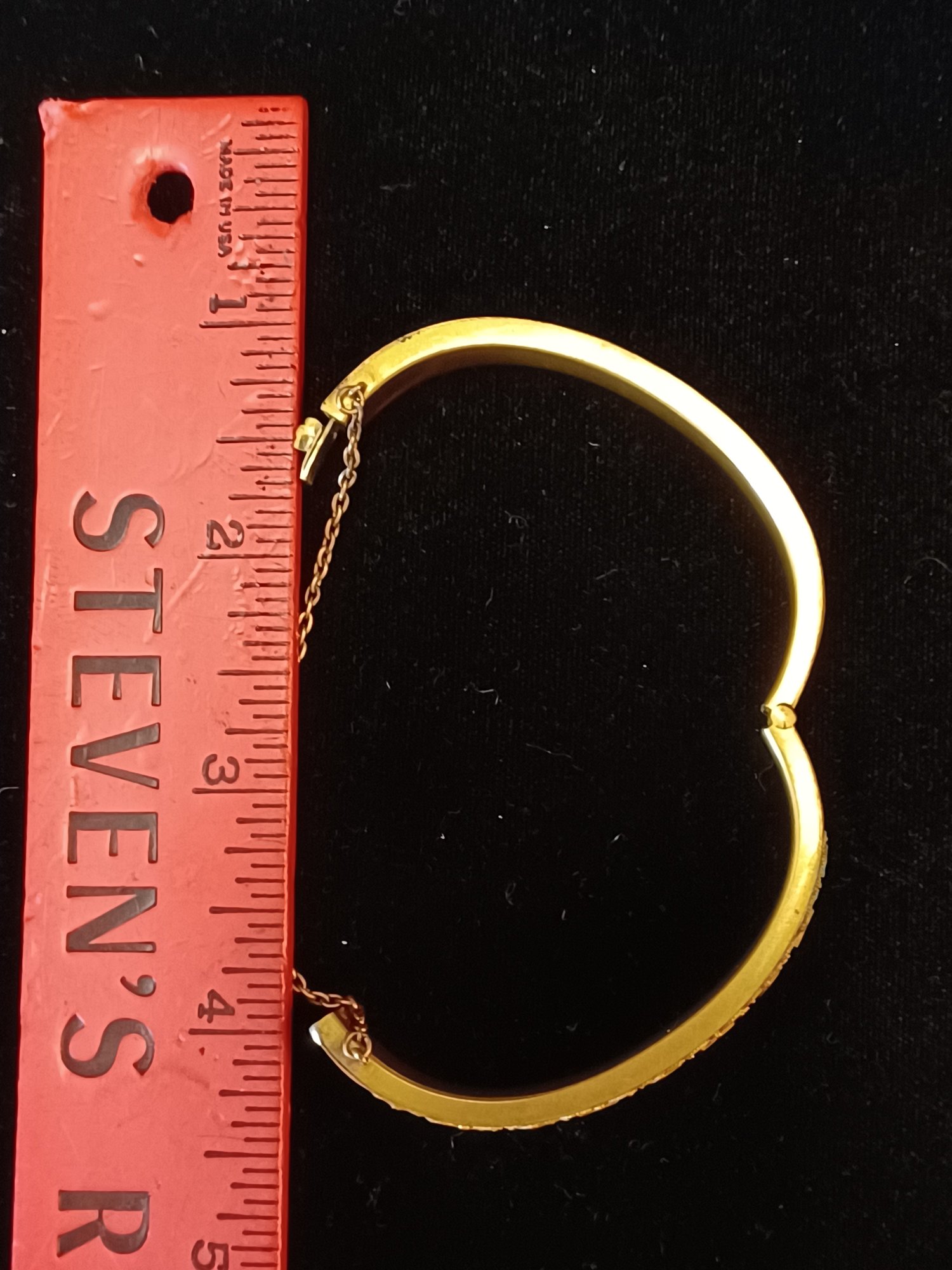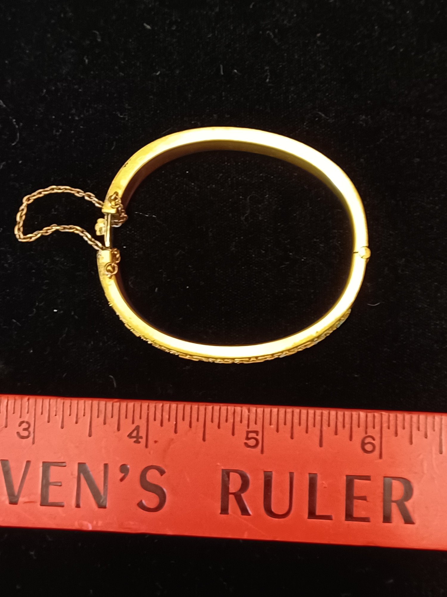 Some wear and scuffs; shows some corrosion; beautiful filigree work on topside of cuff; * needs cleaning