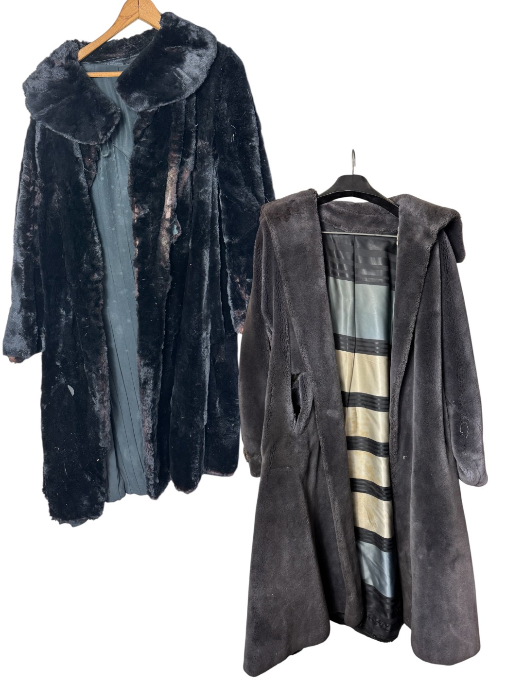 both coats have noticeable damage & need professional cleaning