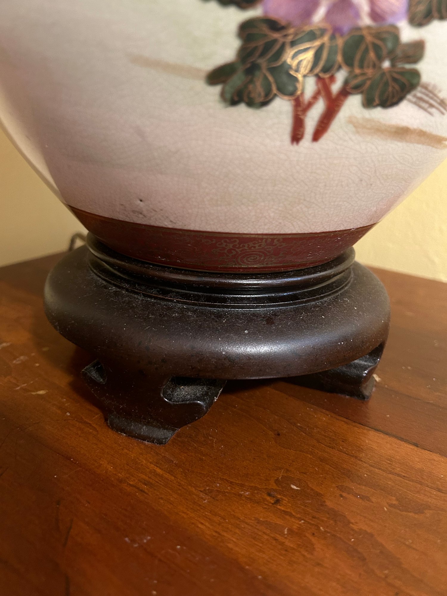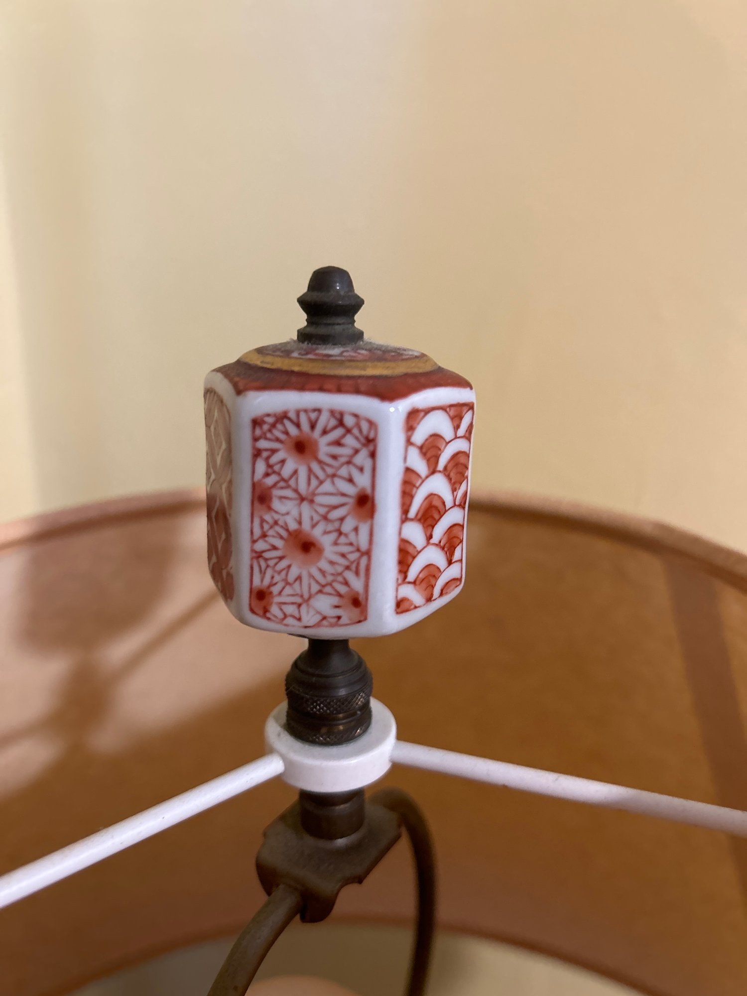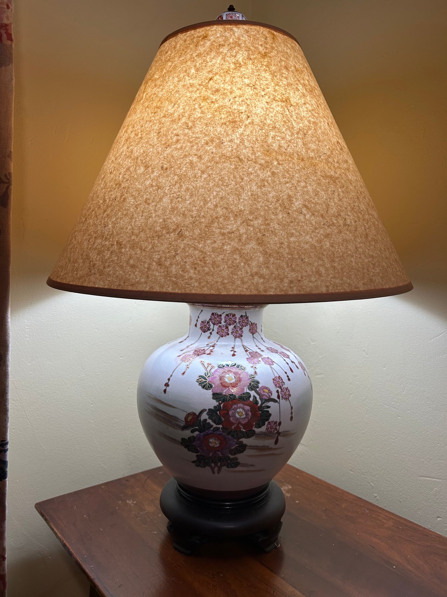 Vintage Ornate Oriental Lamp - a few small stains, pictured. Gold embellishments.