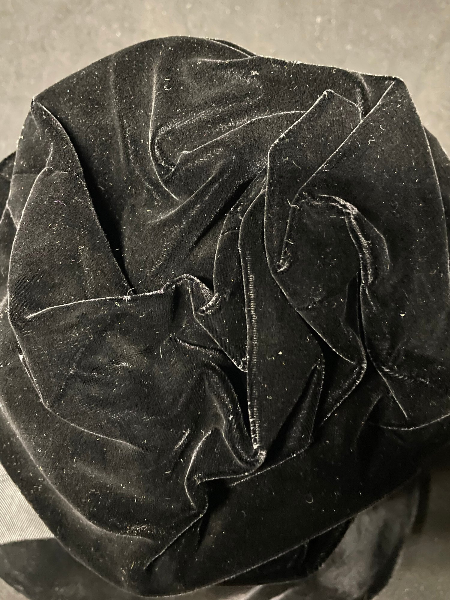 Velvet slouch bucket hat with ribbon and rhinestone details