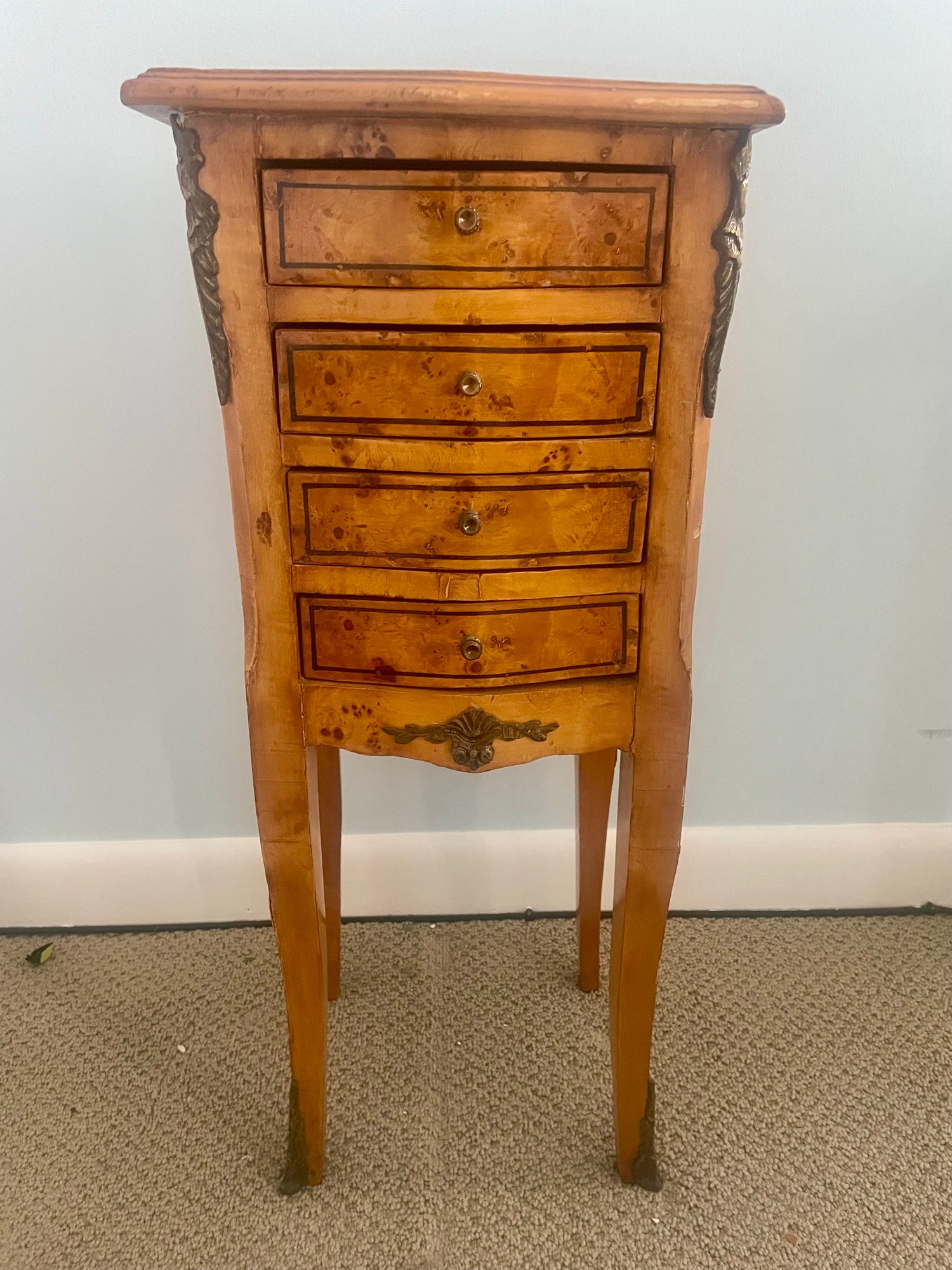 Vintage wooden 4 drawer jewelry case, see photos for water stains & nicks