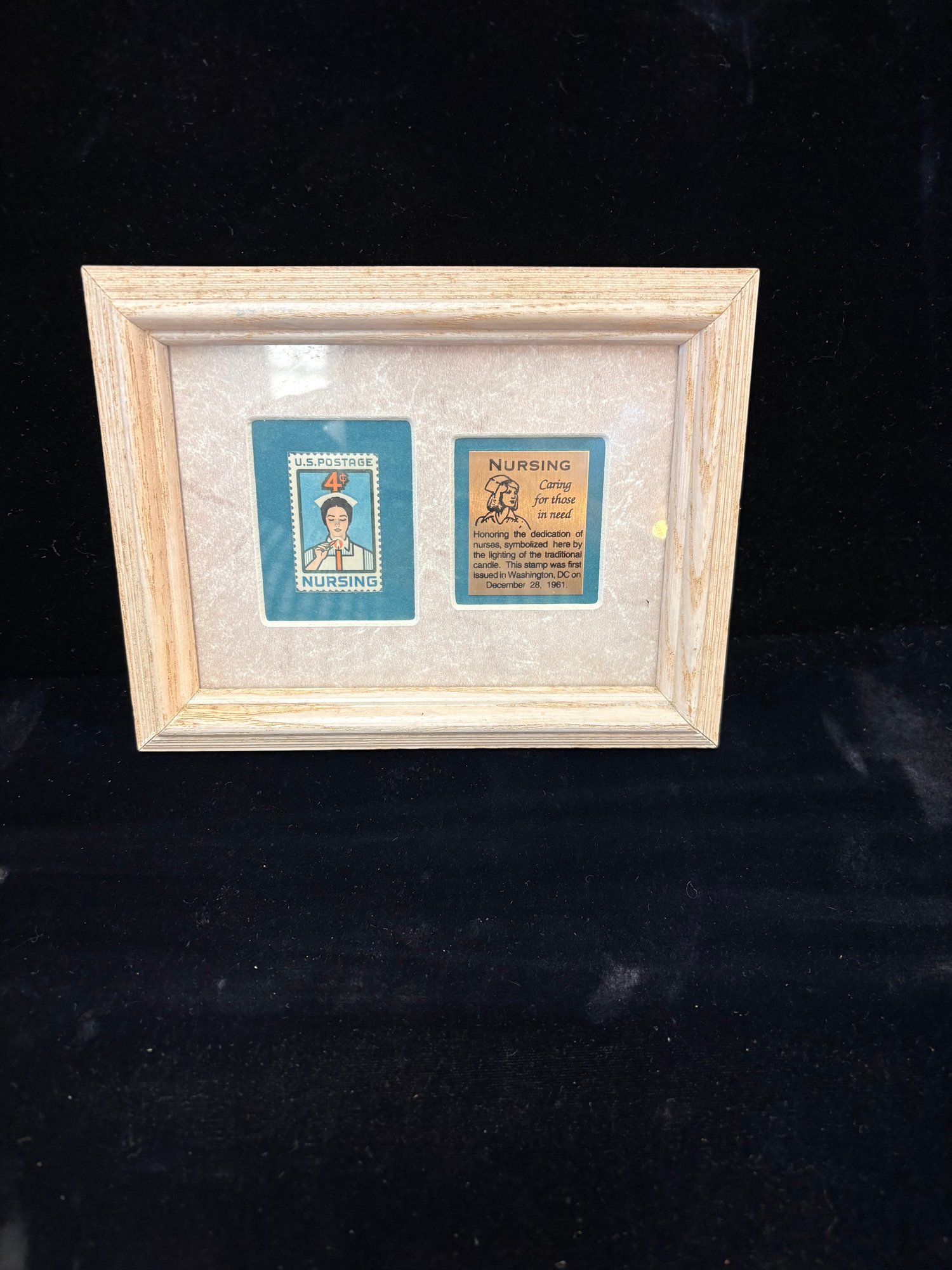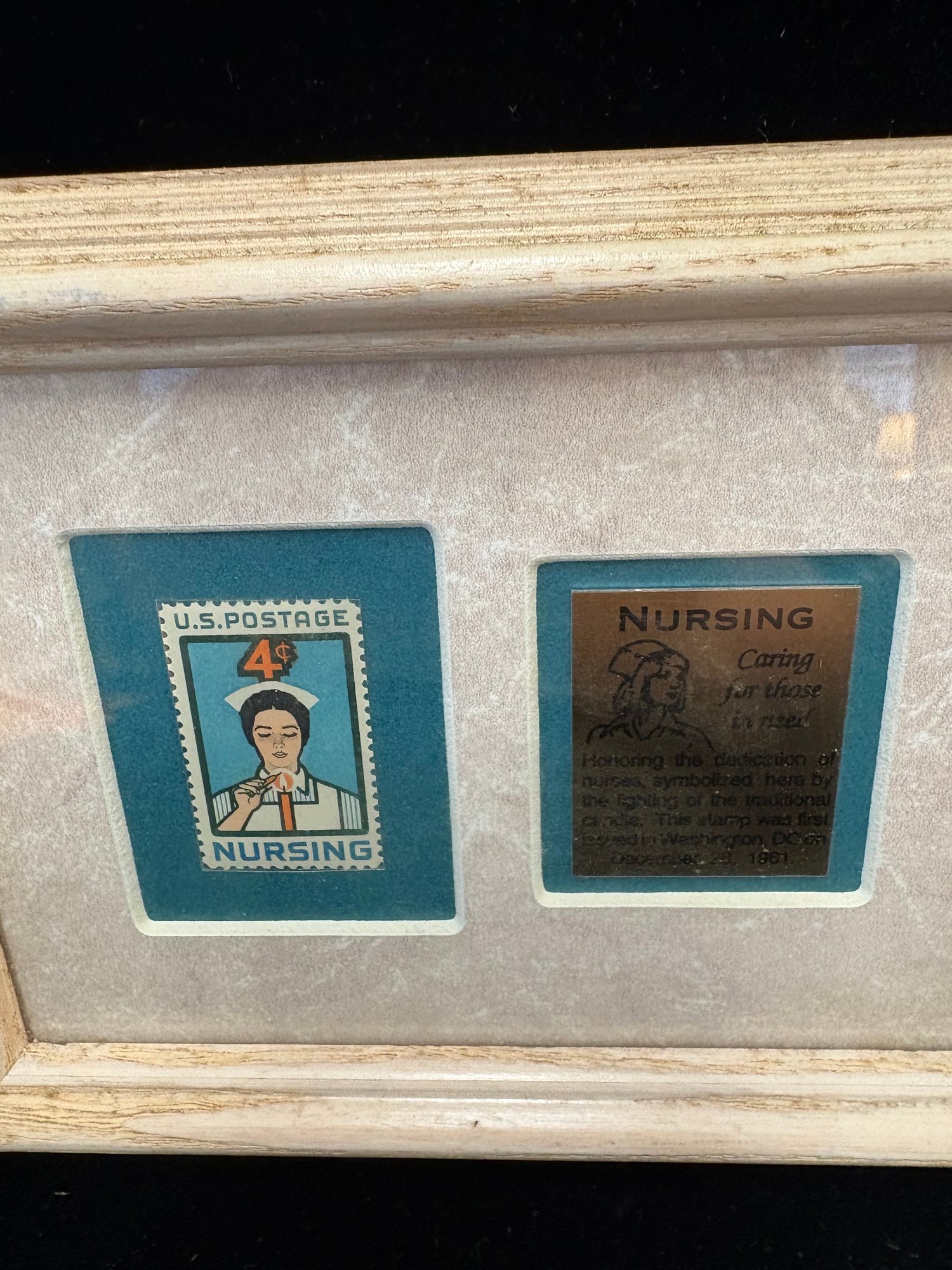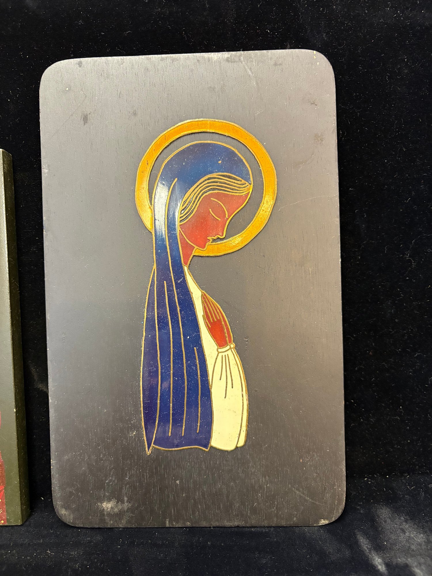 Virgin Mary on Blackwood with metal and paint it’s 9.5 x 6“ and the nurse one is 6 x 7“ it’s glass in both things inside are set mounted
