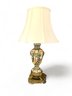Vtg Italian hand painted table lamp with brass filigree base, dolphin footing