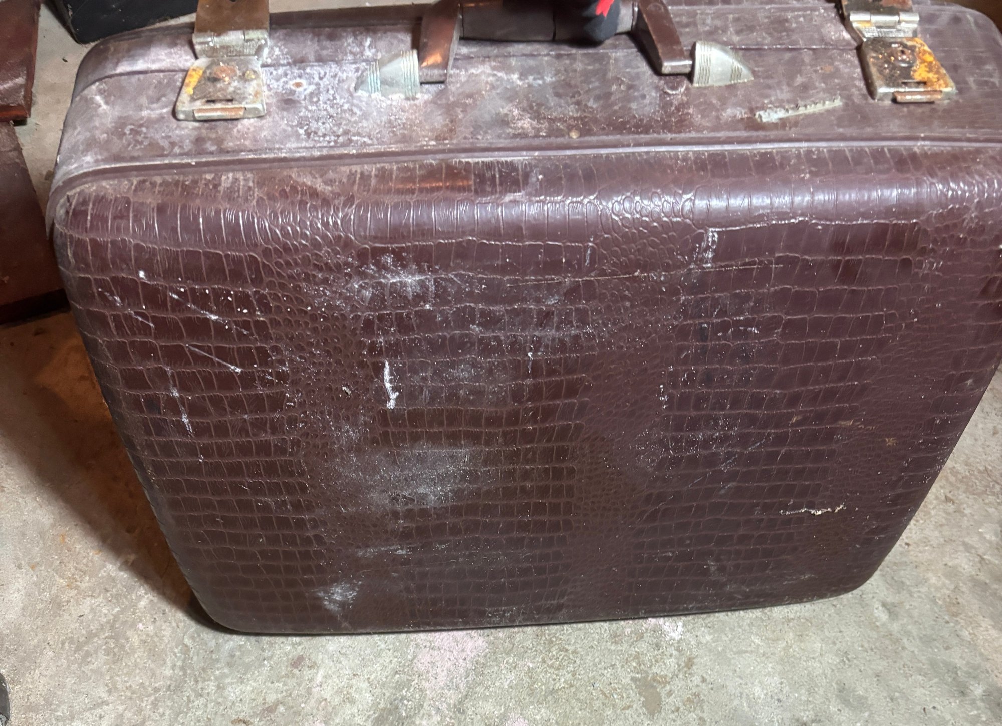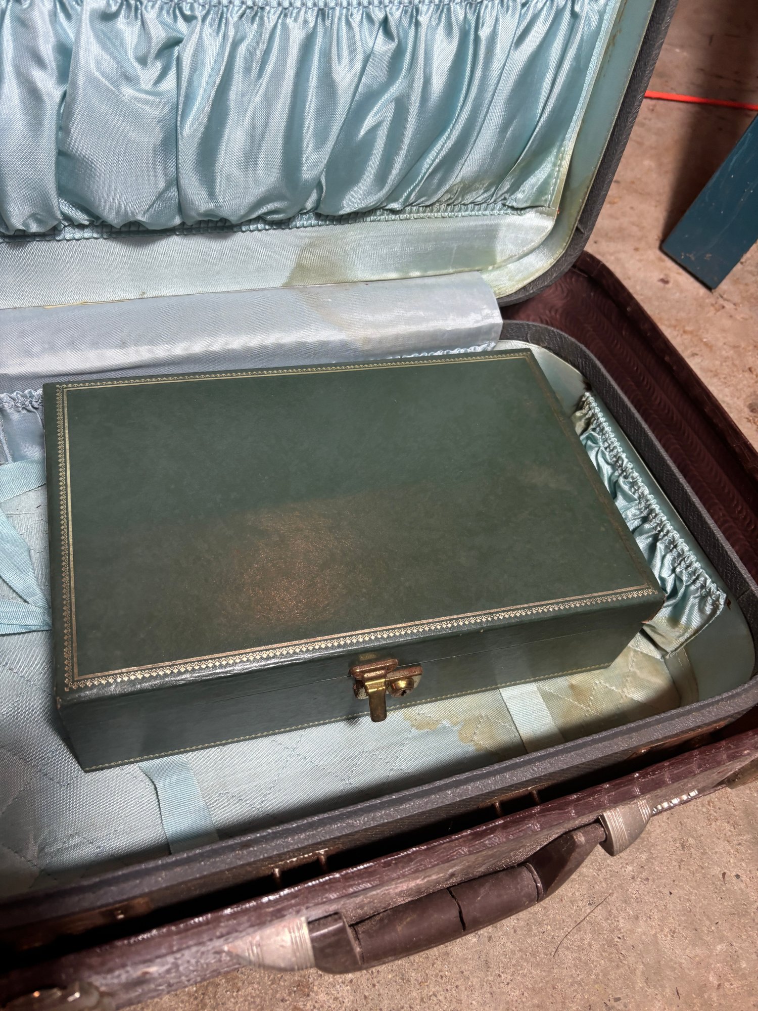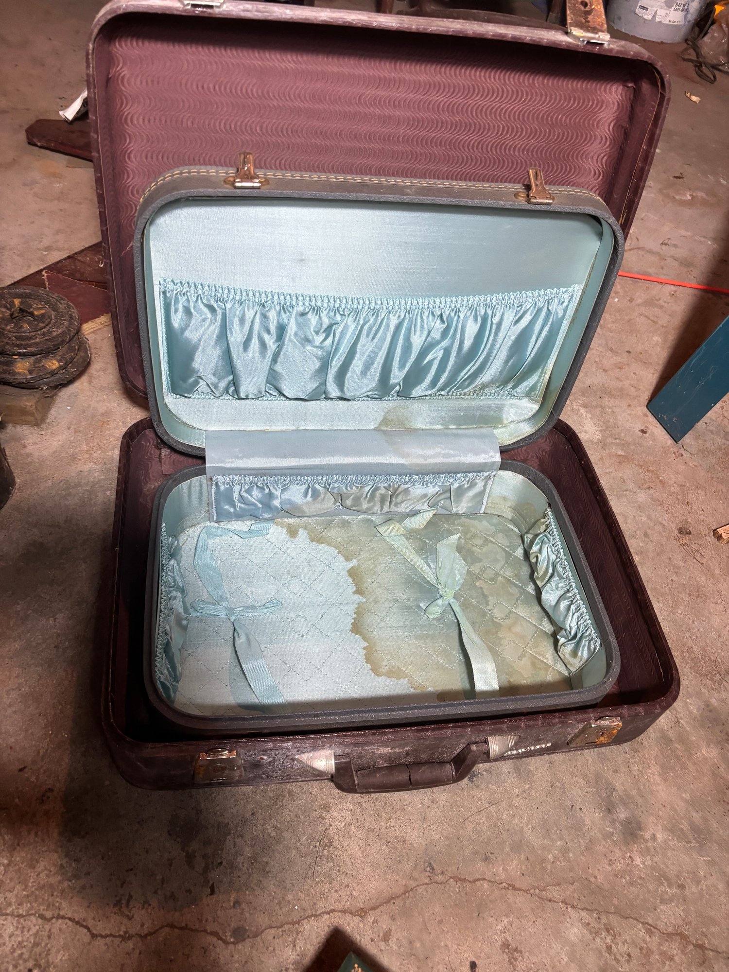 Notes: Brown case doesn’t fully latch, medium sized case latches but has difficulty unlatching and has staining on inside fabric.
