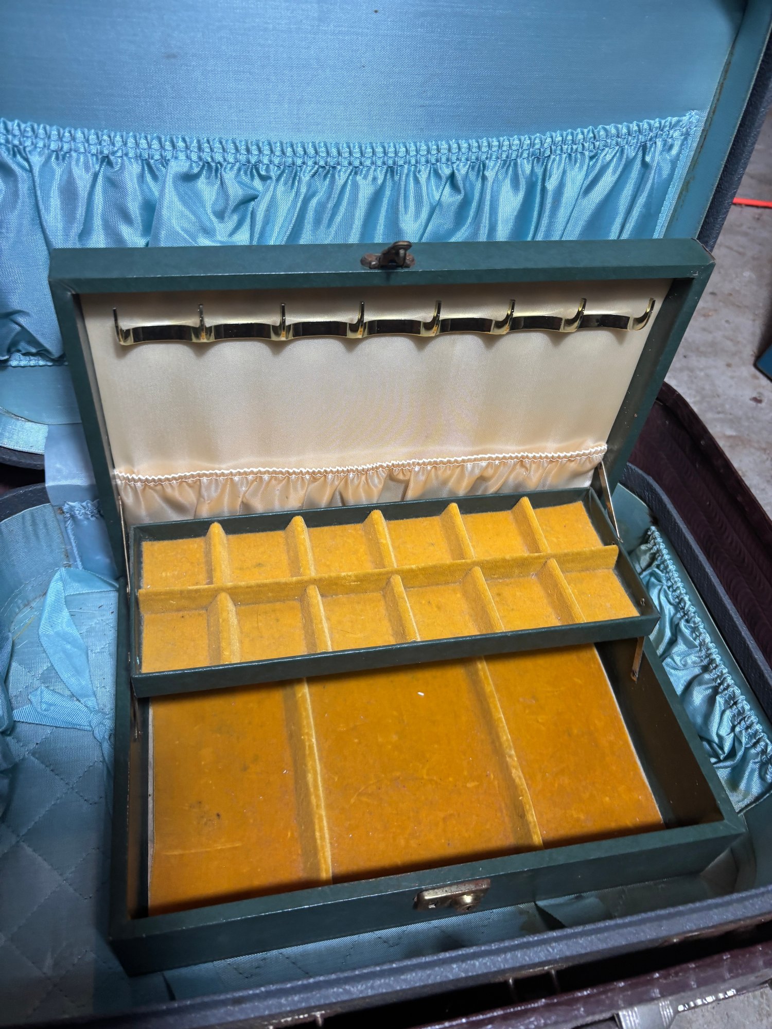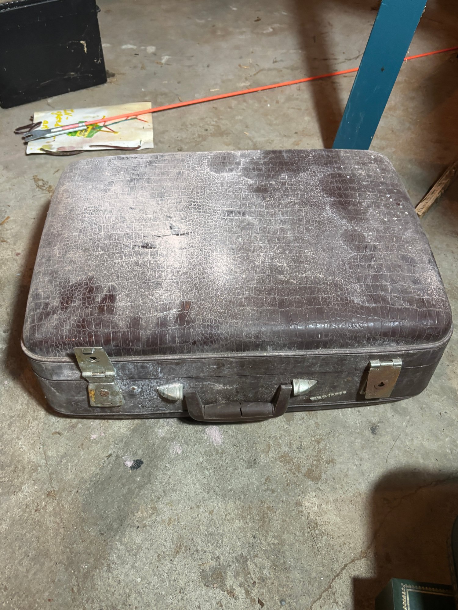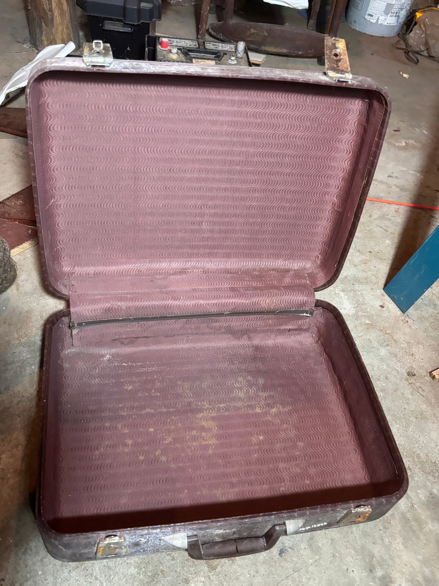 Notes: Brown case doesn’t fully latch, medium sized case latches but has difficulty unlatching and has staining on inside fabric.