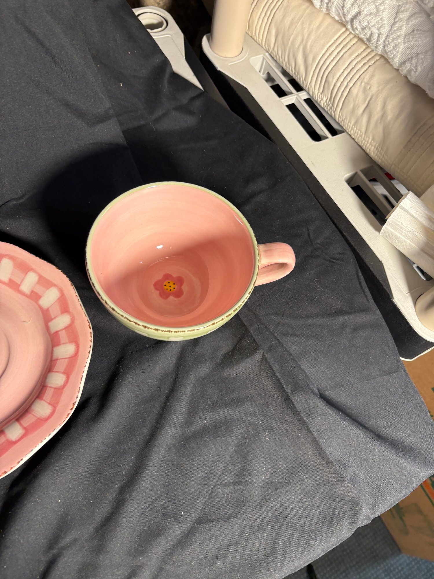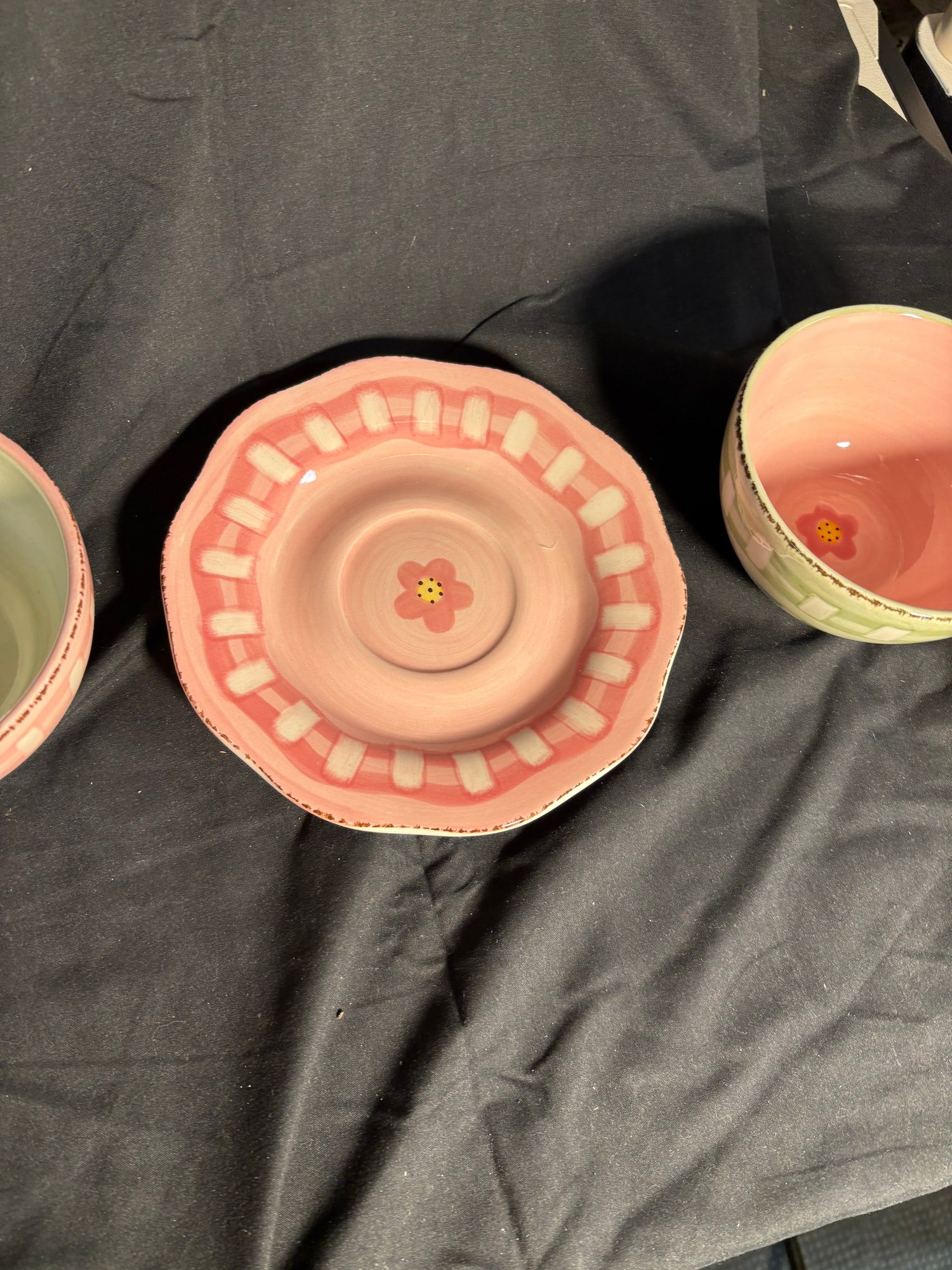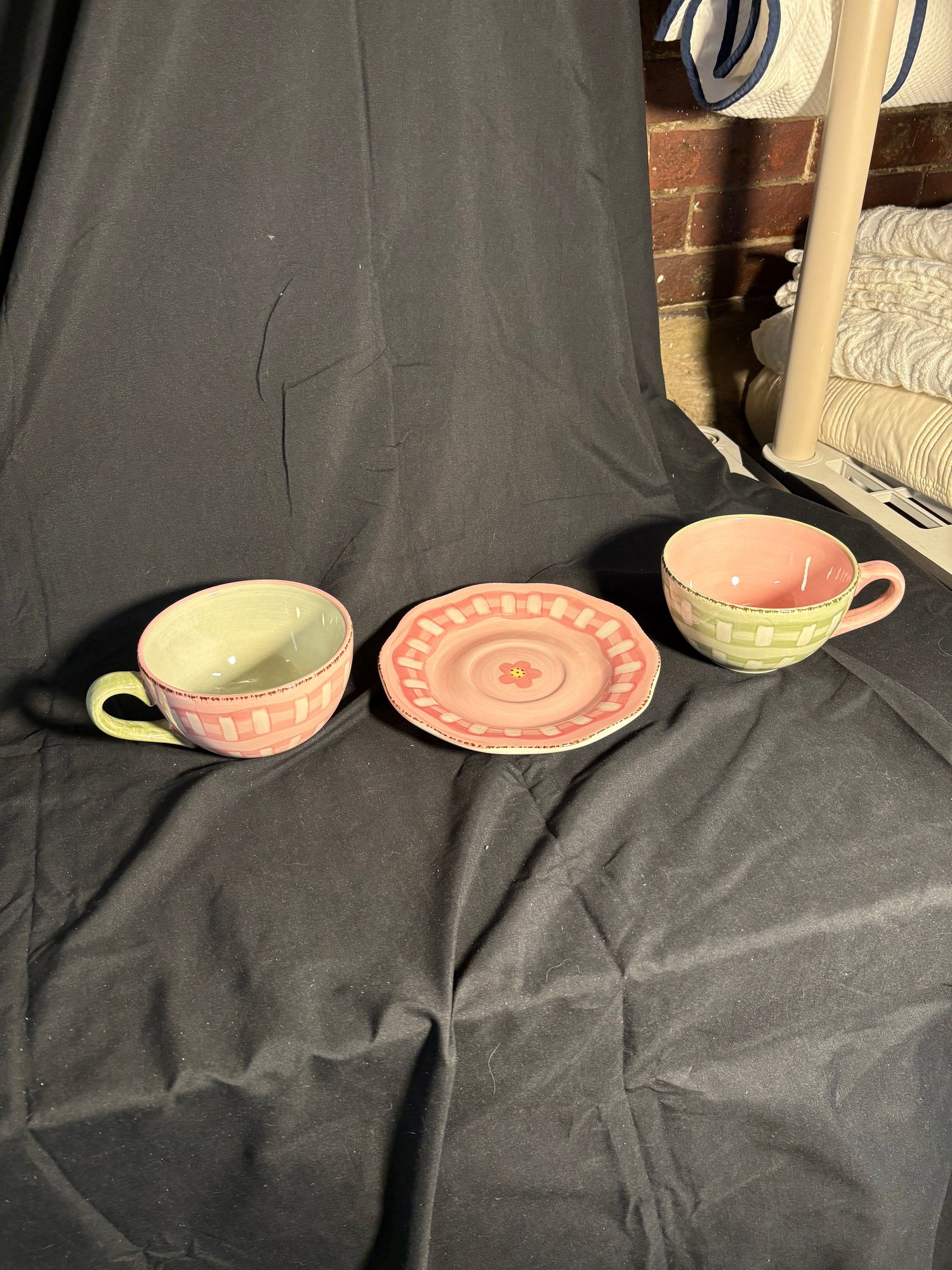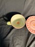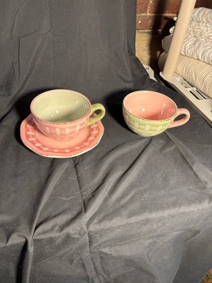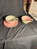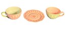 Diameter of plate approximately 8 inches. Tea cups approximately 3 inches tall. Approximately 5 inches in diameter