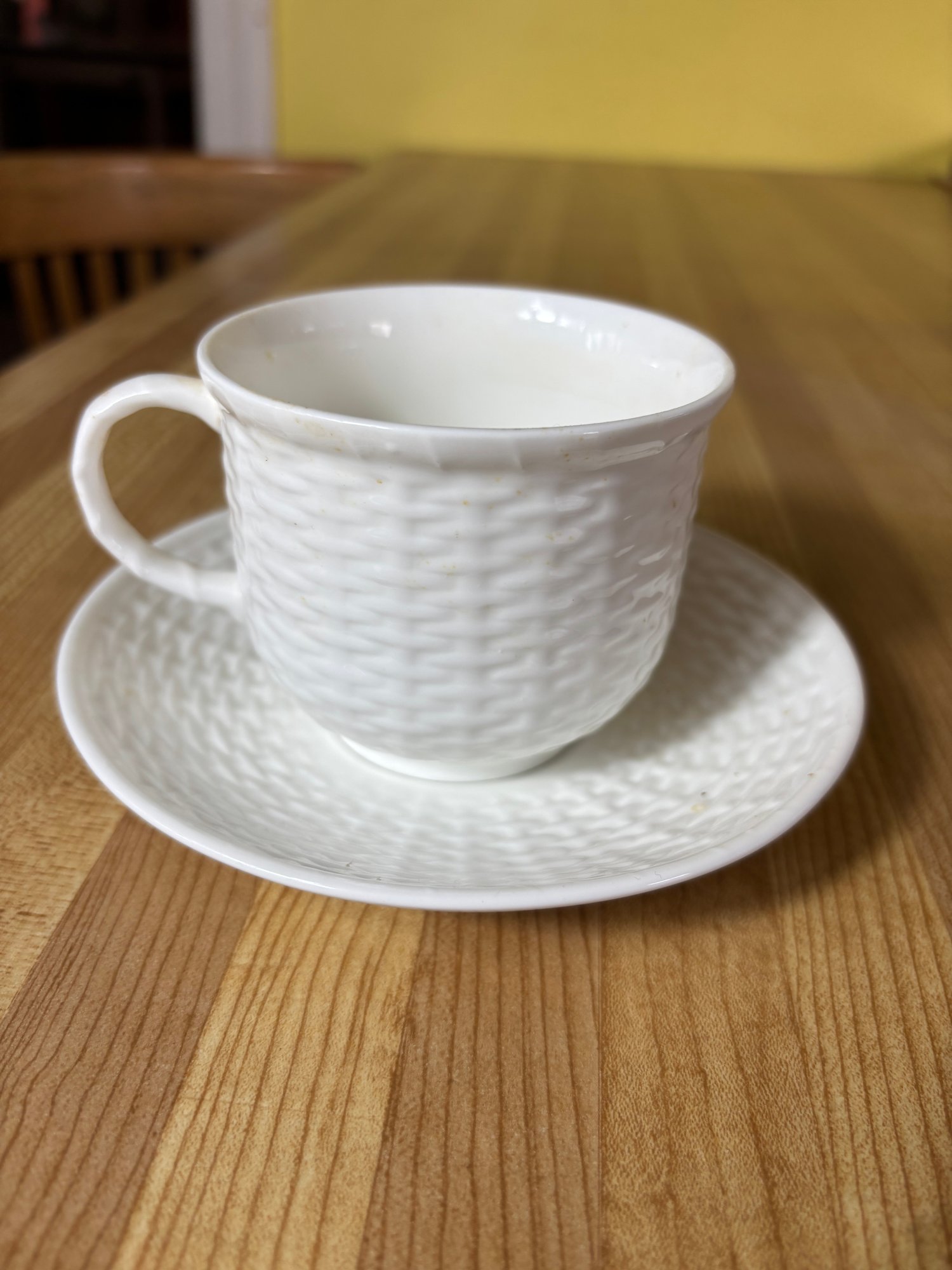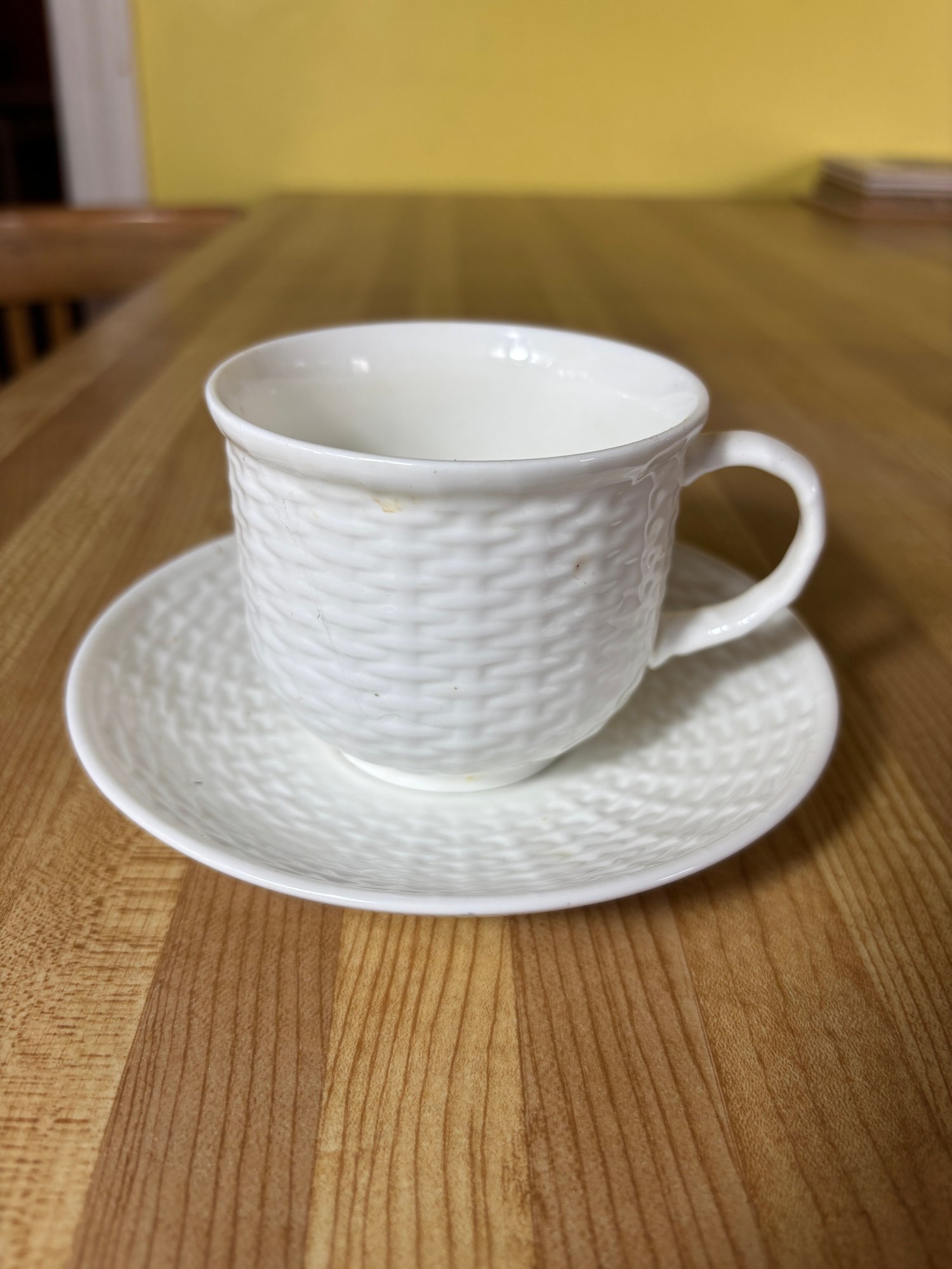 Includes 6 saucers, 2 appetizer plates, 4 short tea cups, and 2 tall teacups