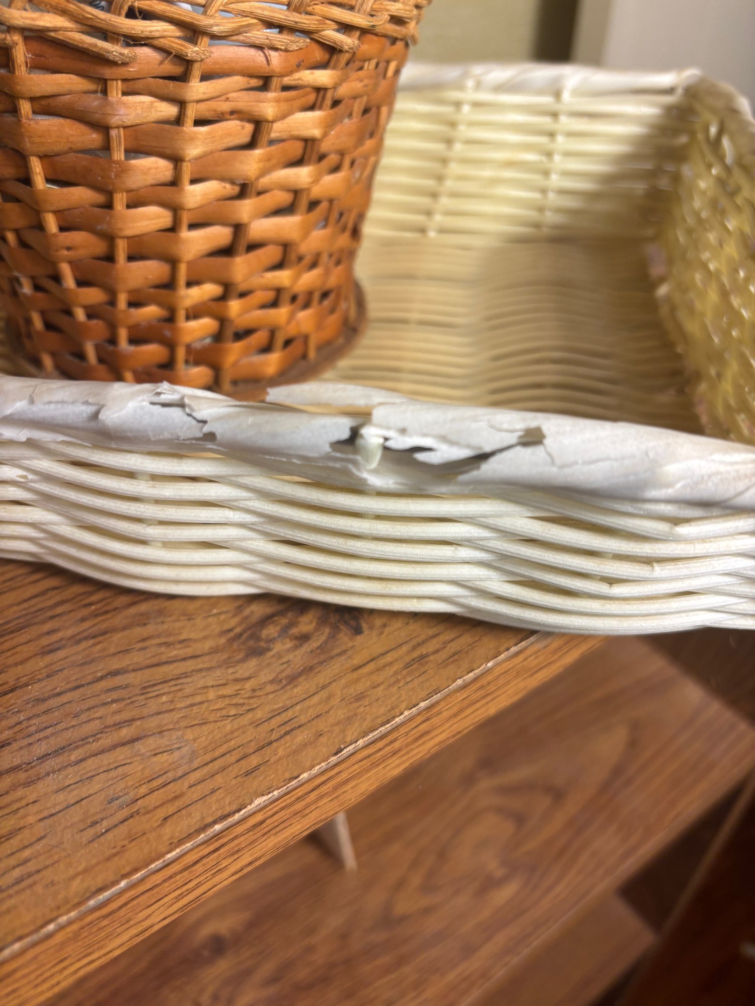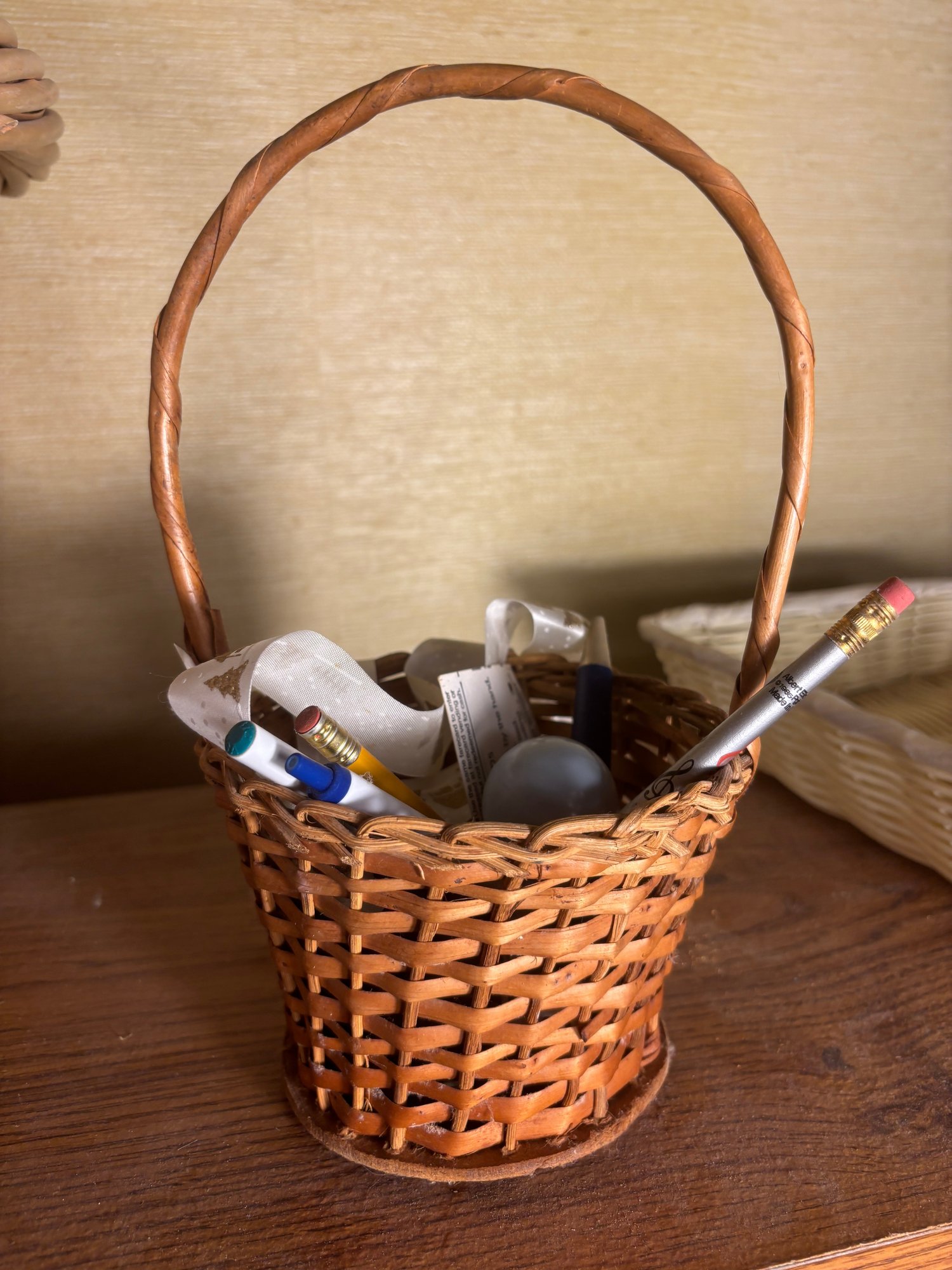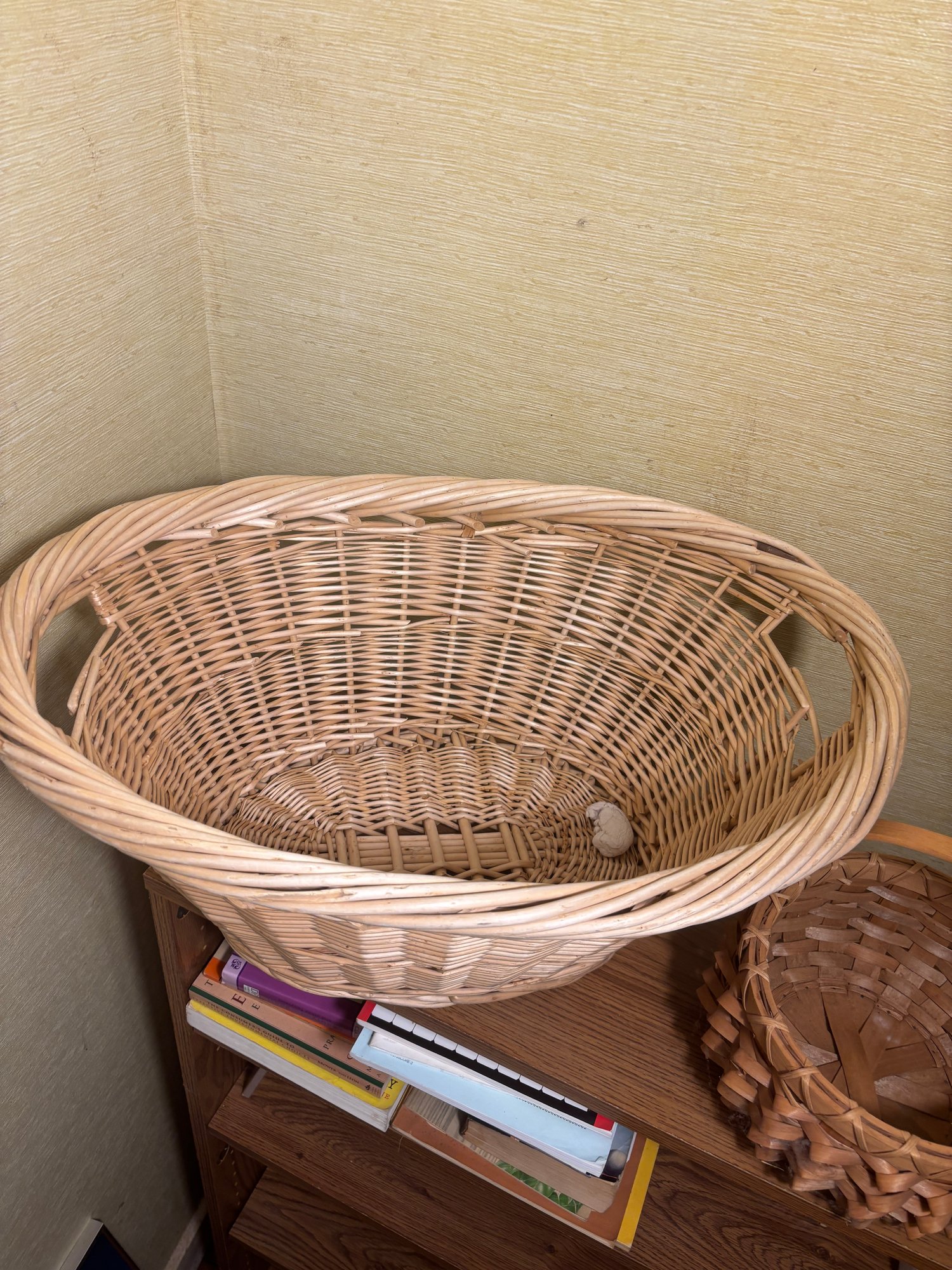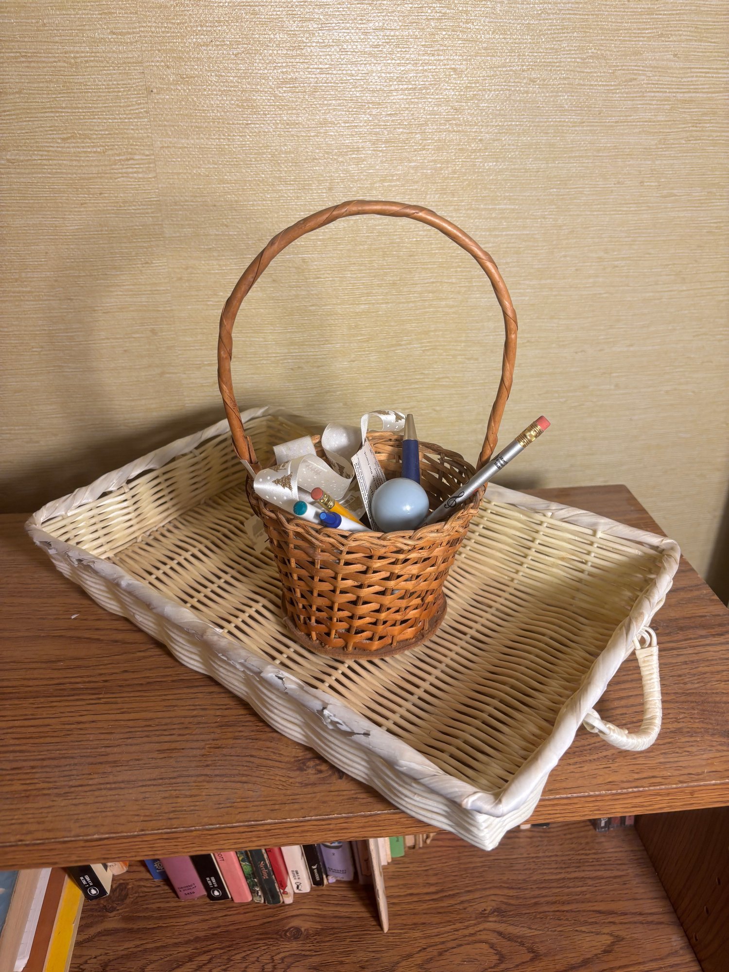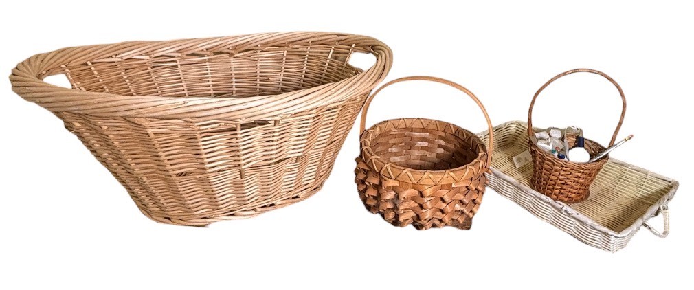 Includes a porcupine curls basket, large laundry basket, a small handle basket, and tray.