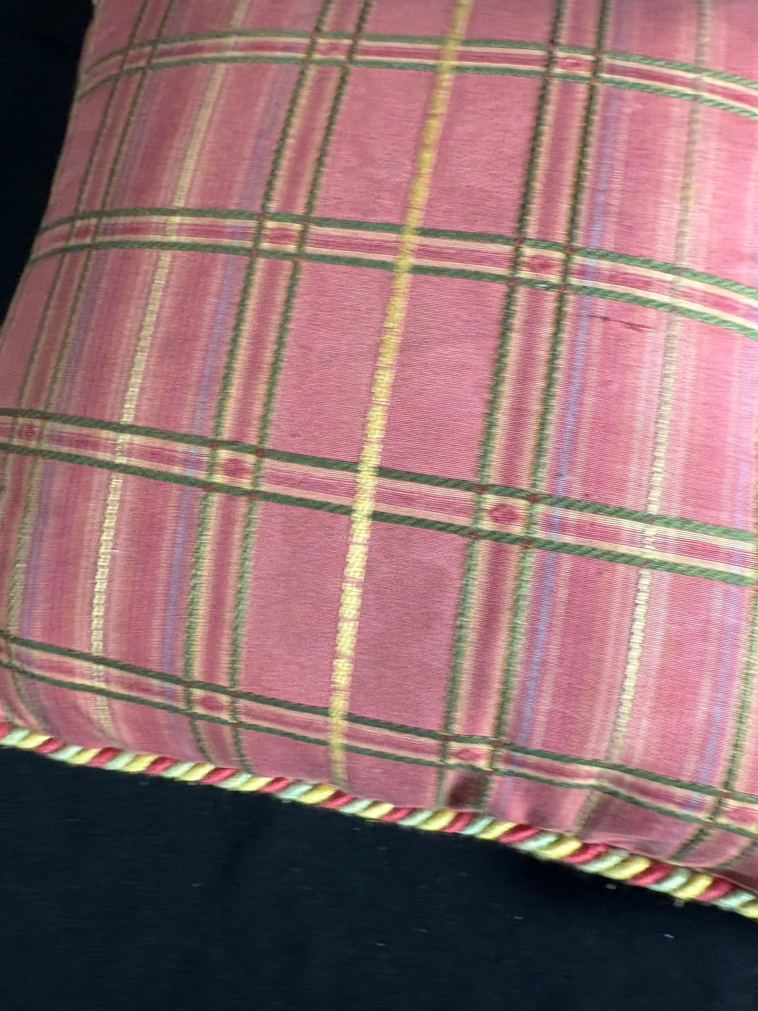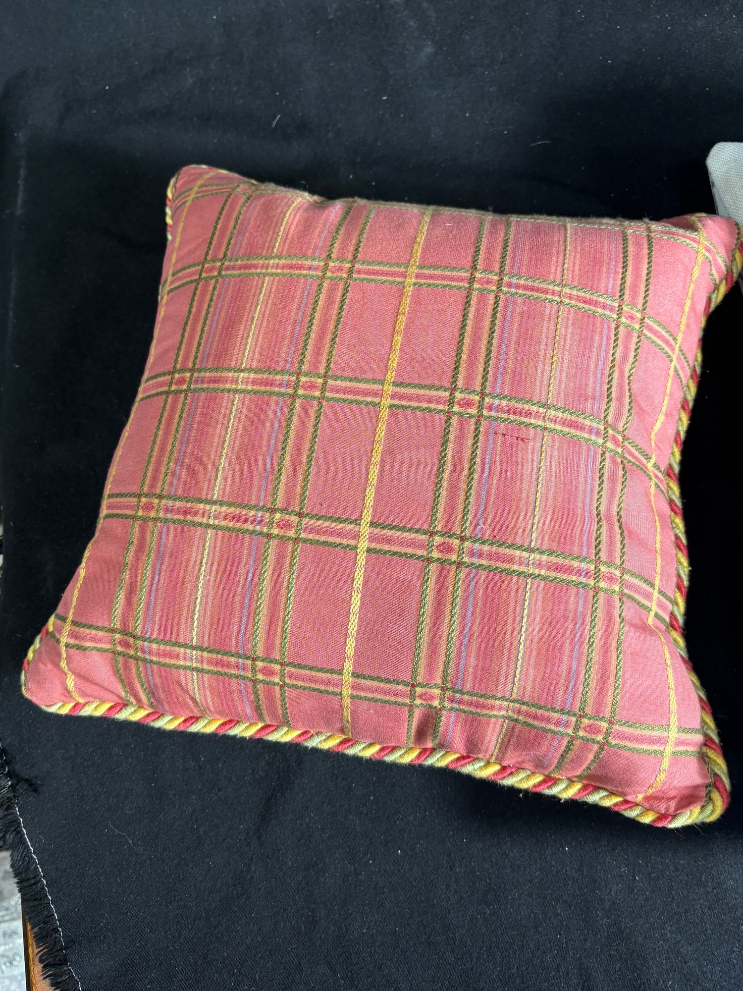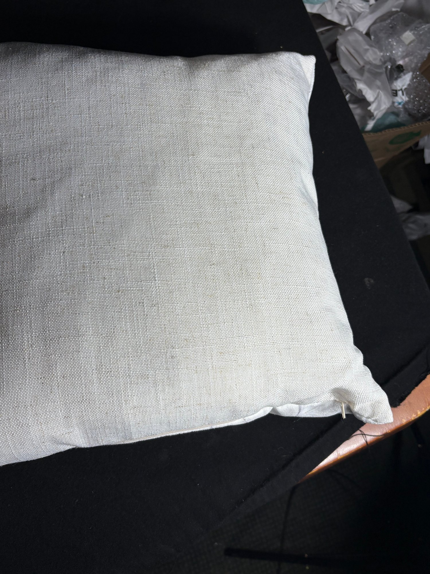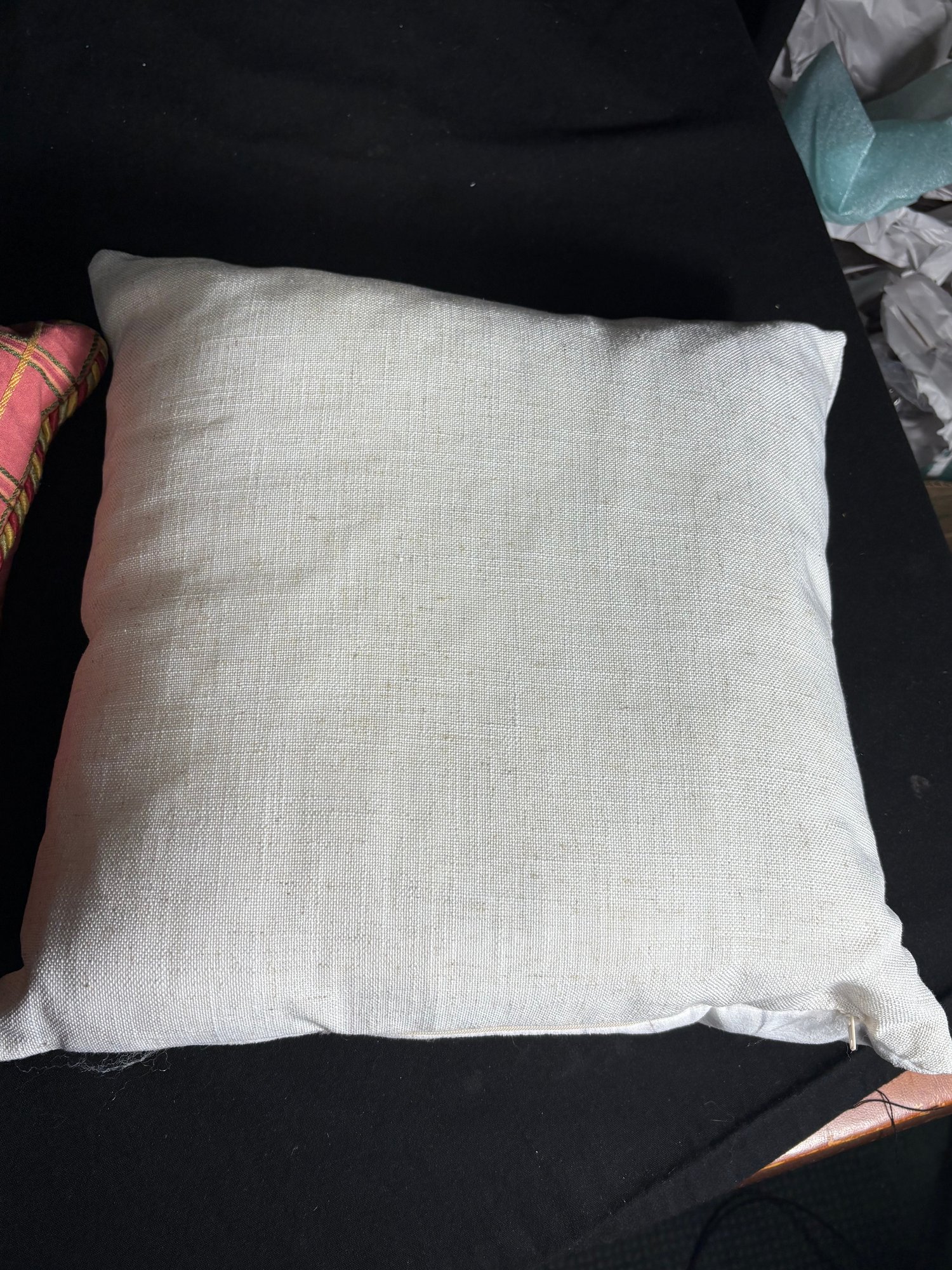 White pillow approximately 16 by 16 inches. Approximately 12 by 15 inches