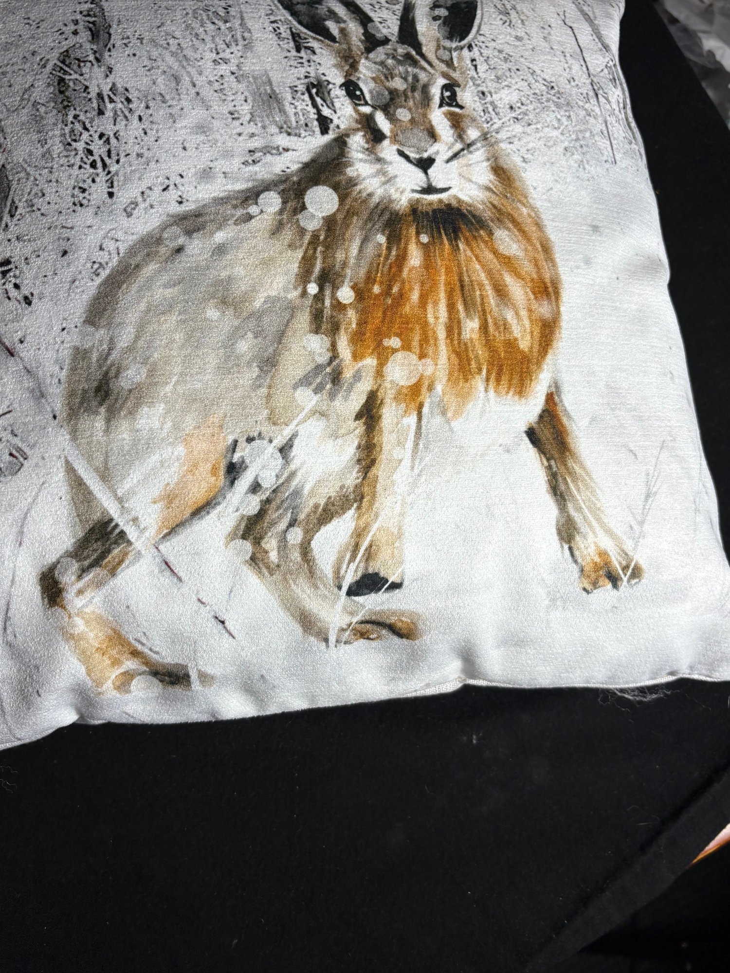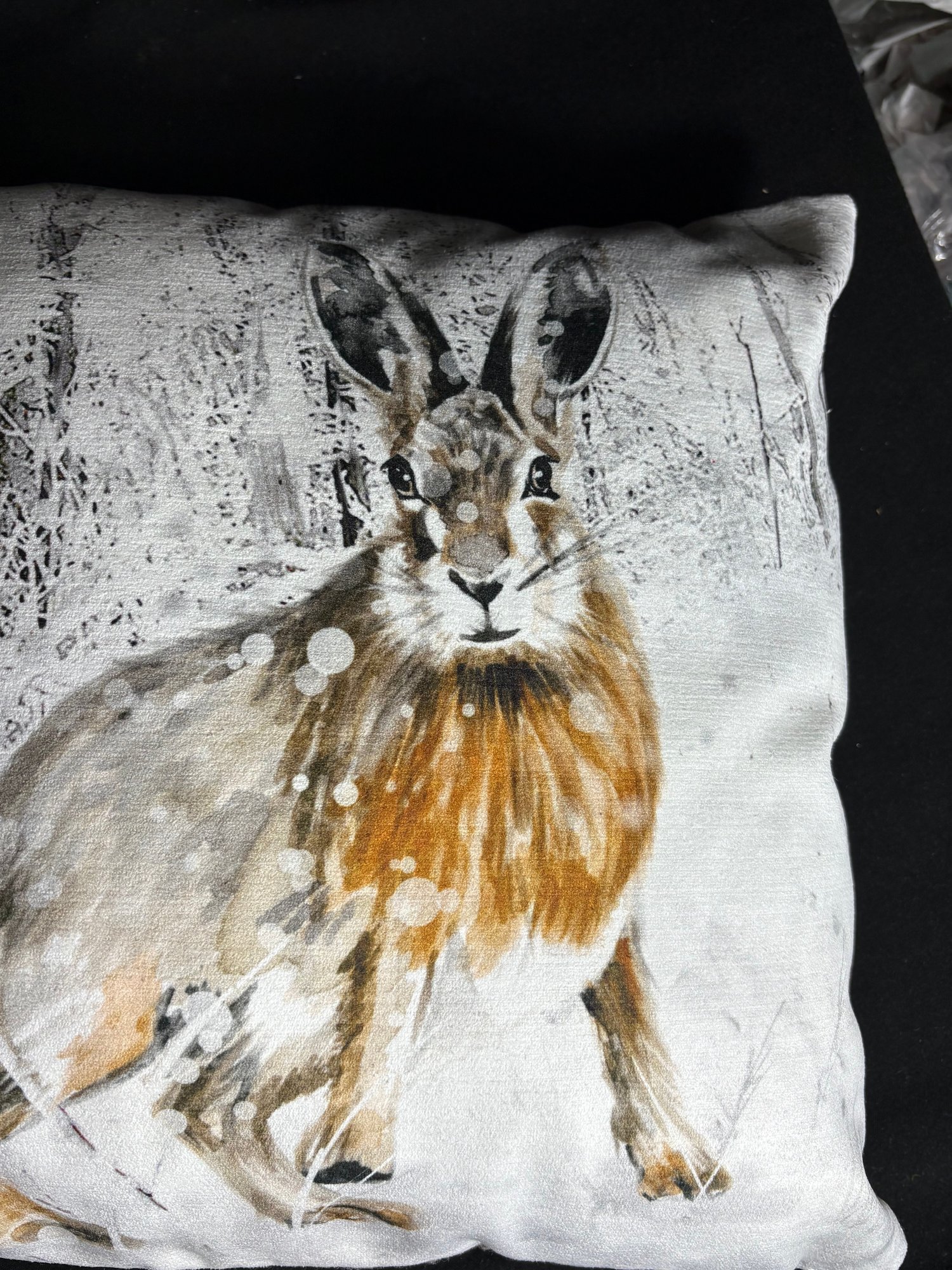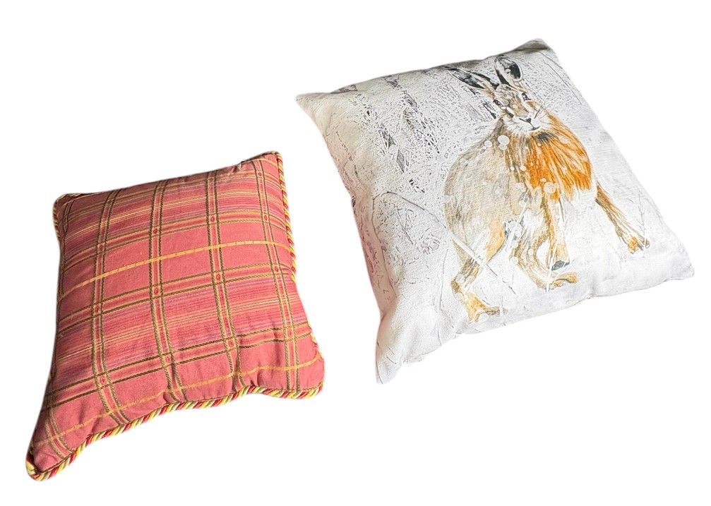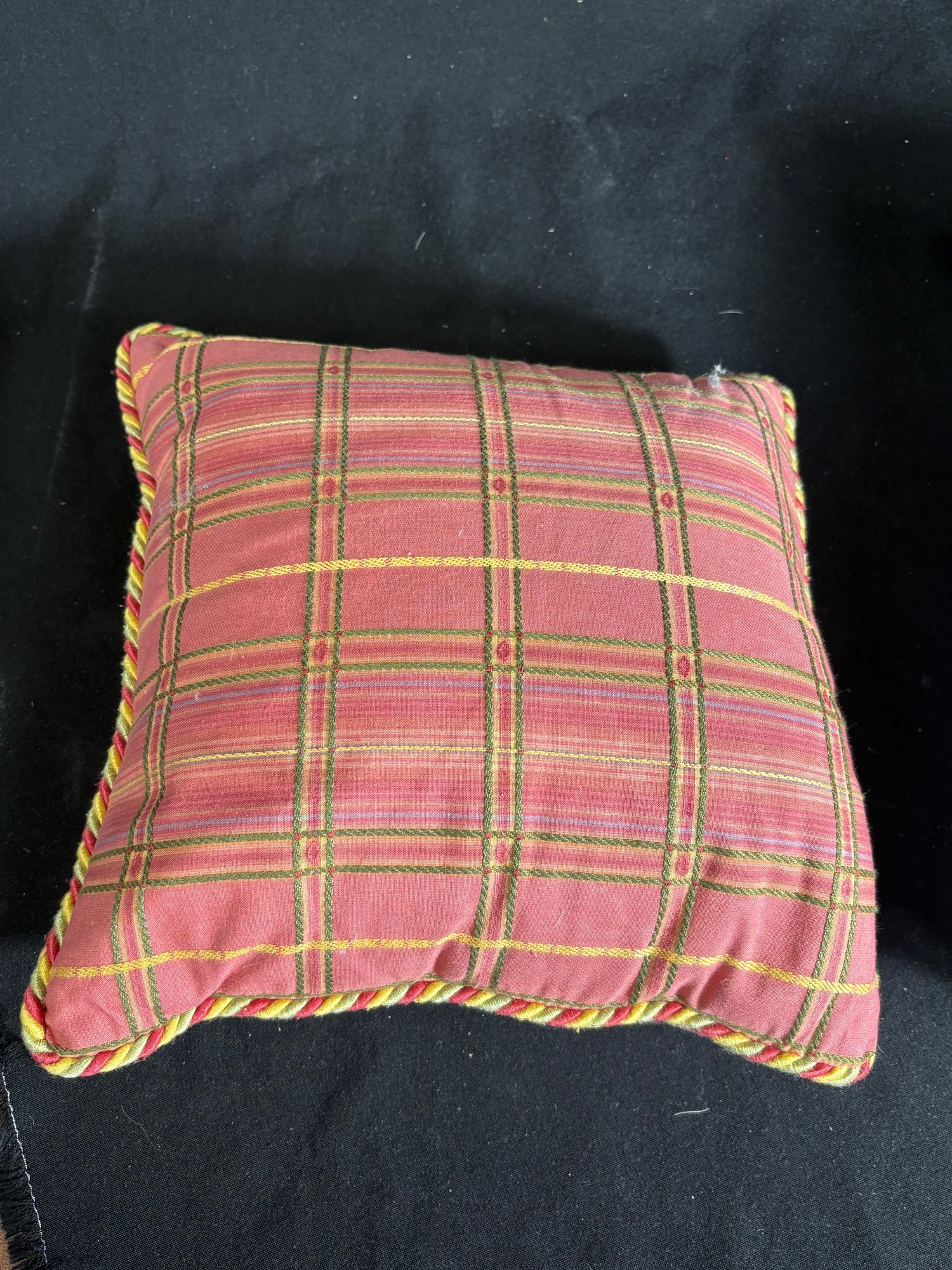 White pillow approximately 16 by 16 inches. Approximately 12 by 15 inches