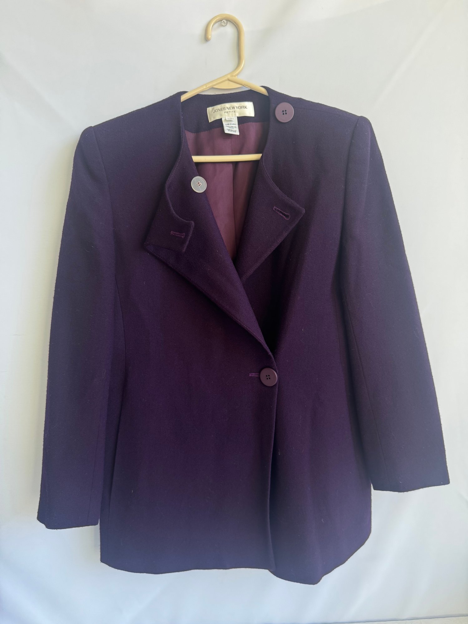 Style: Dark Gray/Purple Blazer with padded shoulders