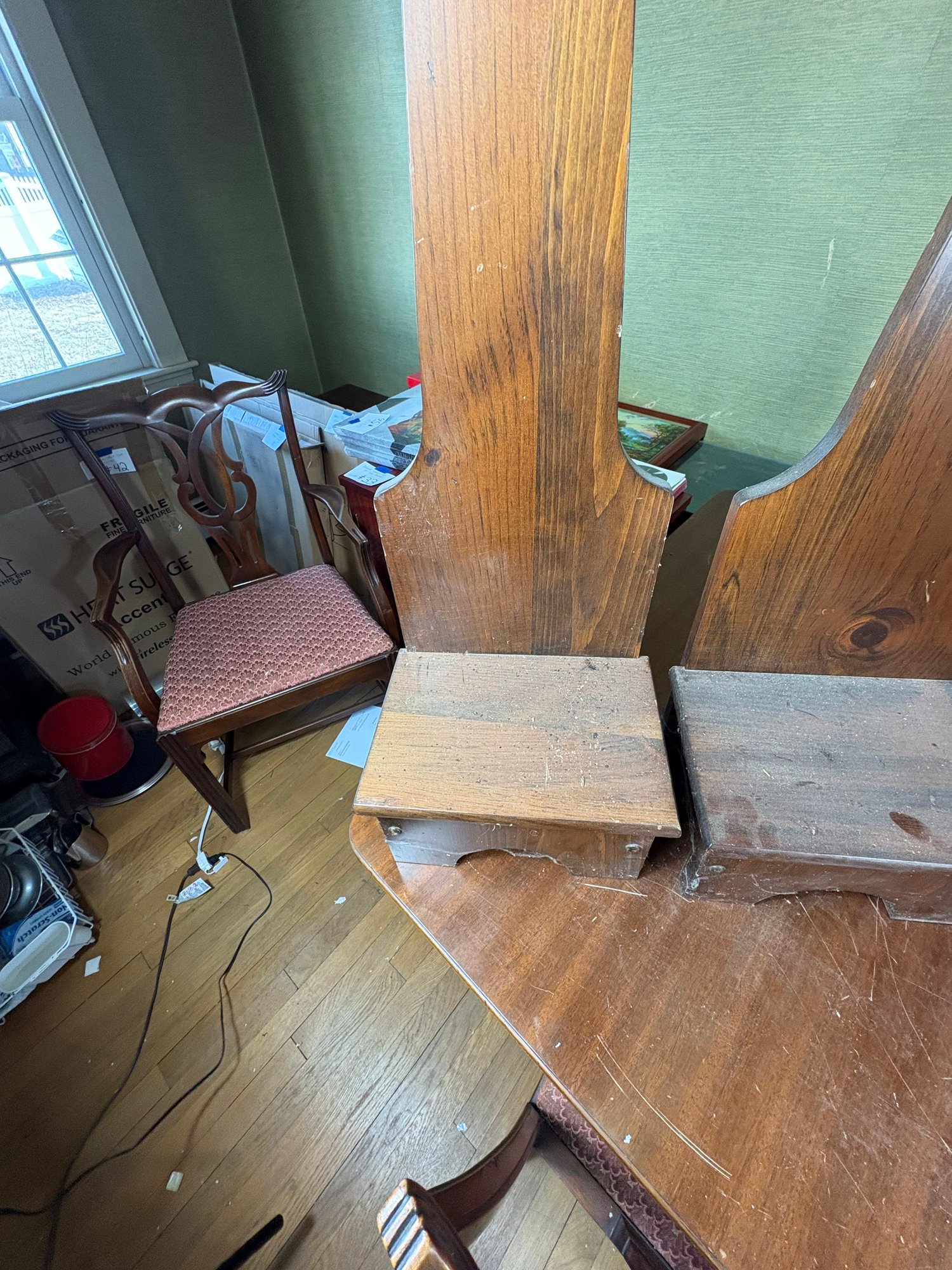 Notes: Dirty needs to be cleaned, one of the step stools is missing tile
