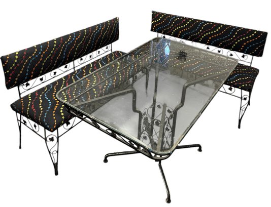 glass top wrought iron table is approximately 29.5 tall, 48” in length & 30” in width