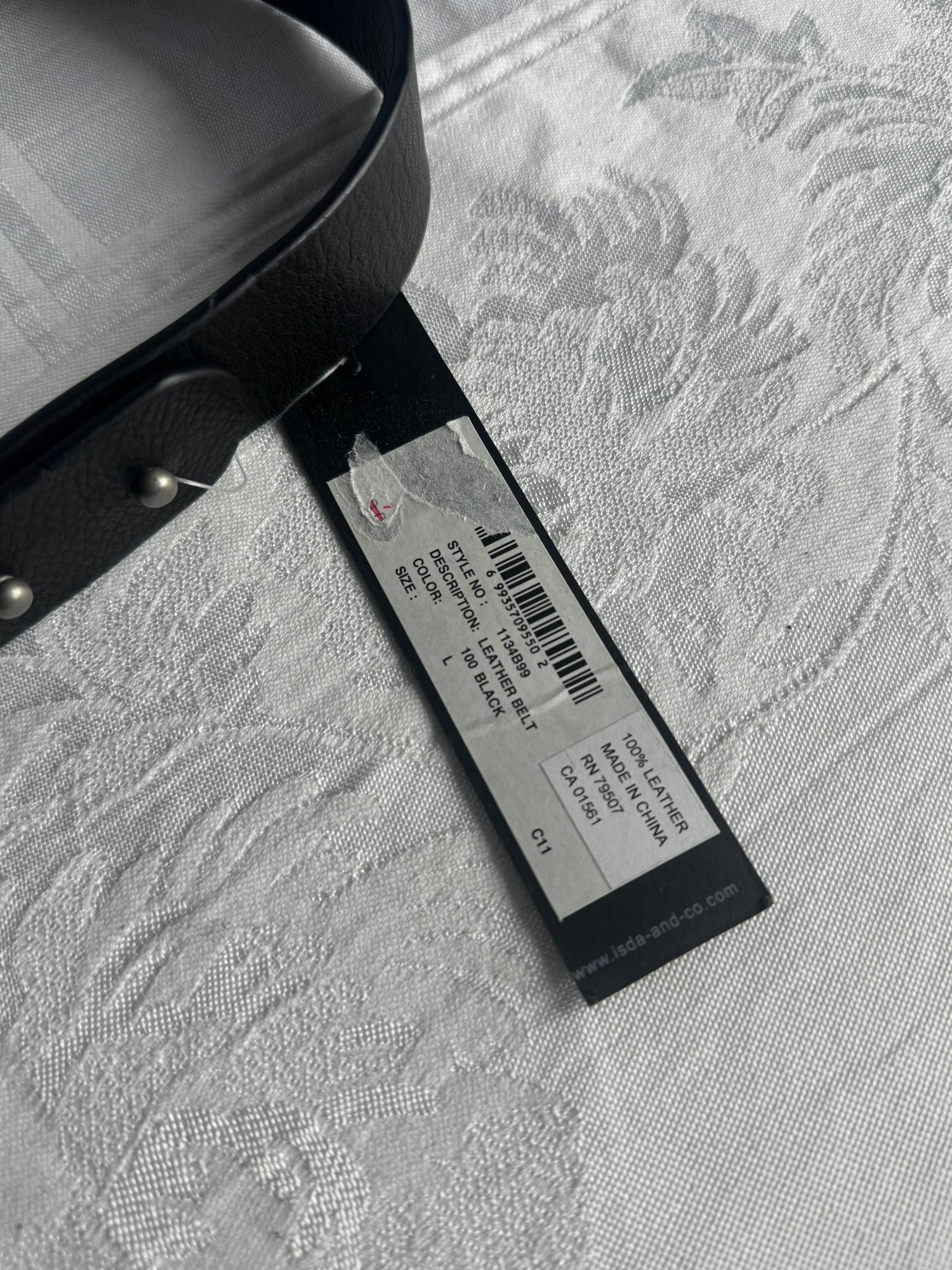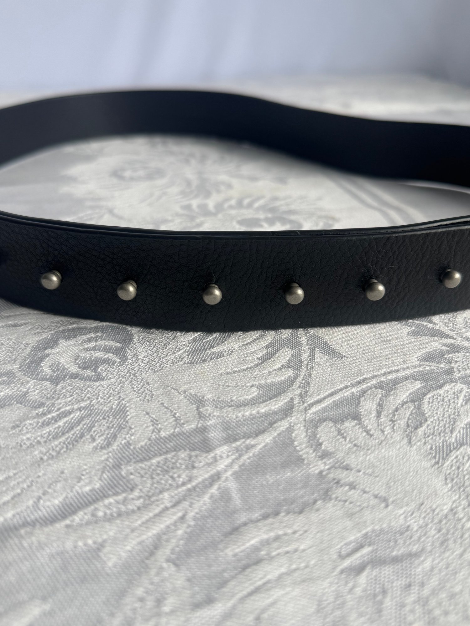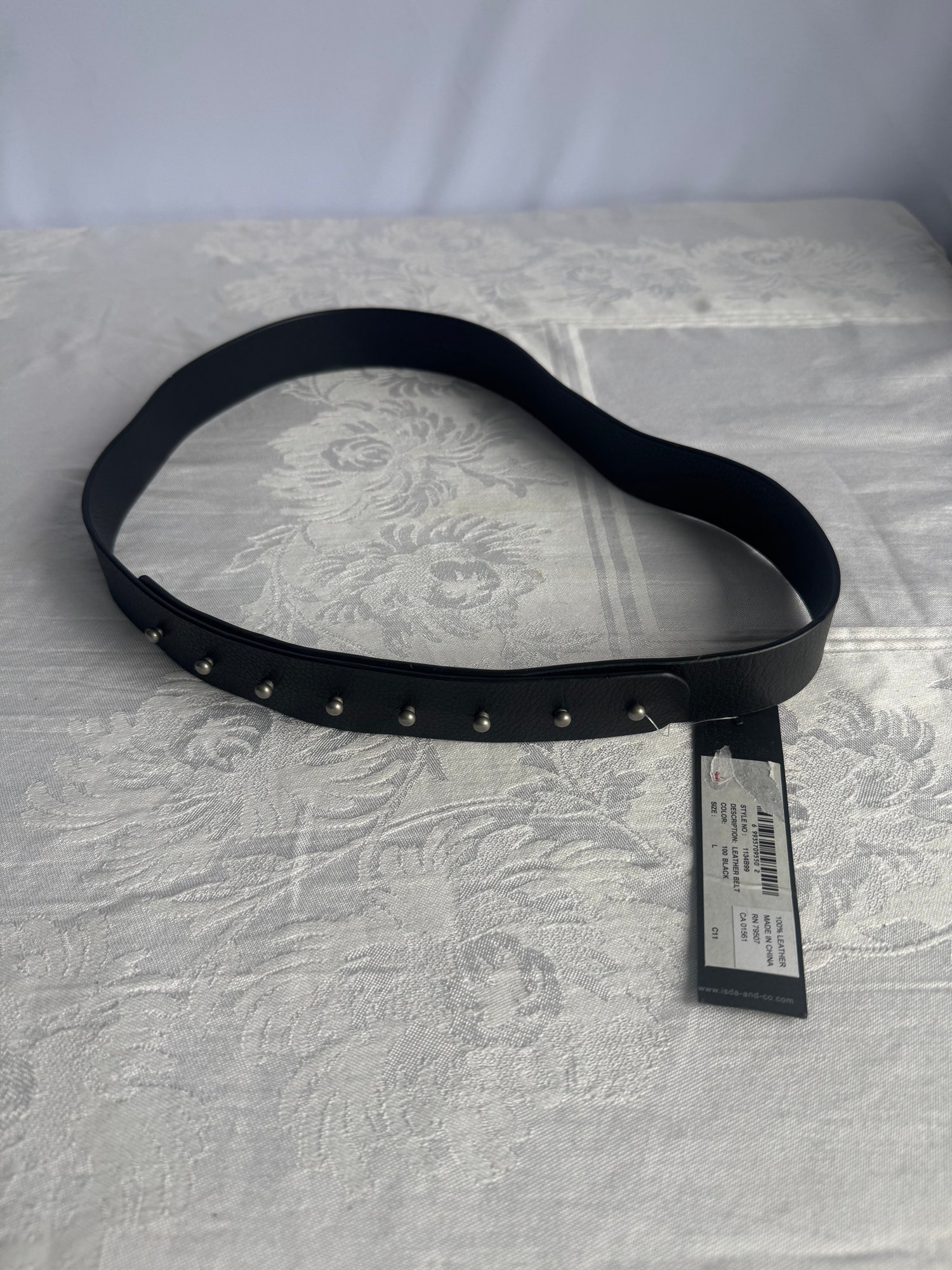 100% leather, black adjustable notched belt