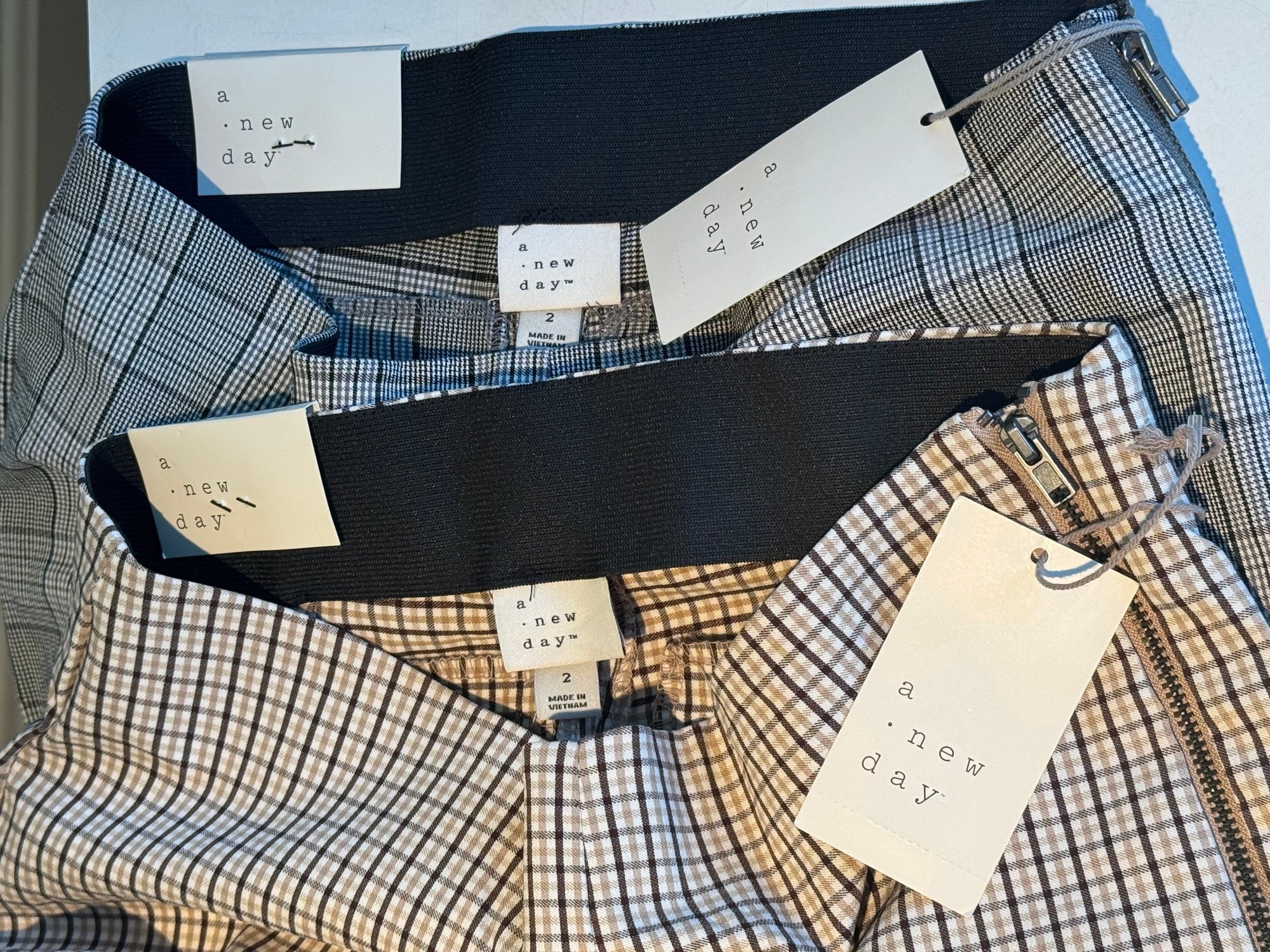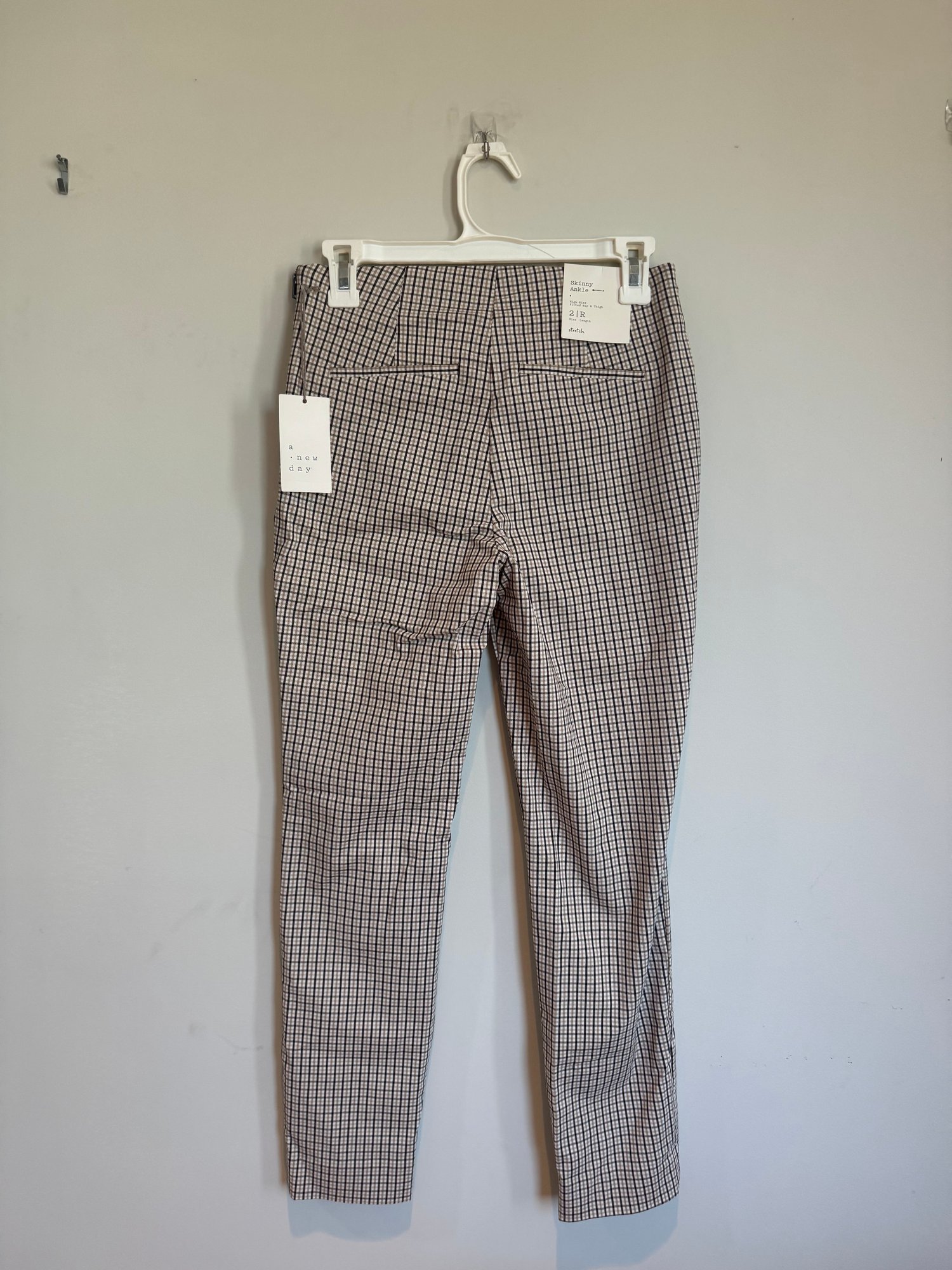 Set of 2 stretchy, plaid, ankle length pants.
