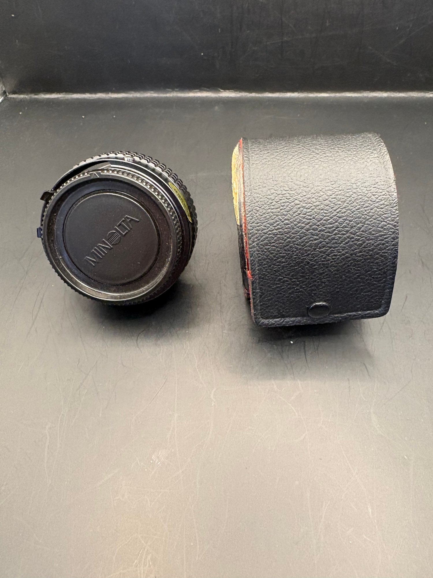 Minolta Teleconverter lens with a case. Made in Japan