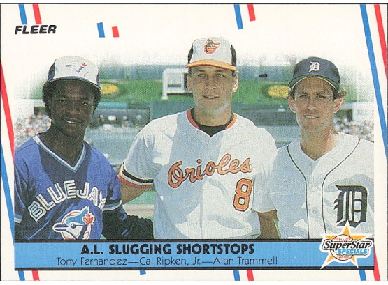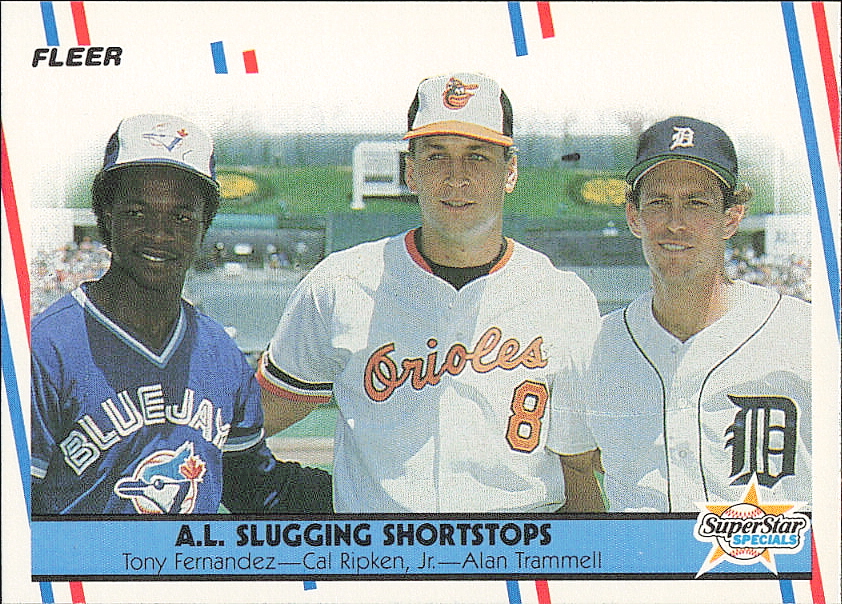 1988 Fleer #635 A.L. Slugging Shortstops (Tony Fernandez / Cal Ripken, Jr. / Alan Trammell) SSS