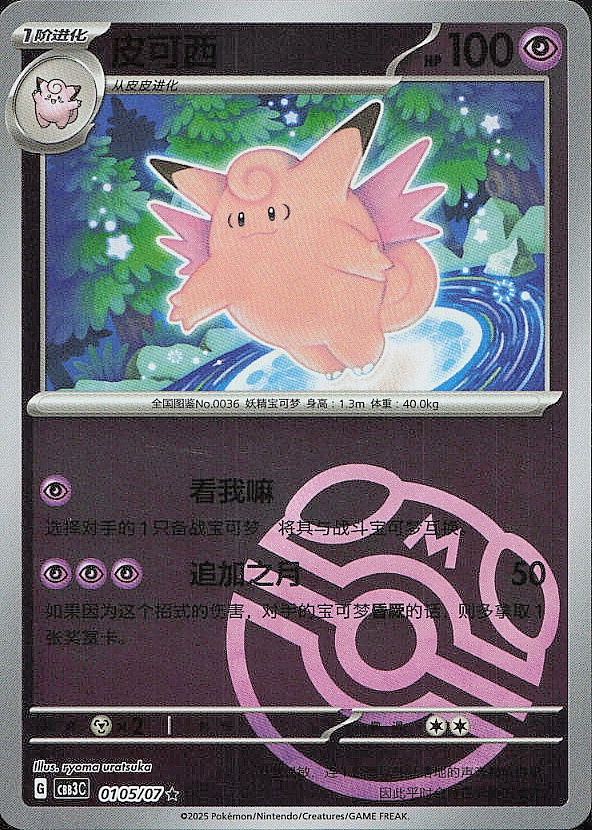 POKEMON Rare Master Ball Holo Chinese Gem Pack Clefable