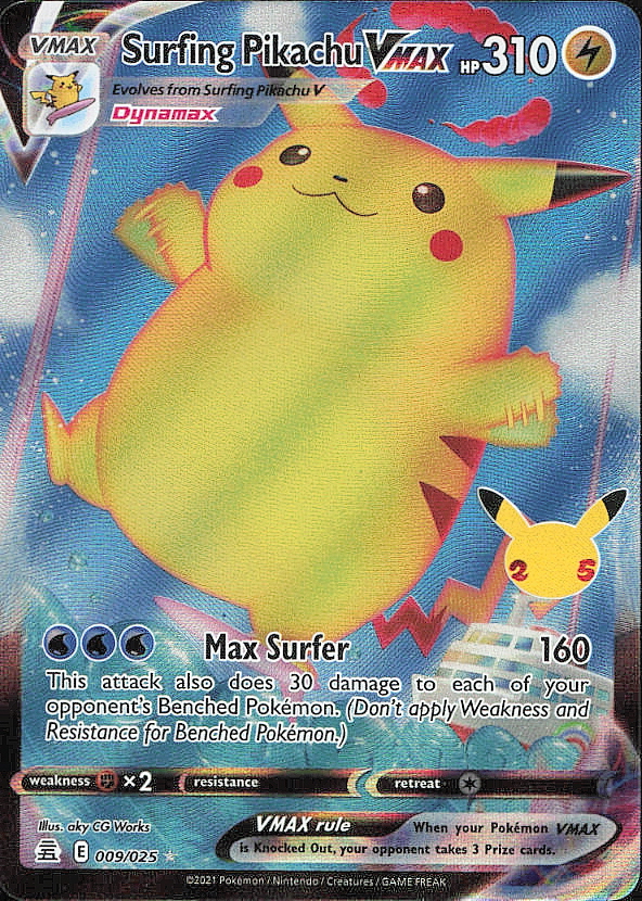 POKEMON Ultra Rare Celebrations Surfing Pikachu VMAX