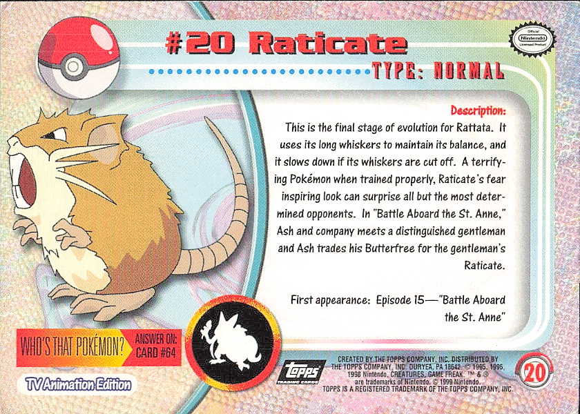 Pokemon Vintage 1999 Topps Raticate