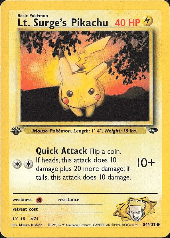 Pokemon Vintage Gym Challenge 1ST EDITION Lt. Surge's Pikachu