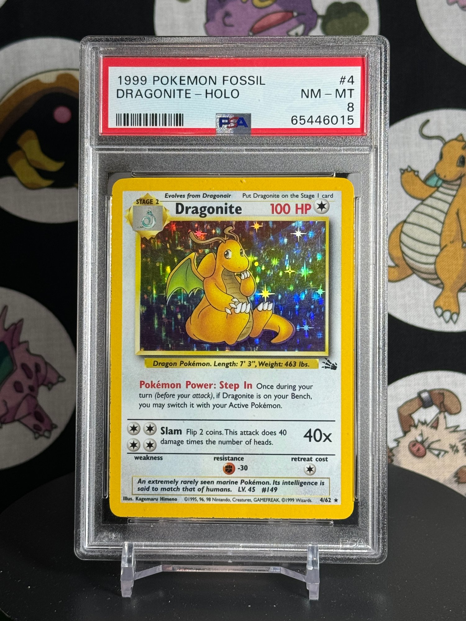 PSA 8 1999 POKEMON FOSSIL DRAGONITE-HOLO