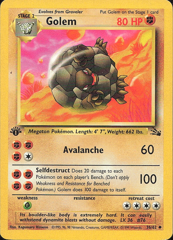 Vintage Pokemon 1999 ,1ST EDITION Fossil Golem